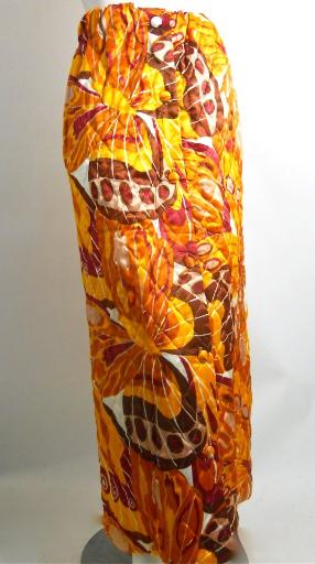 | Quilted satin 70s maxi skirt with oversize butterfly design. Buttons down front, no flaws. 30" waist max, 40" hips $65 |