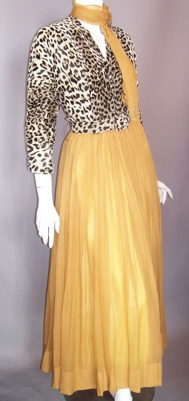 Dorothea's Closet Vintage Dress 40s Gown LEOPARD PRINT Velvet SILK Chiffon DORIAN Dressing Gown