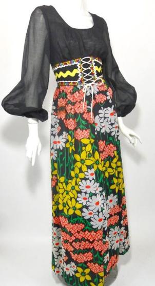 | COMING SOON.... 70s maxi dress with corset lace up waist, wide ric rac, floral print skirt and peasant inspired bodice. More details to come $165 |