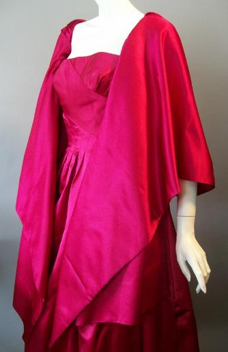 | Raspberry silk 1950s Hattie Carnegie gown with wrap |