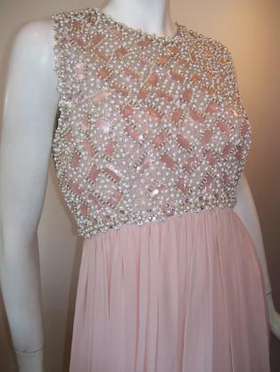 | 1960s pink beaded chiffon Malcolm Starr gown |