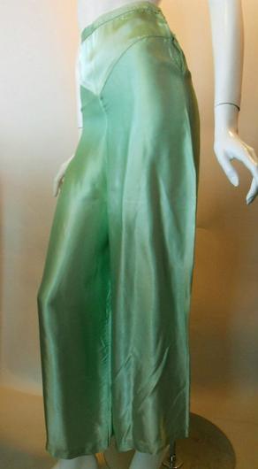 | COMING SOON..... Sultry seafoam green satin 30s pajama pants. Palazzo cuffs, high waist, side buttons. Watch for details. |