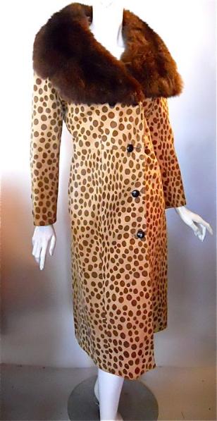 | Leopard print suede 70s trench coat with huge fur collar. Watch for more images. 40" bust, 34" waist, 44" hips, 23" sleeves, 47" long $265 |