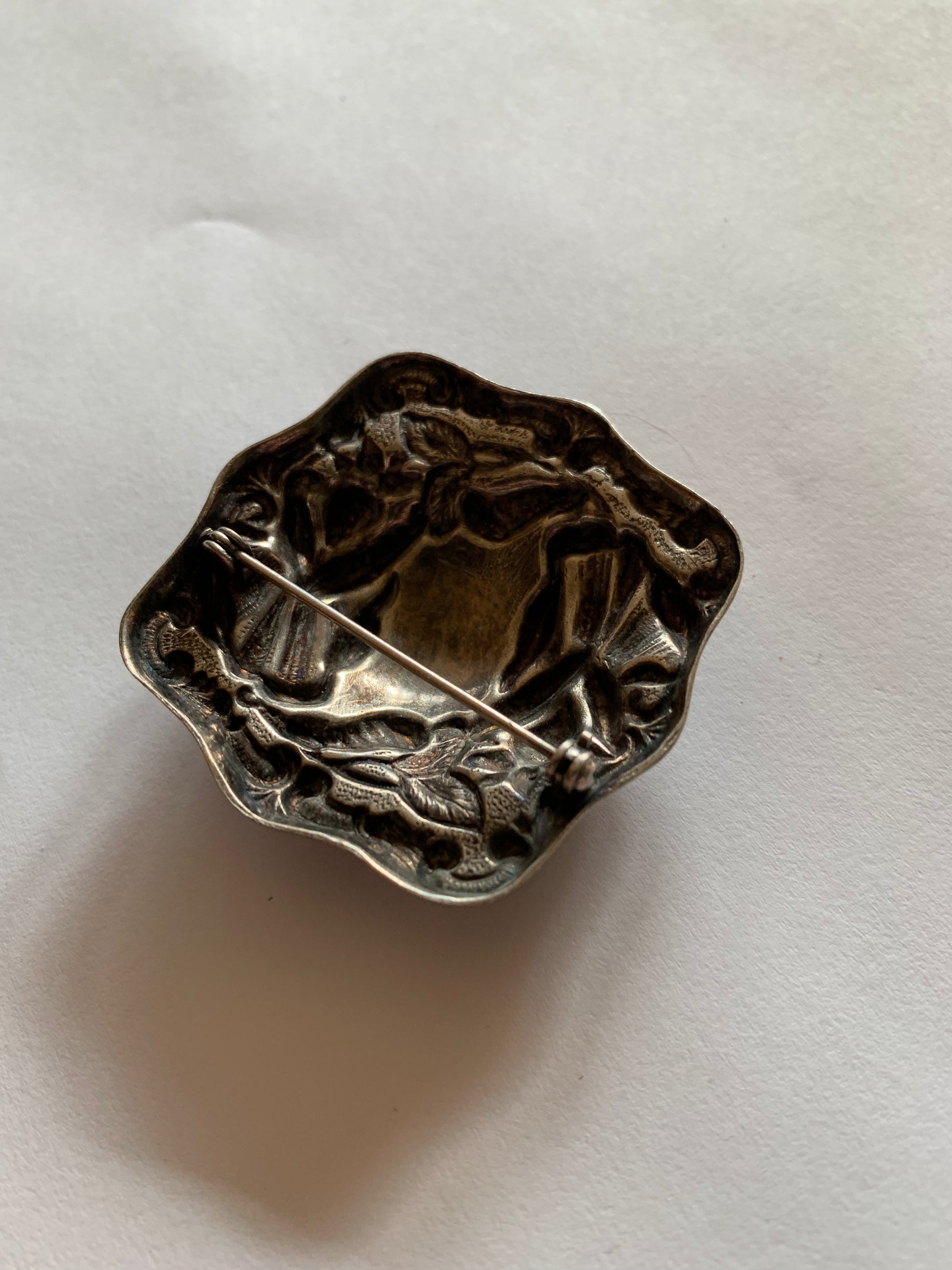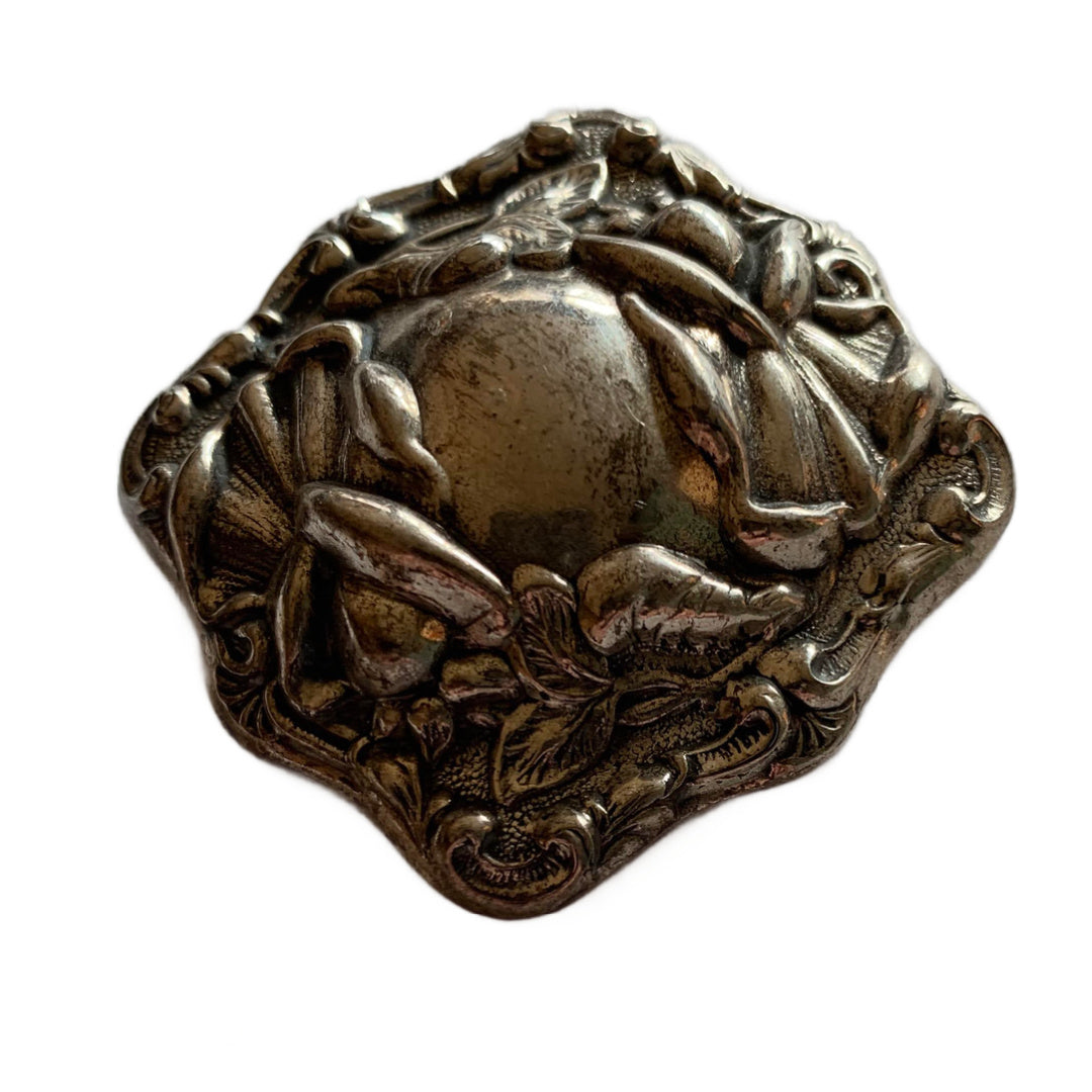 Art Nouveau Repoussé Silver Floral Brooch circa 1980s