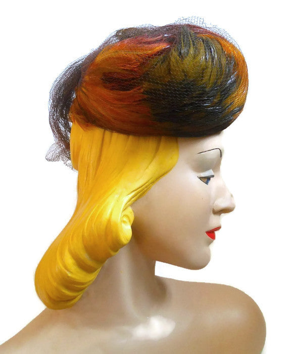 Autum Hues Feather High Crown Tilt Hat circa 1940s