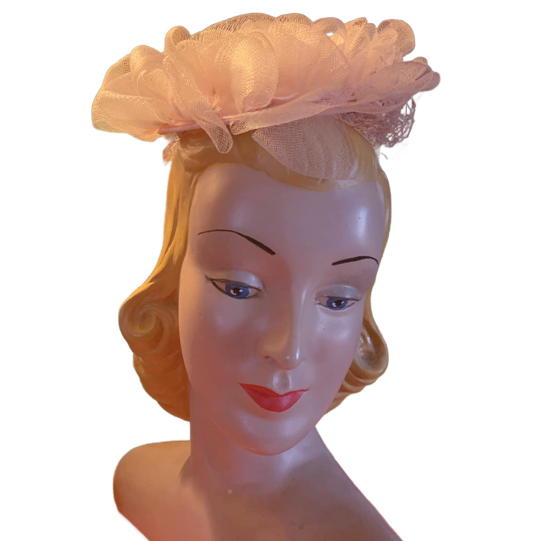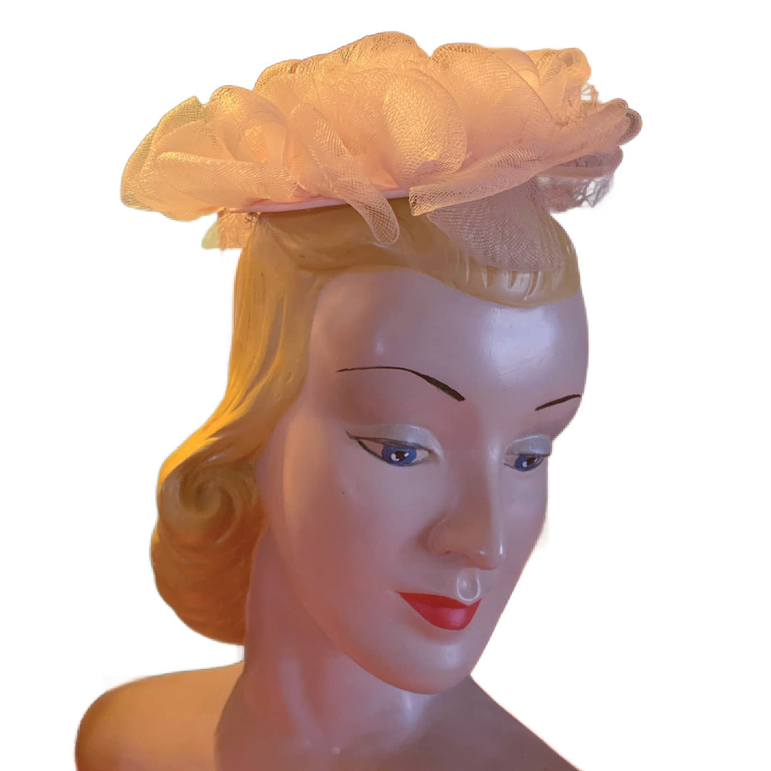 Baby Pink Sisal Bows and Ribbon Hat circa 1960s