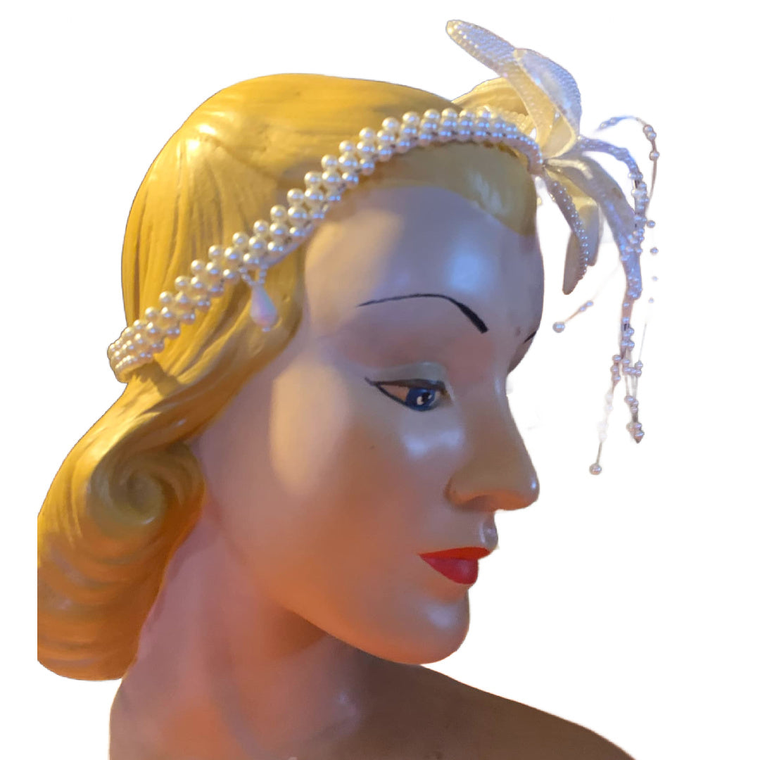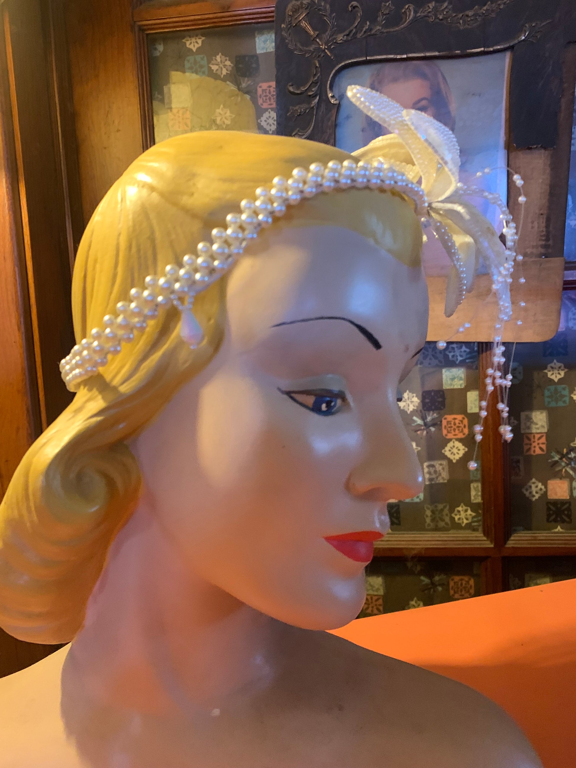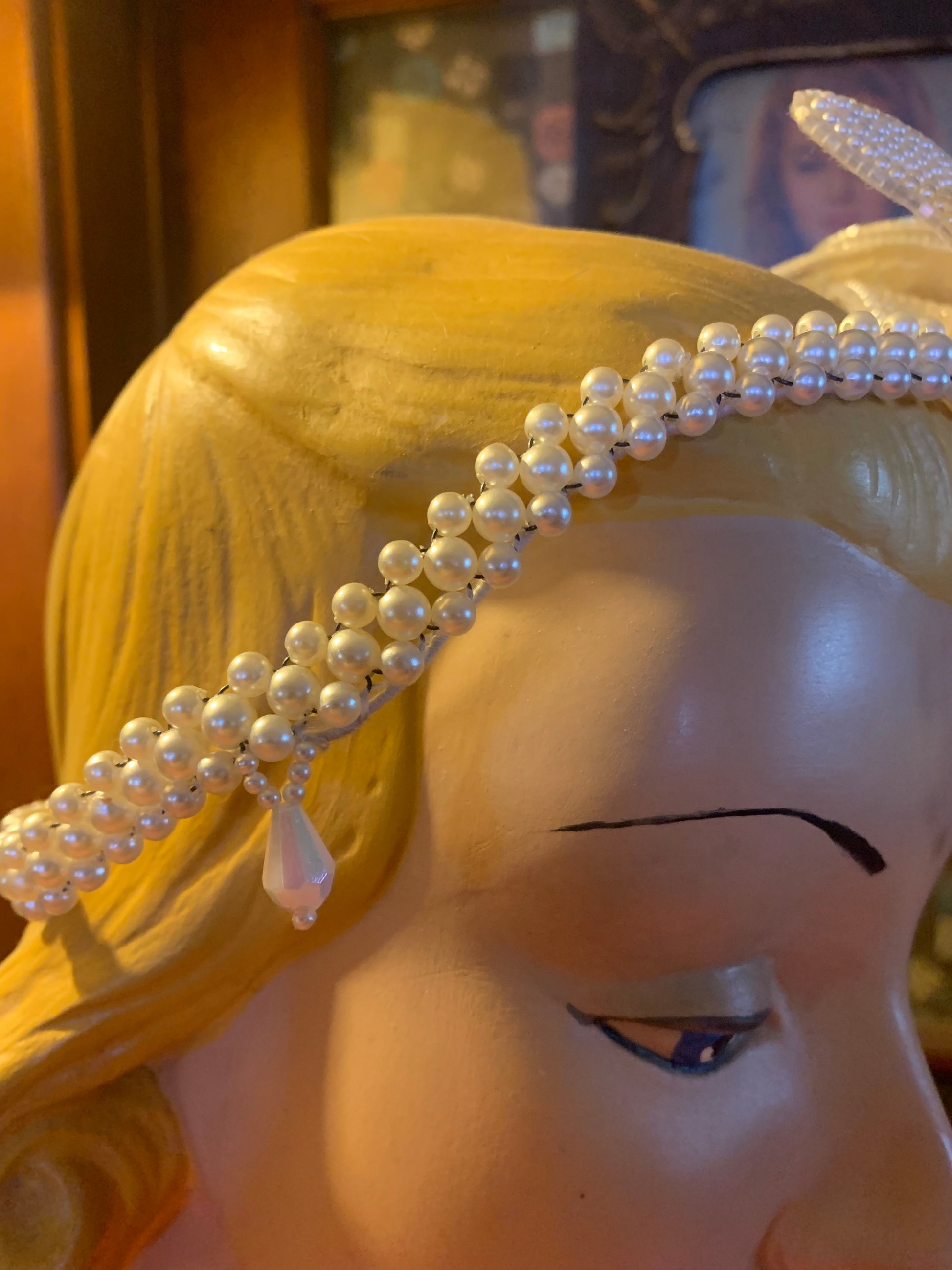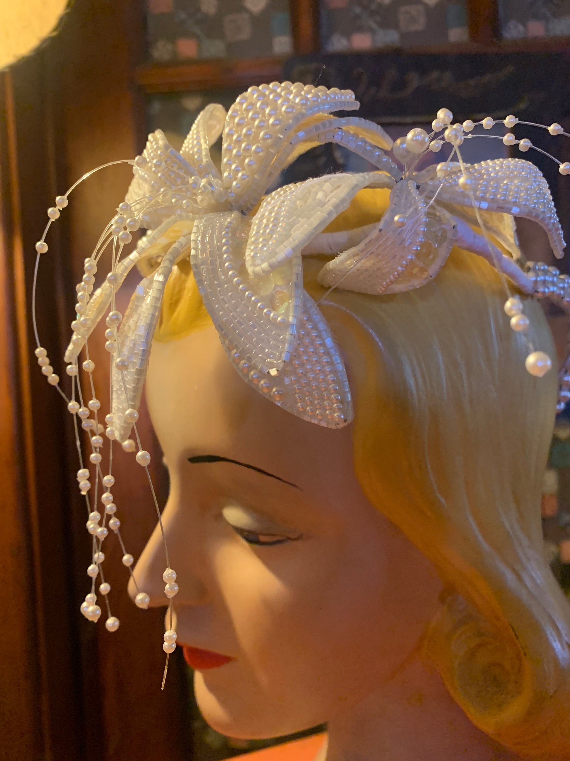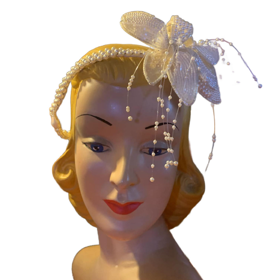 Beaded Lily Faux Pearl Bridal Headpiece circa 1980s