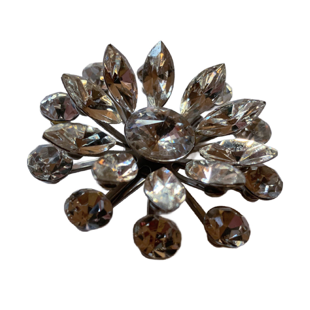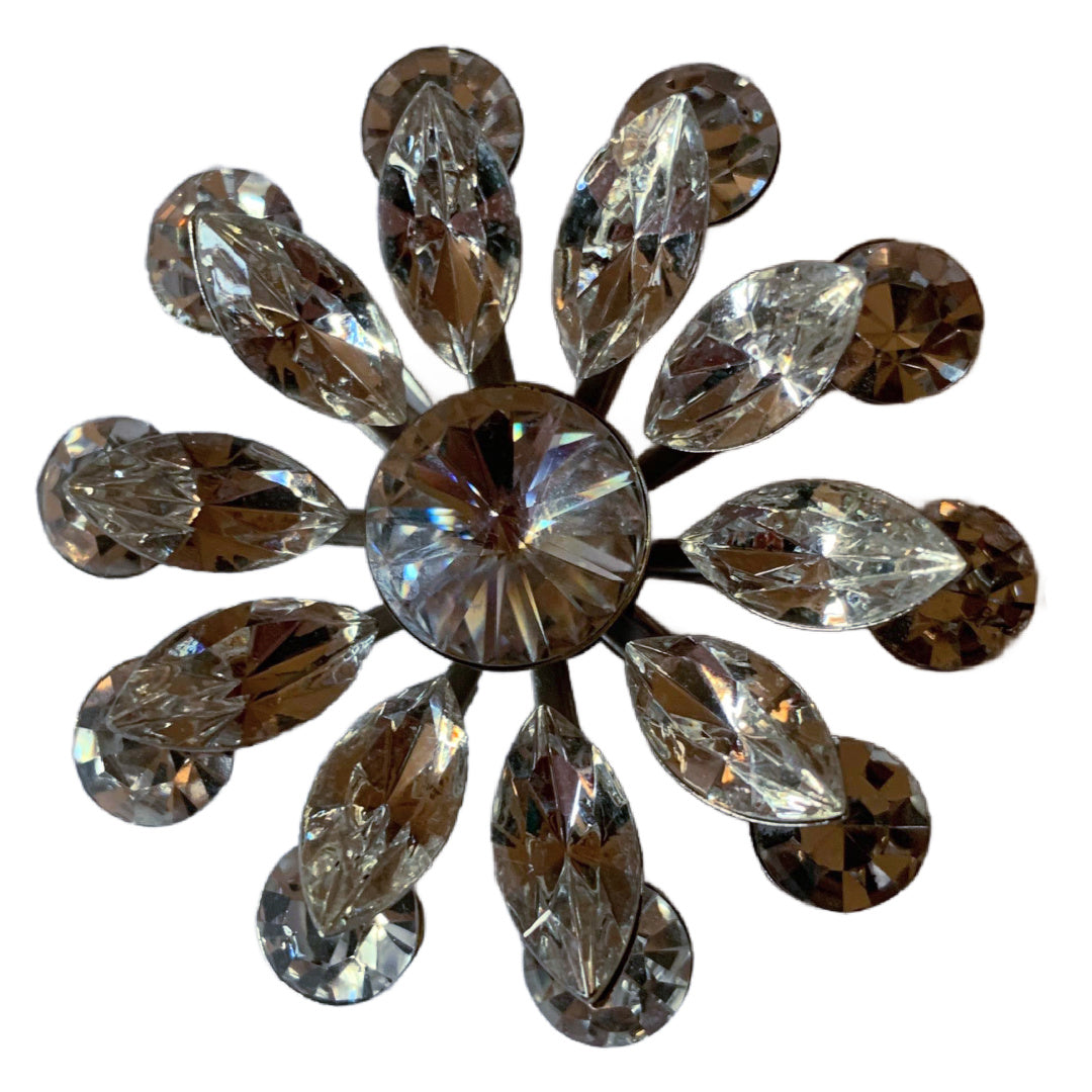 BIG Sparkling Starburst Clear Rhinestone Brooch circa 1950s