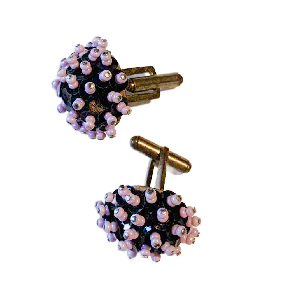 Black and Pink Sequin and Bead Cufflinks circa 1940s