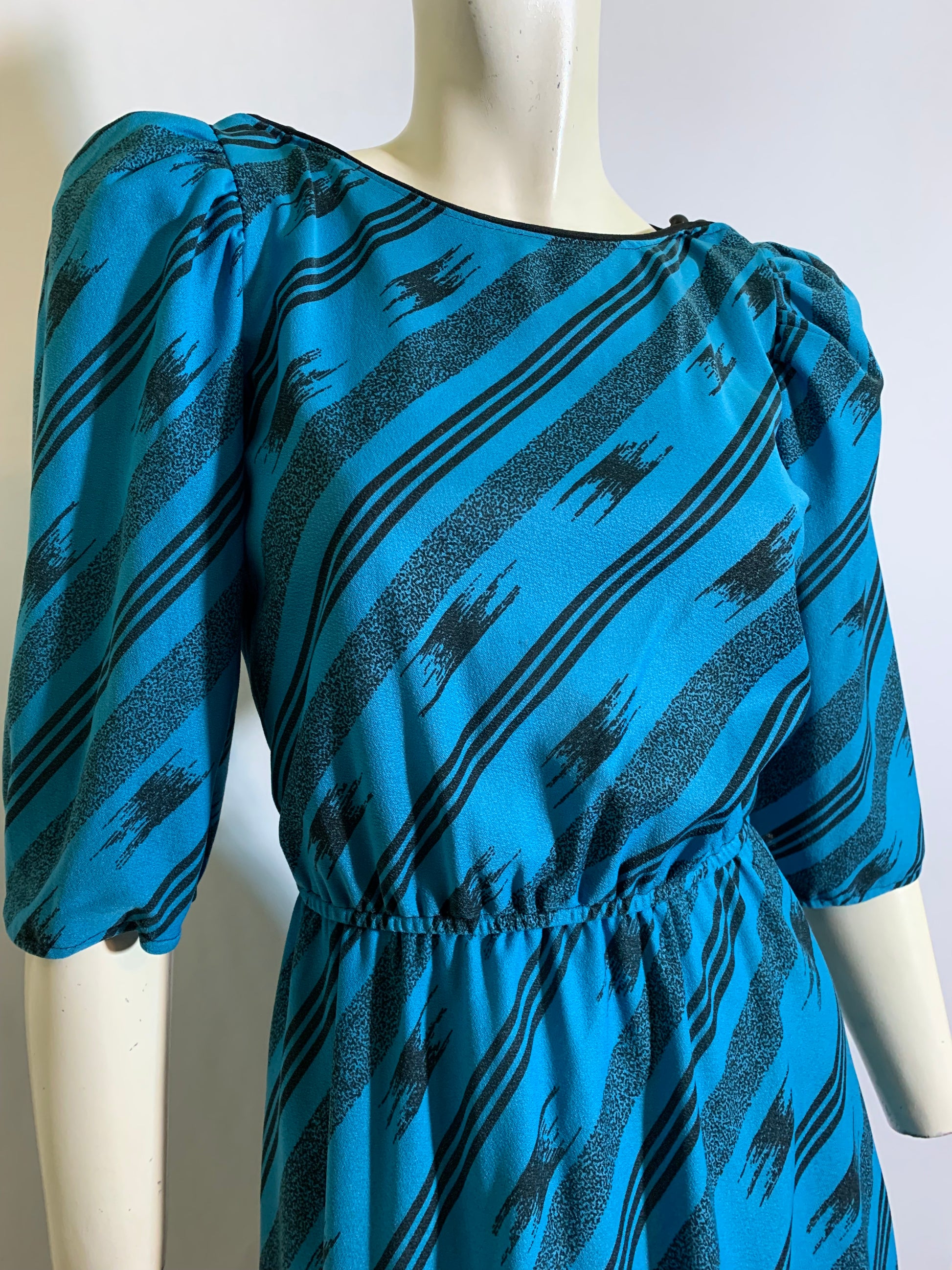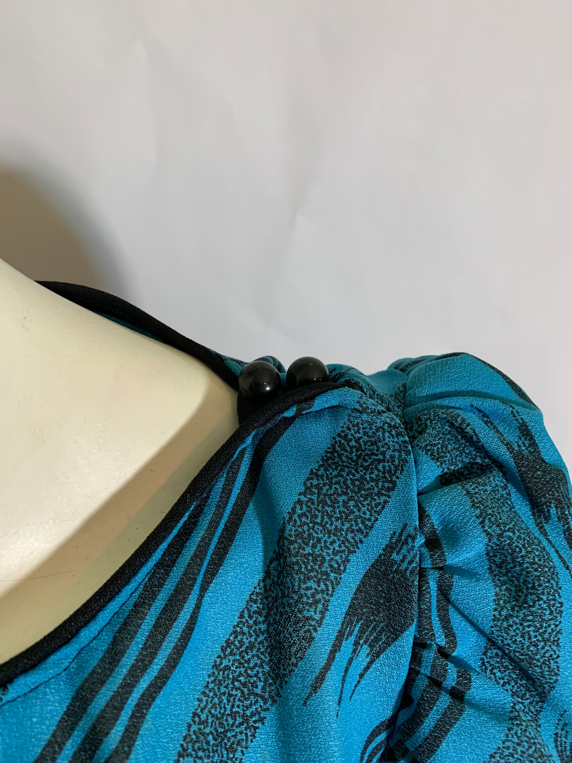 Black and Turquoise Nylon Blouson Bodice Dress circa 1980s