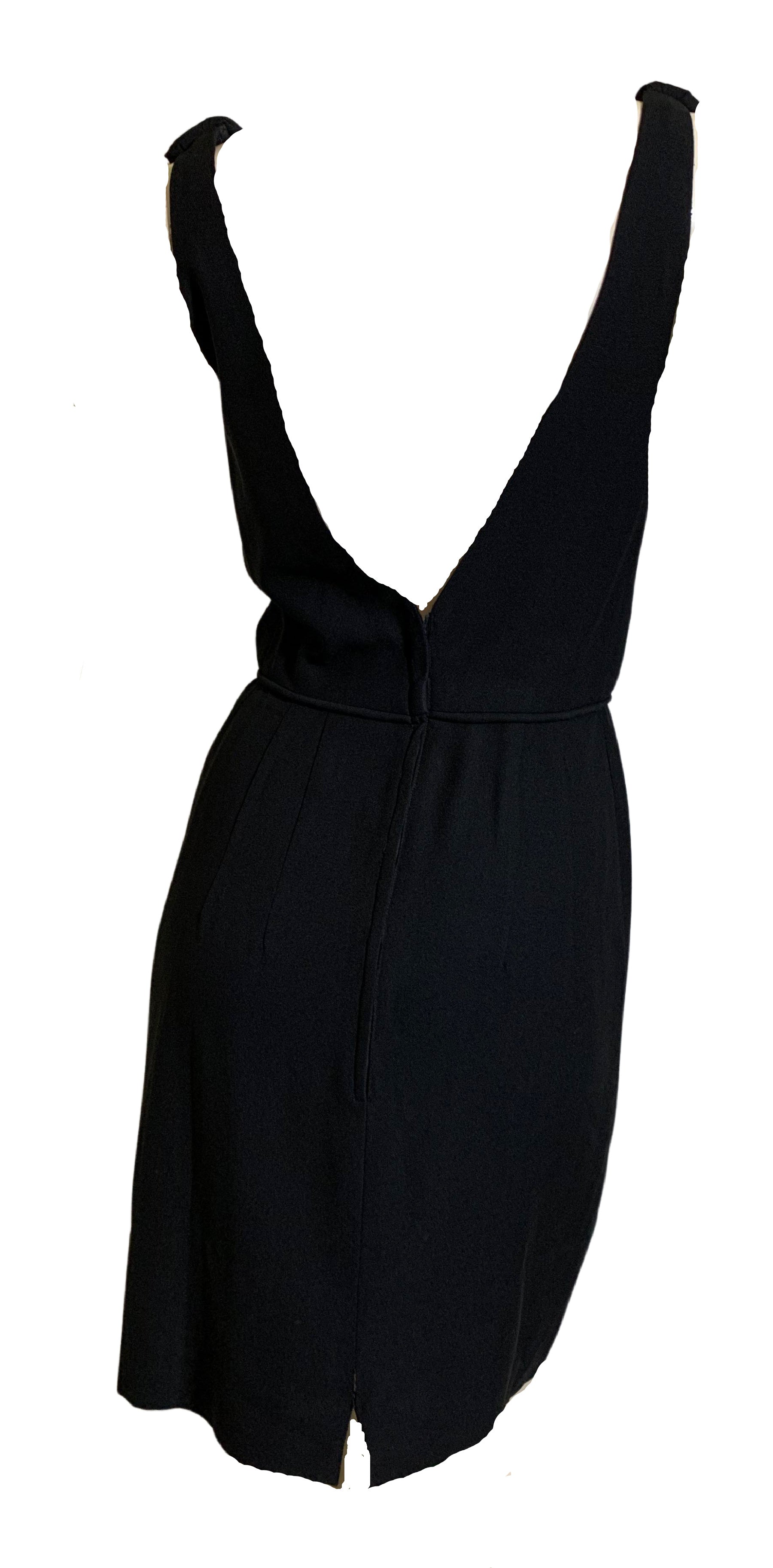 Black Chiffon Draped Neckline Mini Cocktail Dress circa 1960s