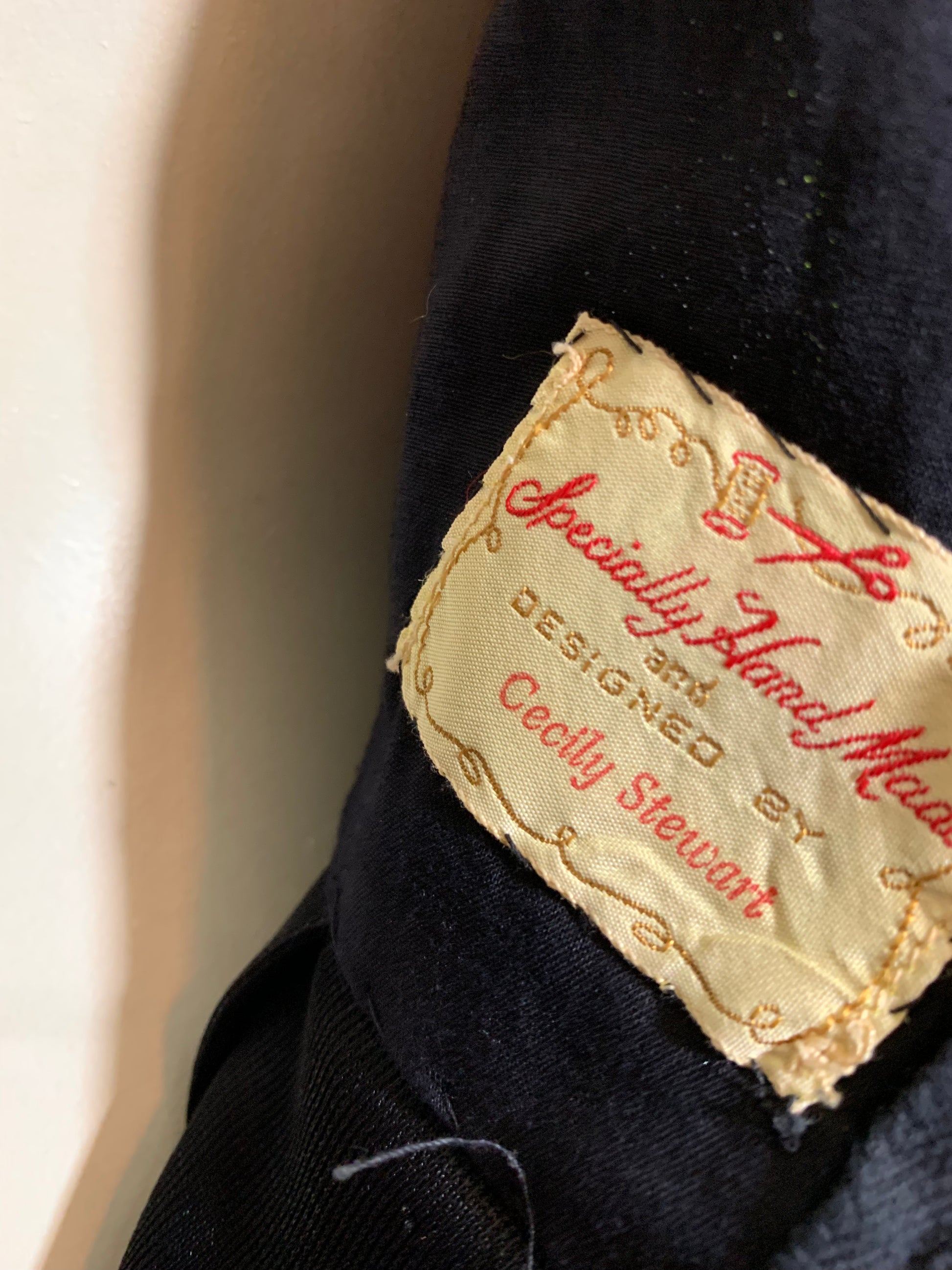 1960s black cocktail dress with nylon chiffon draped over front neckline (could be switched to back?). Back metal zipper. Hand made, no flaws.