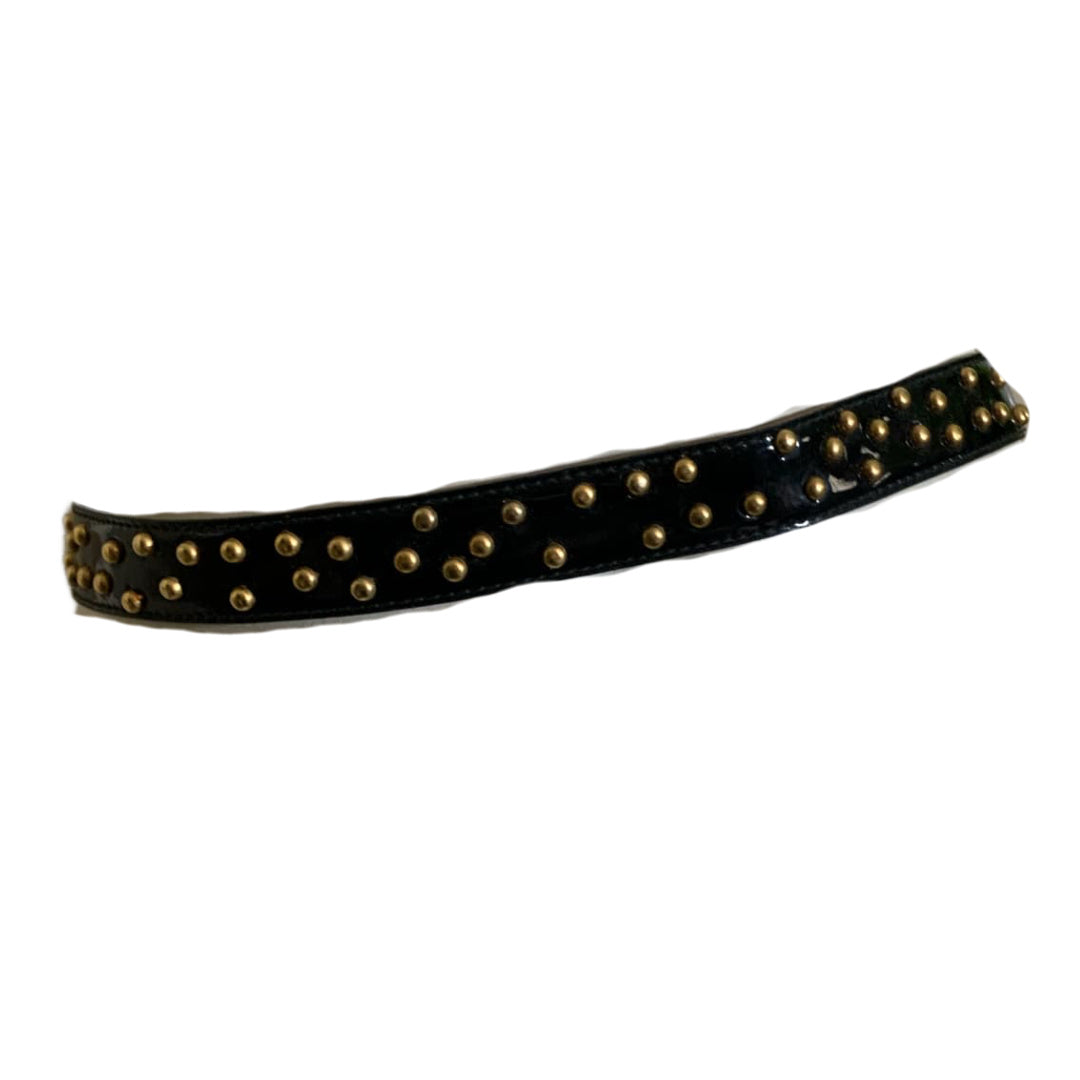 Black Patent Skinny Vinyl Belt with Gold Metal Studs circa 1980s