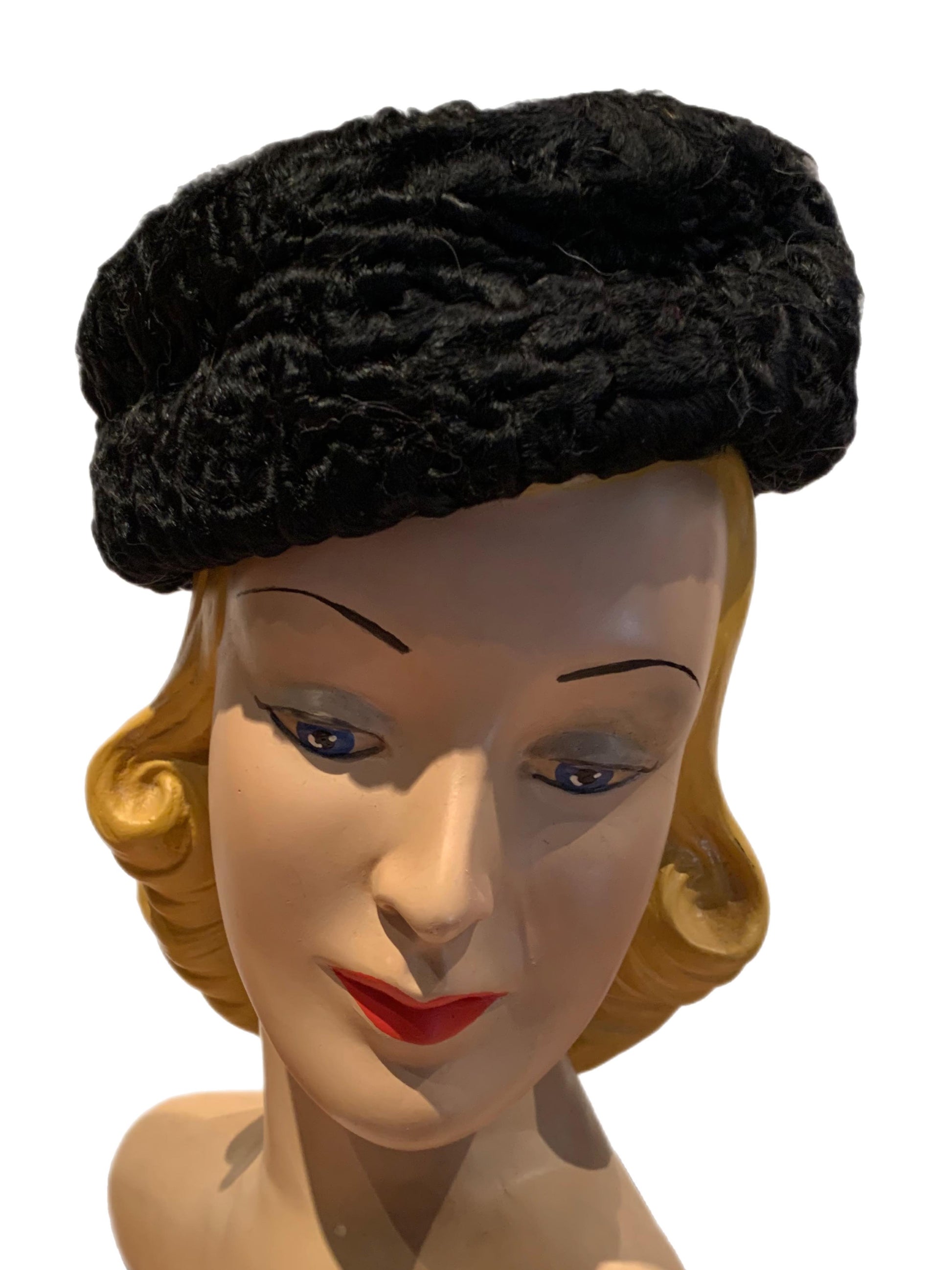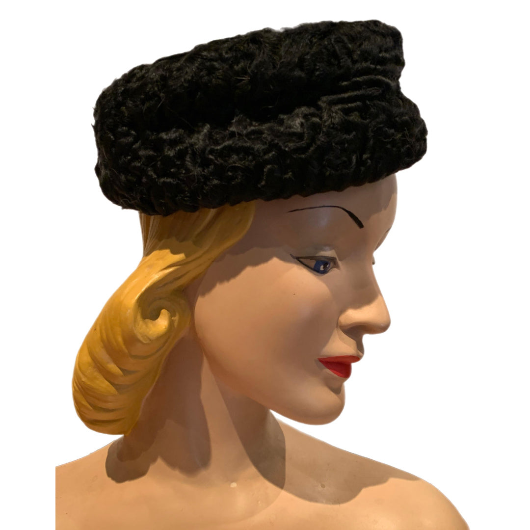 Black Persian Lamb Fur Pill Box Hat circa 1960s