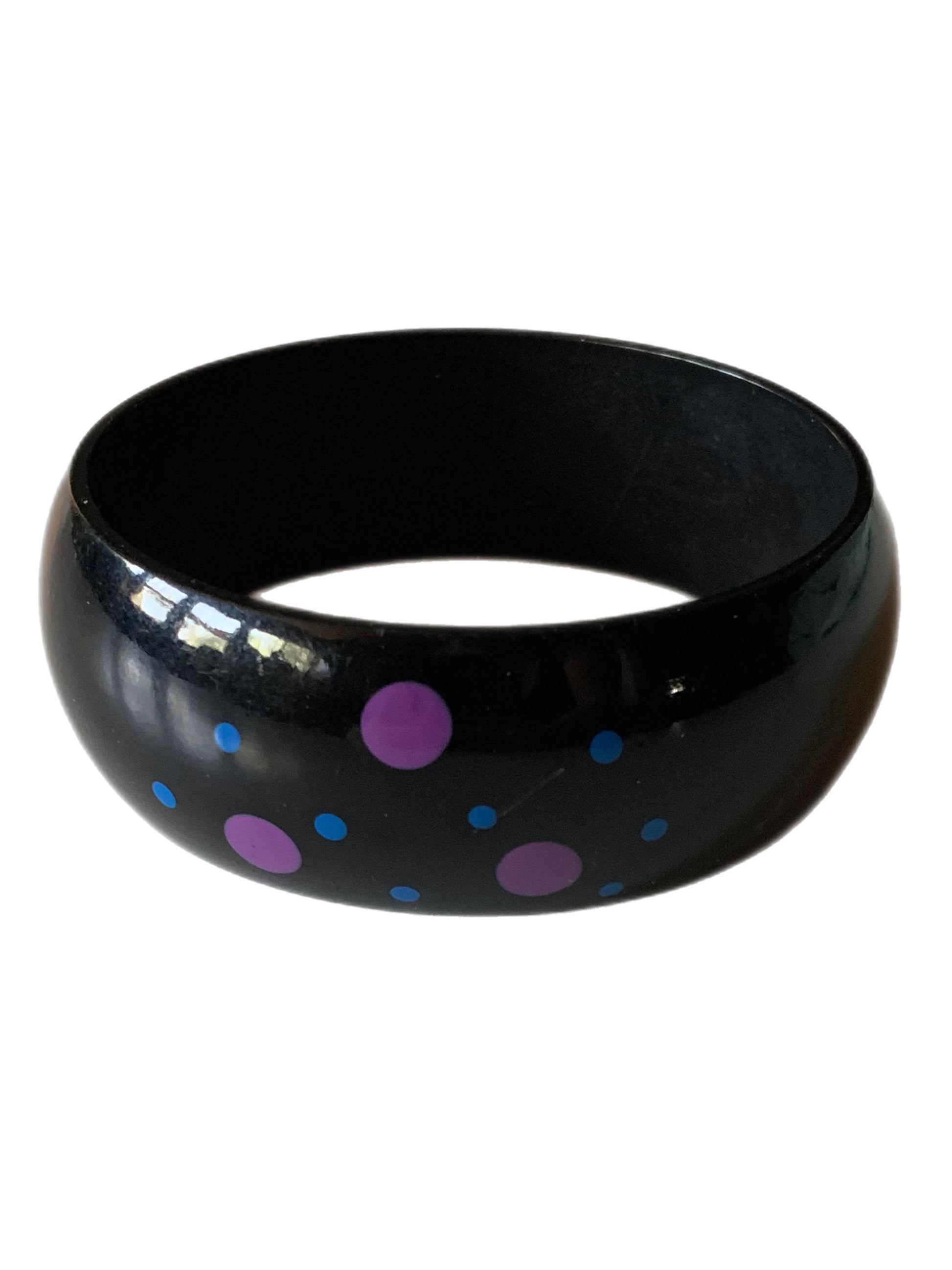 Black, Purple and Blue Painted Polka Dot Bangle Bracelet circa 1980s