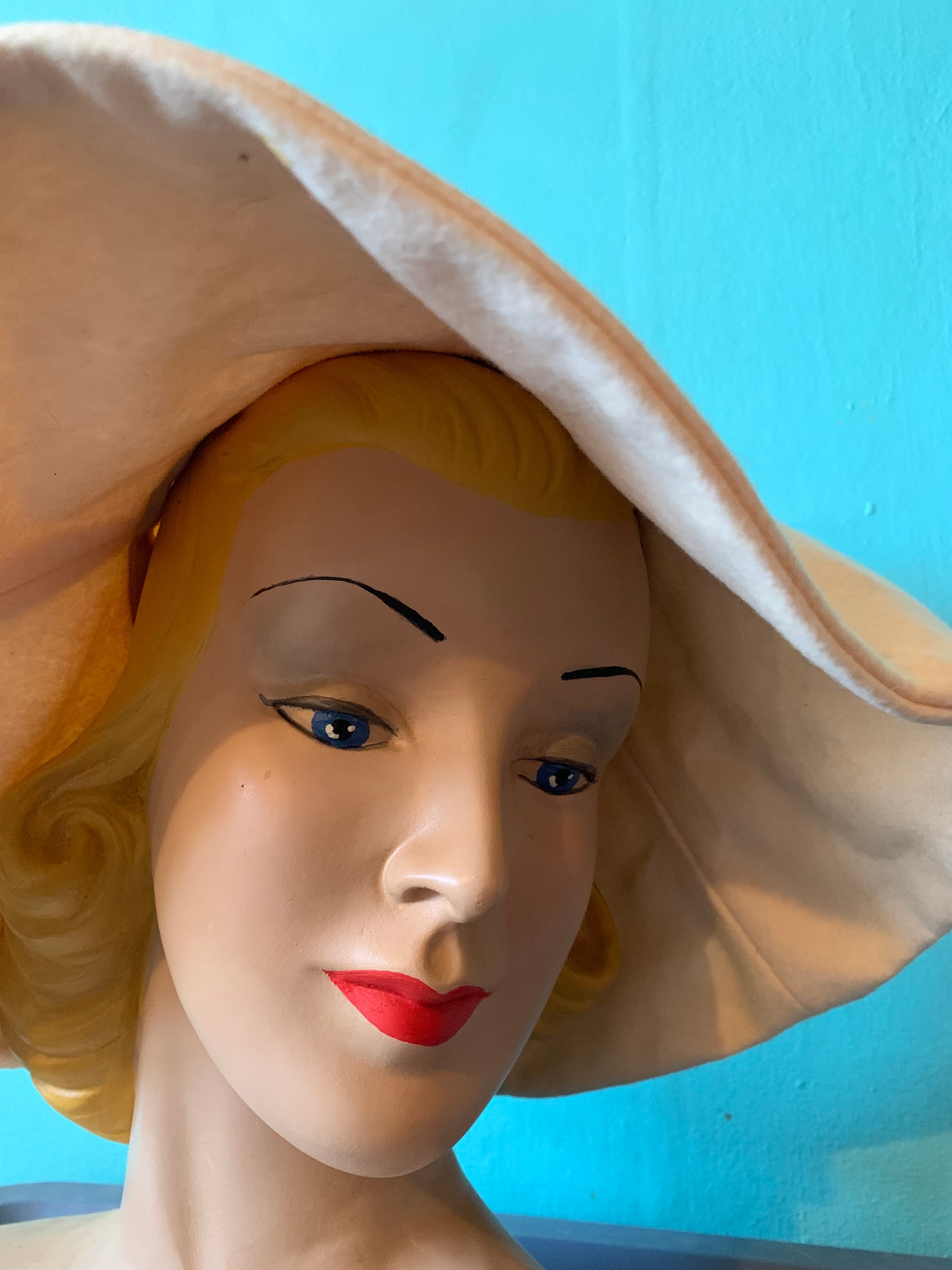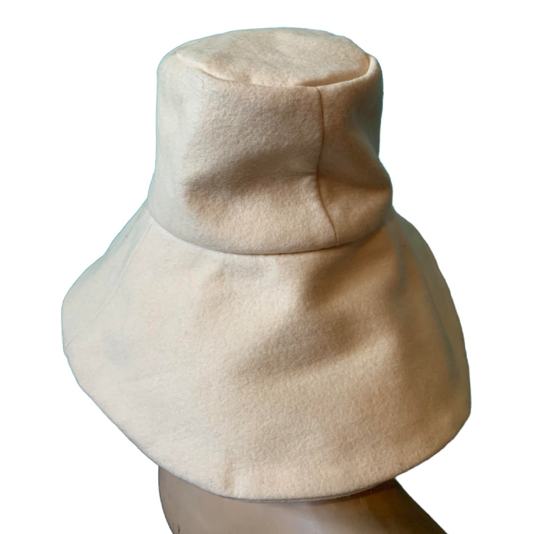 Bone white felted wool slouchy crown hat (shown "tall") with wide brim- small size, but also kind of fits any size. By Doree of NY. No flaws.