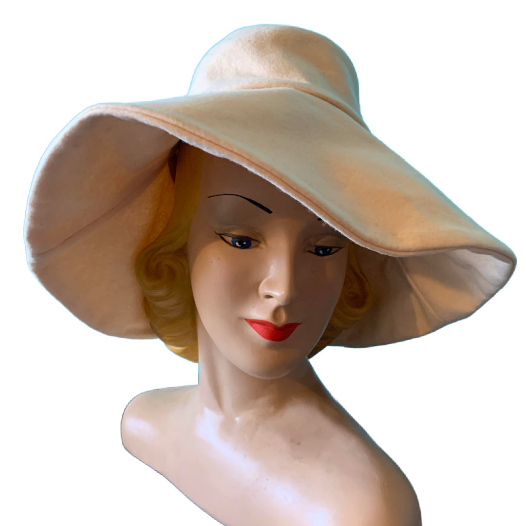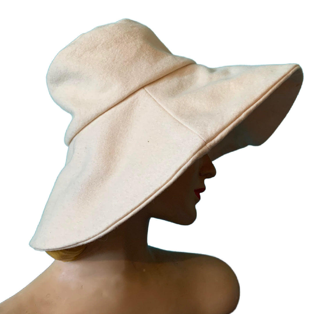 Bone White Felted Wool Slouchy Hat with Wide Brim circa 1970s
