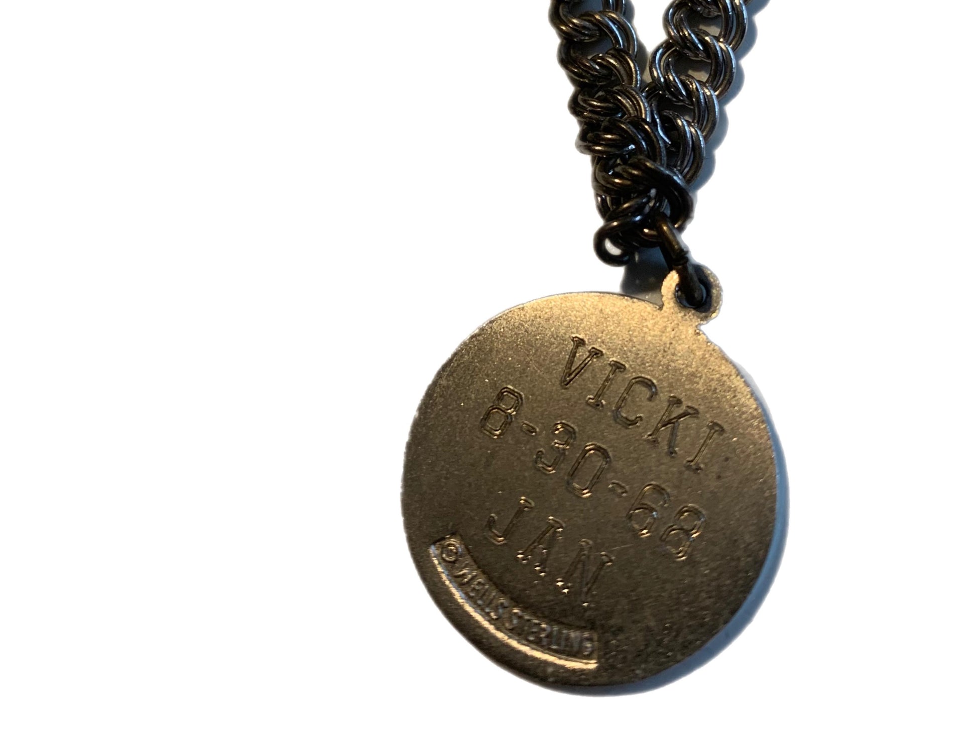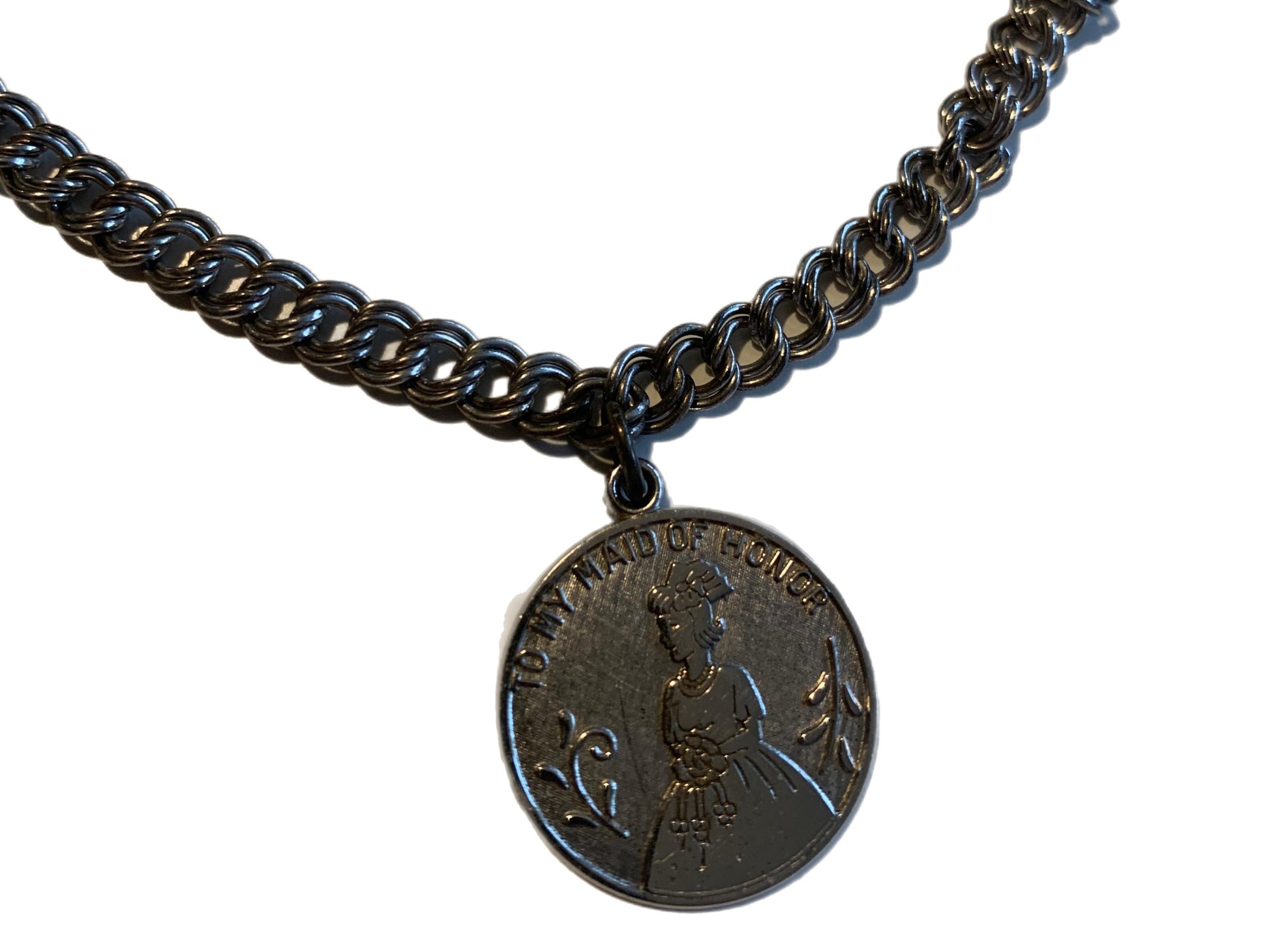 Wells Sterling Silver charm bracelet with "To My Maid of Honor" charm, etched with date on the back "Vicki 8-30-68 Jan". Keep someone else's memories alive while adding your own! 7" around.