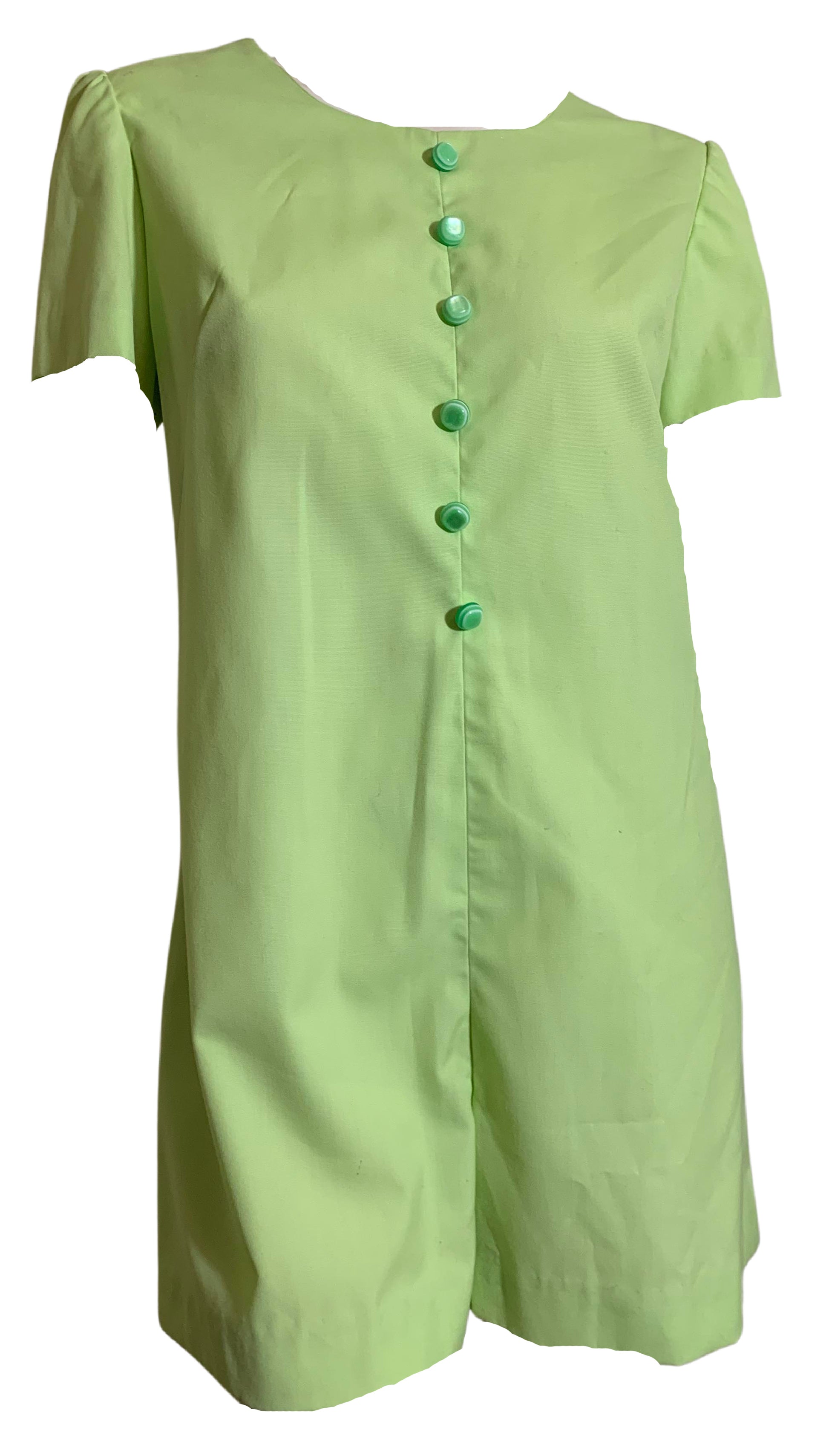 Bright mint green cotton button trimmed jumper or skort dress. Zips up back. Hand made, no flaws.