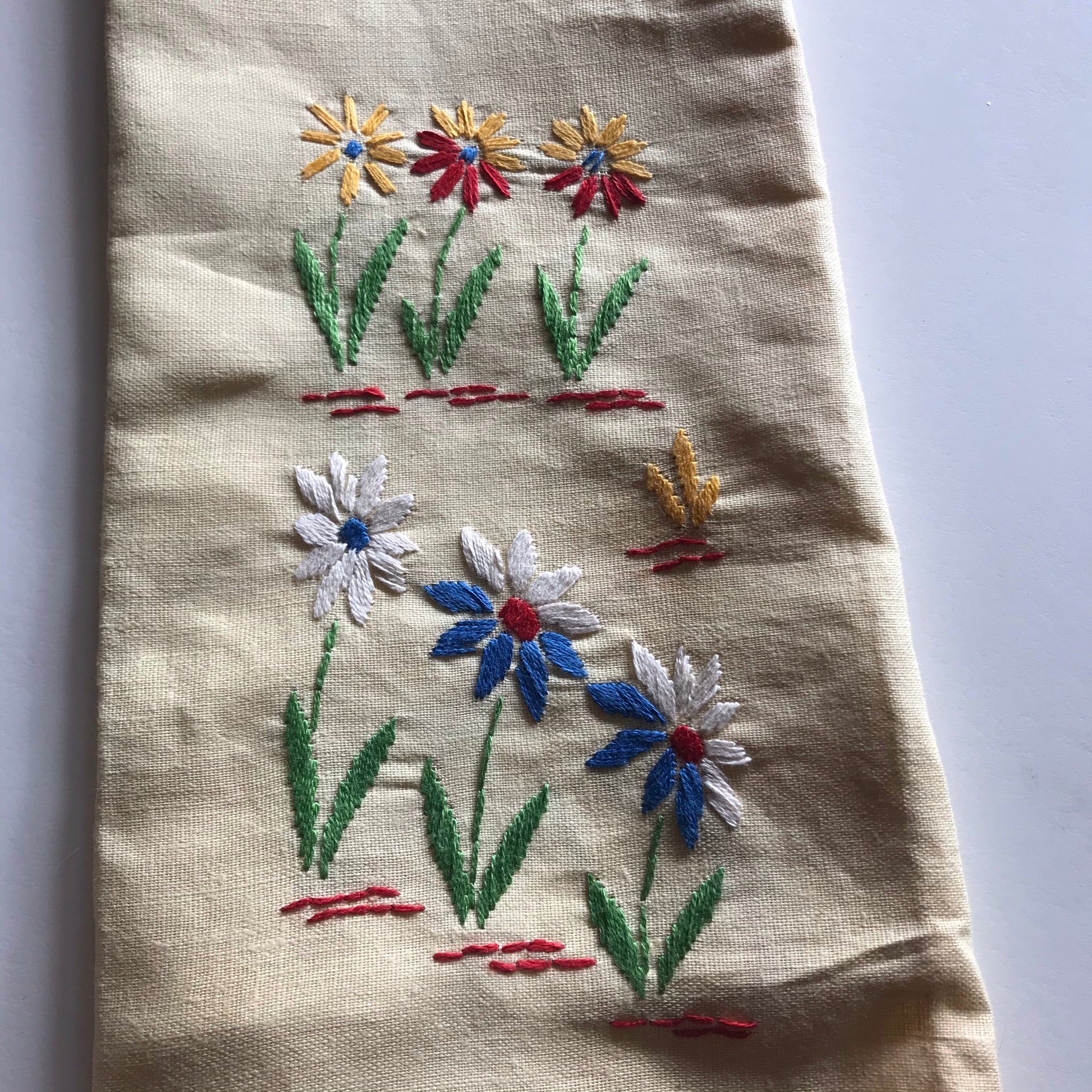19" by 14" floral embroidered yellow cotton large handkerchief. No flaws.