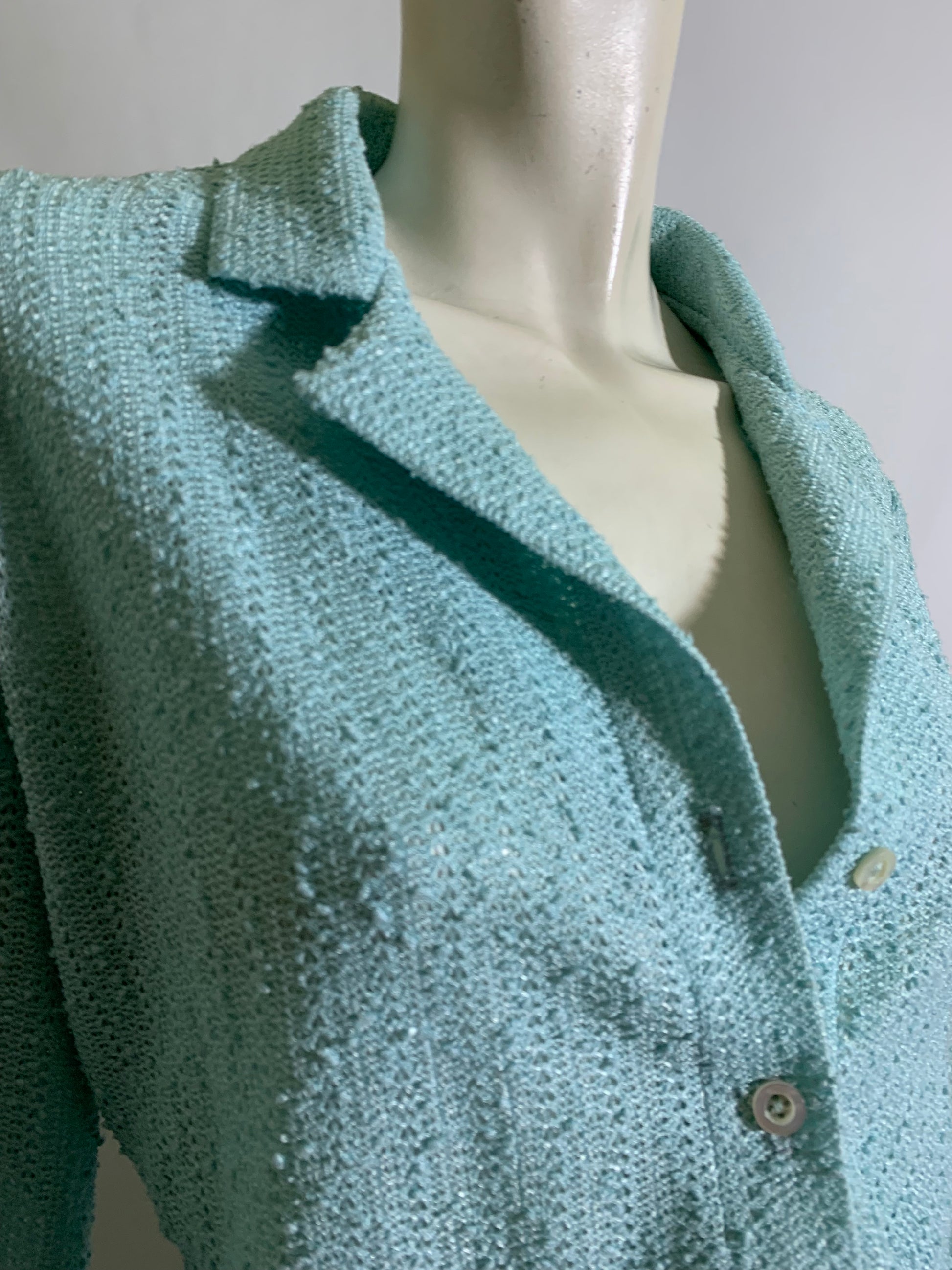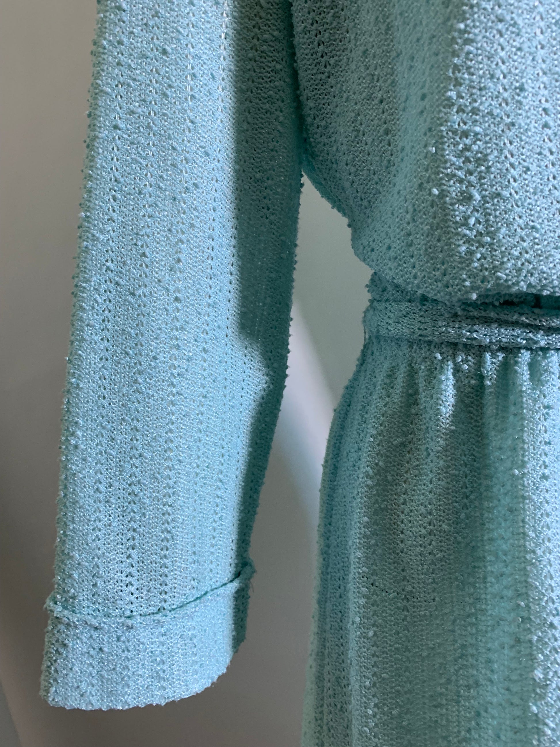 Carolina Blue Textured Knit Blouson Bodice Dress circa 1970s