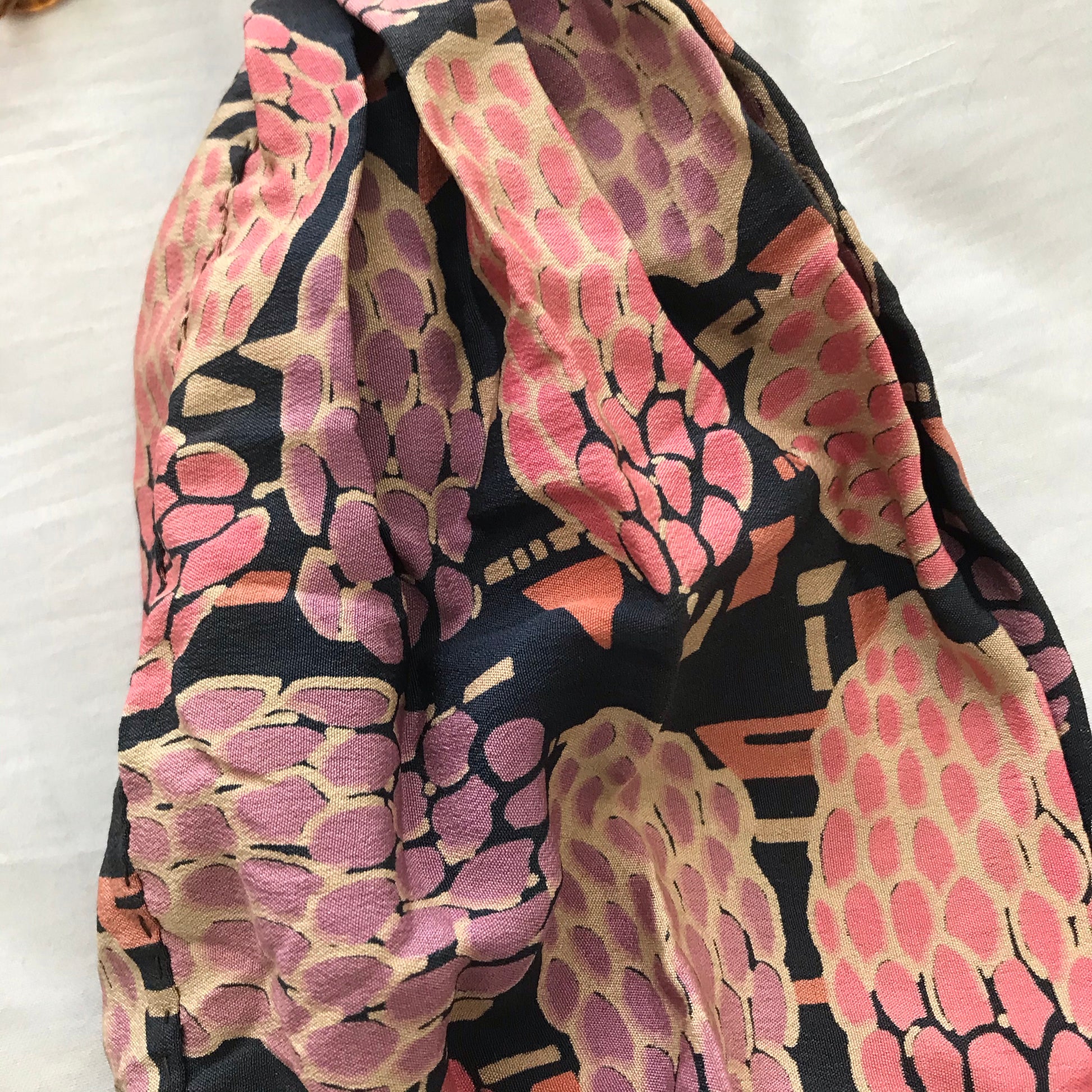 Colorful Pastel and Blue Abstract Print Silk Miser's Bag Handbag circa 1910s