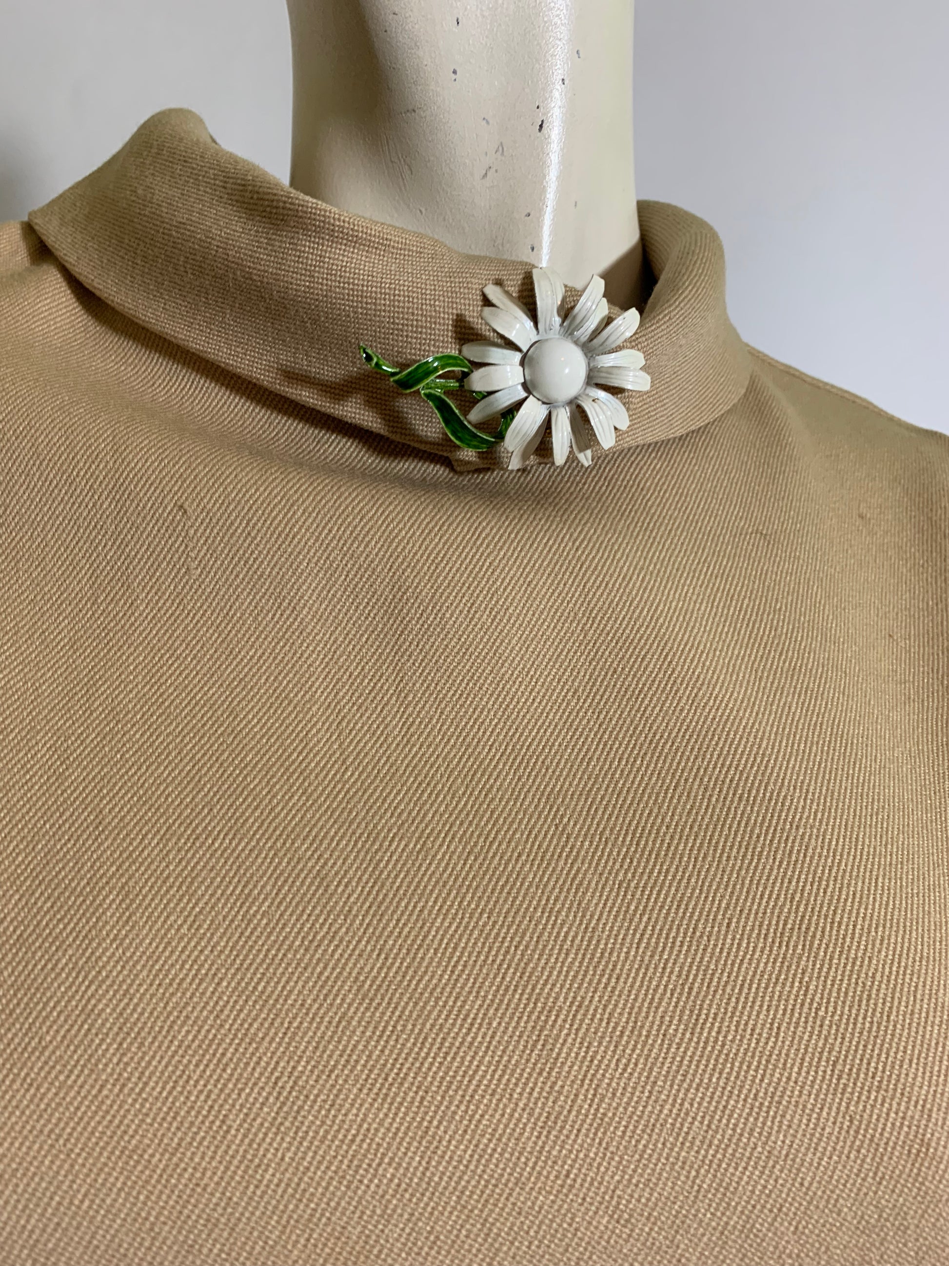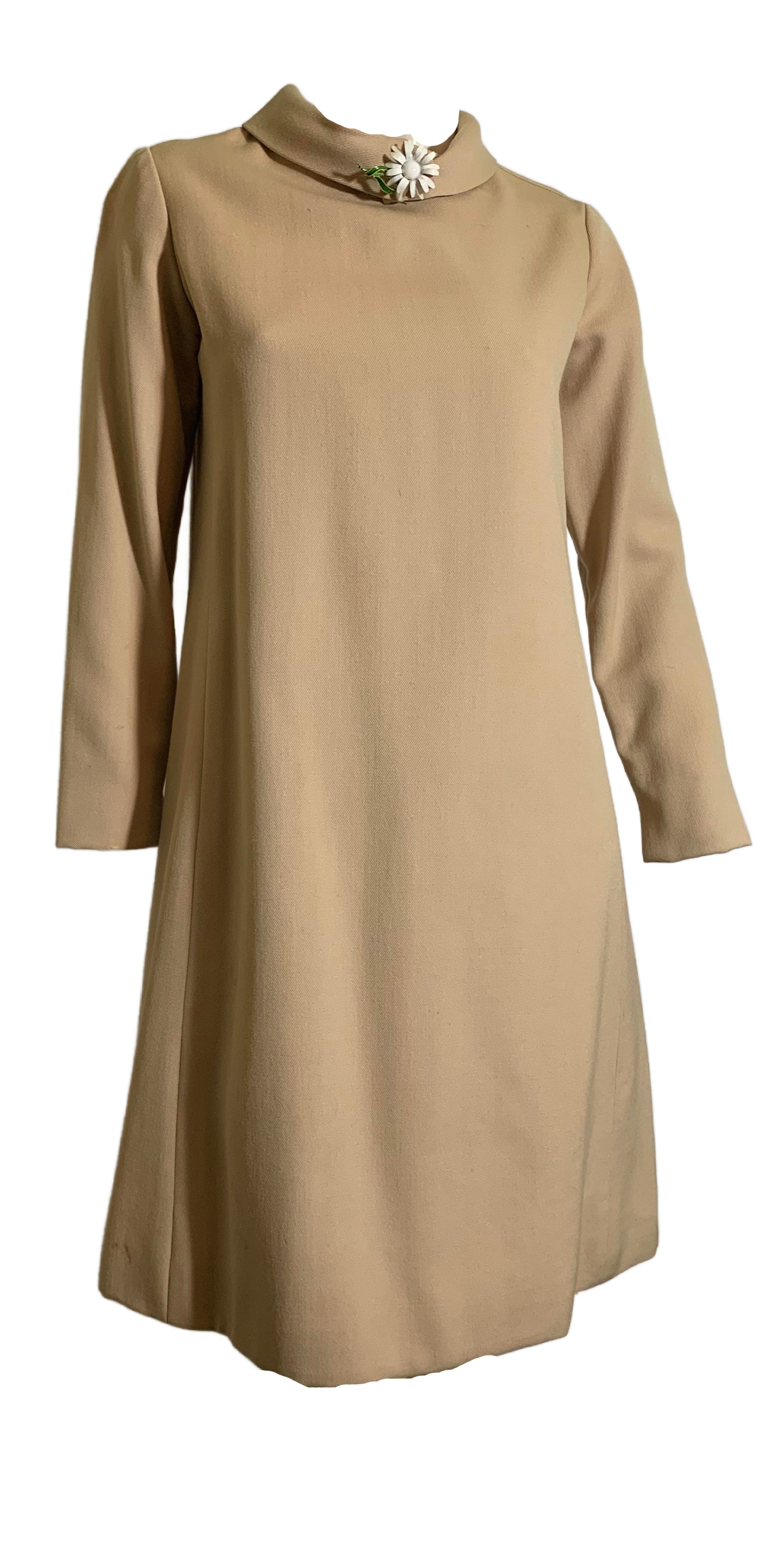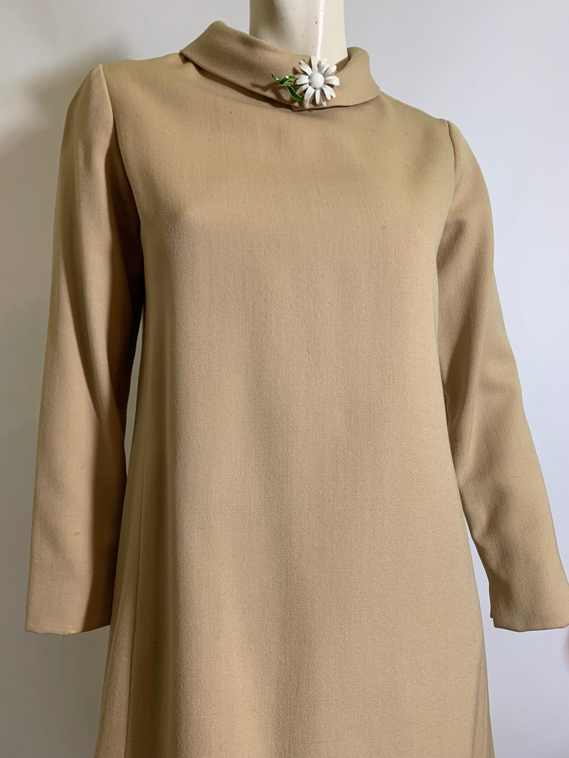 Chic Folded Collar Tan Dress circa 1960s