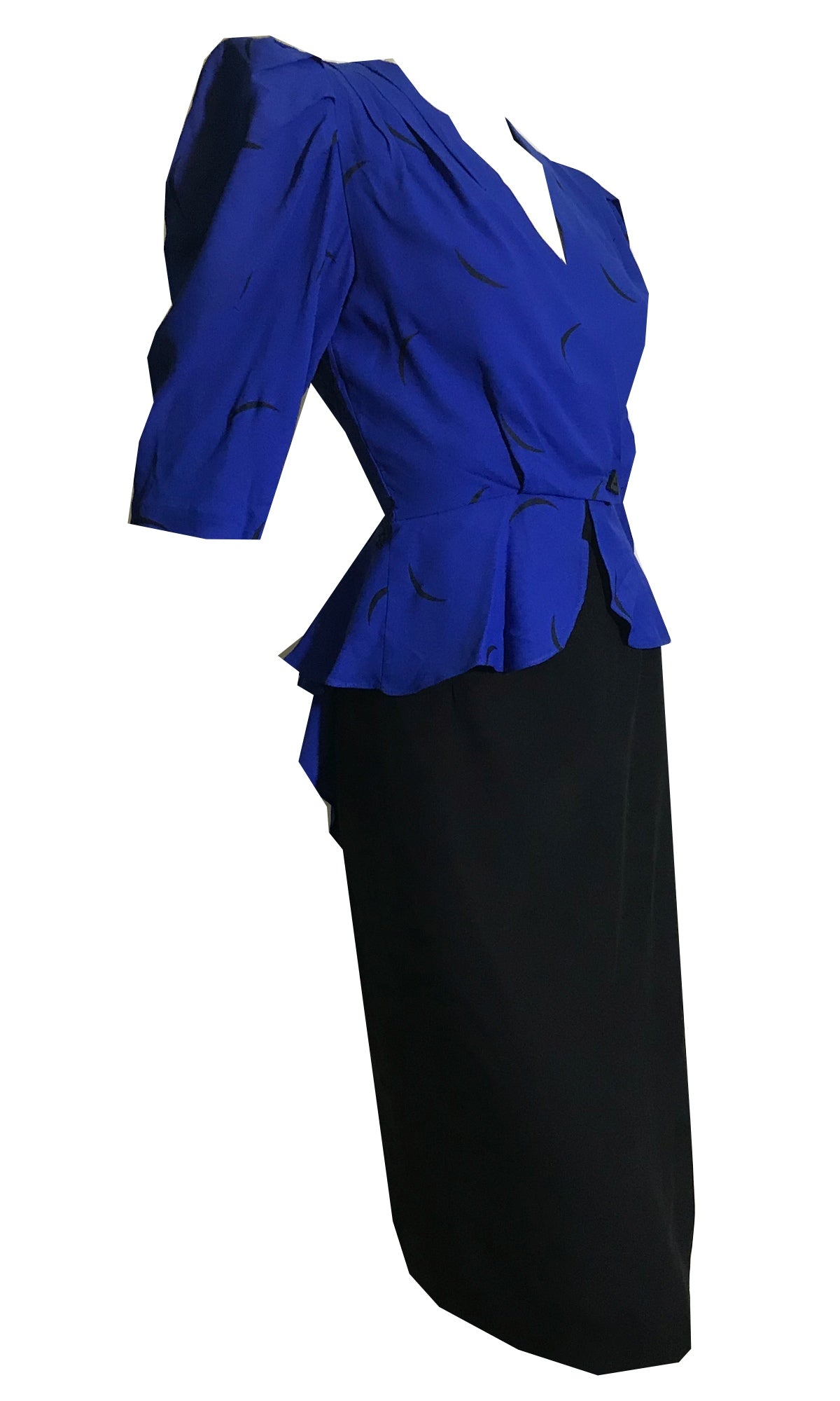 Blade Runner Chic Black and Blue Suit Dress with Peplum circa 1980s