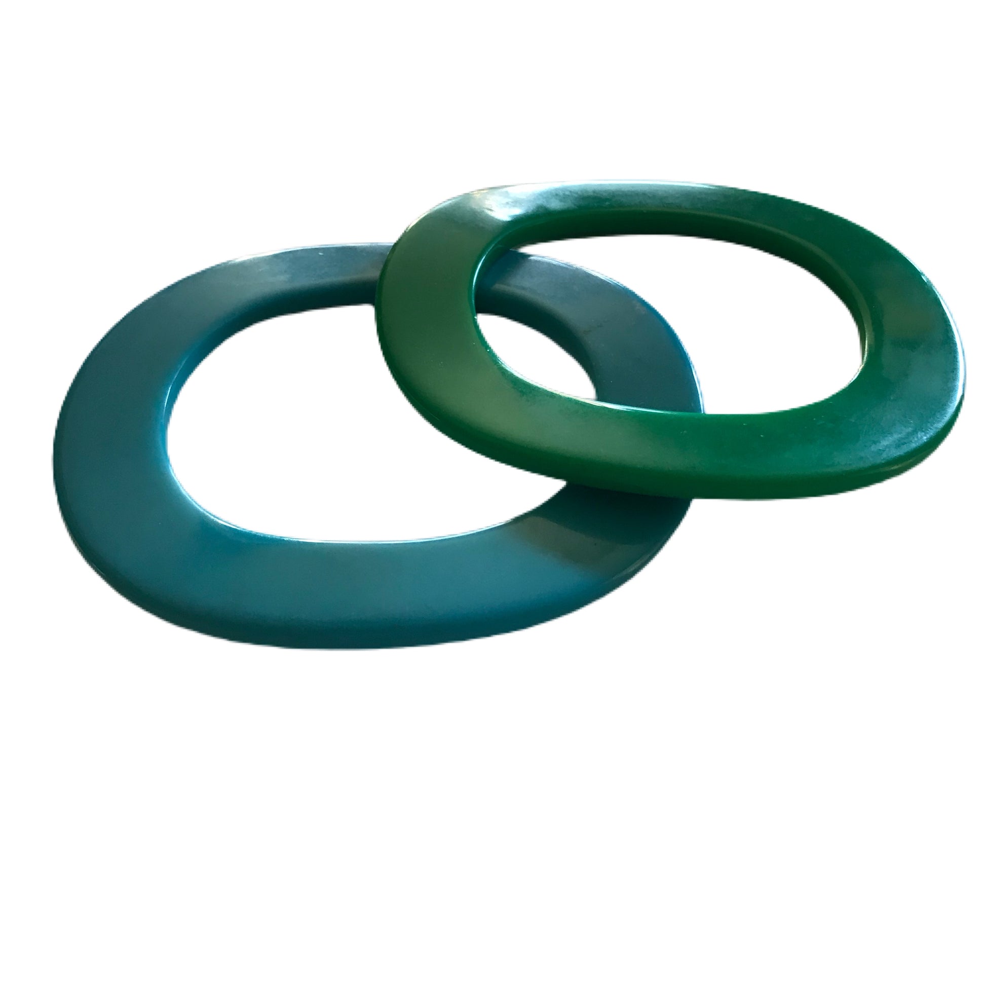 Pair Wavy Plastic Blue & Green Bracelets circa 1980s