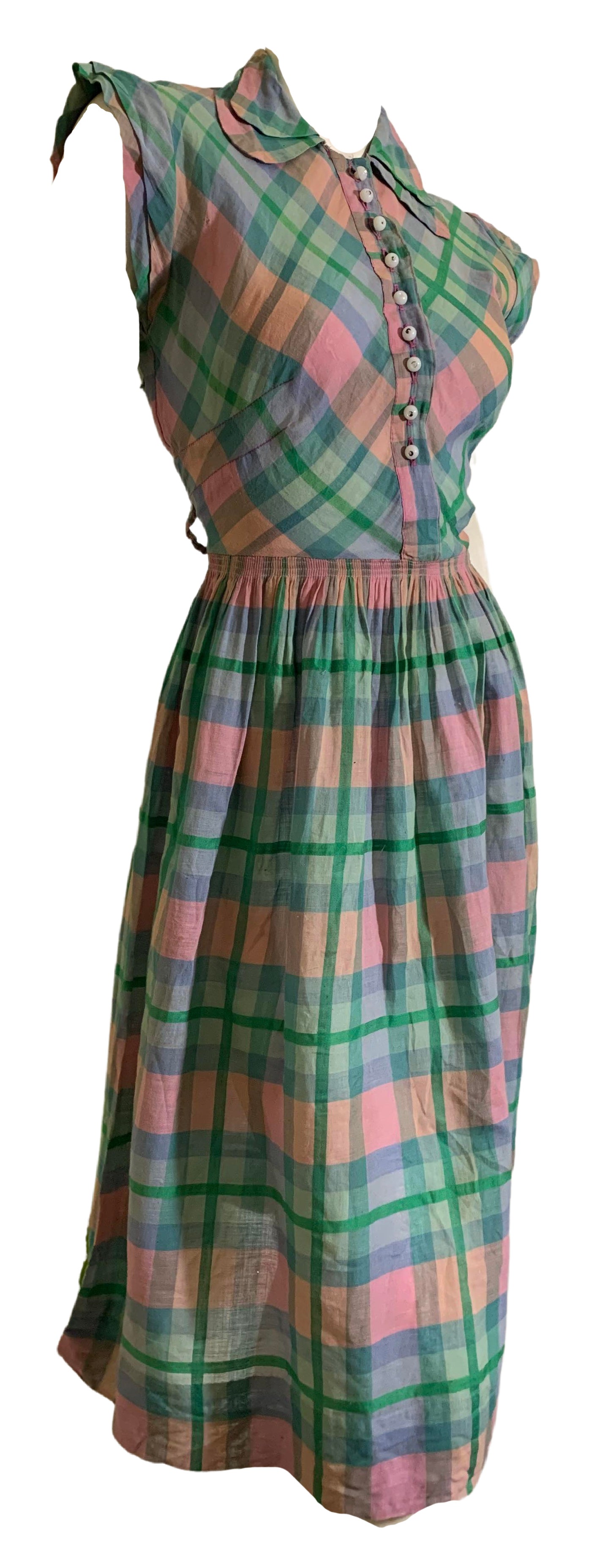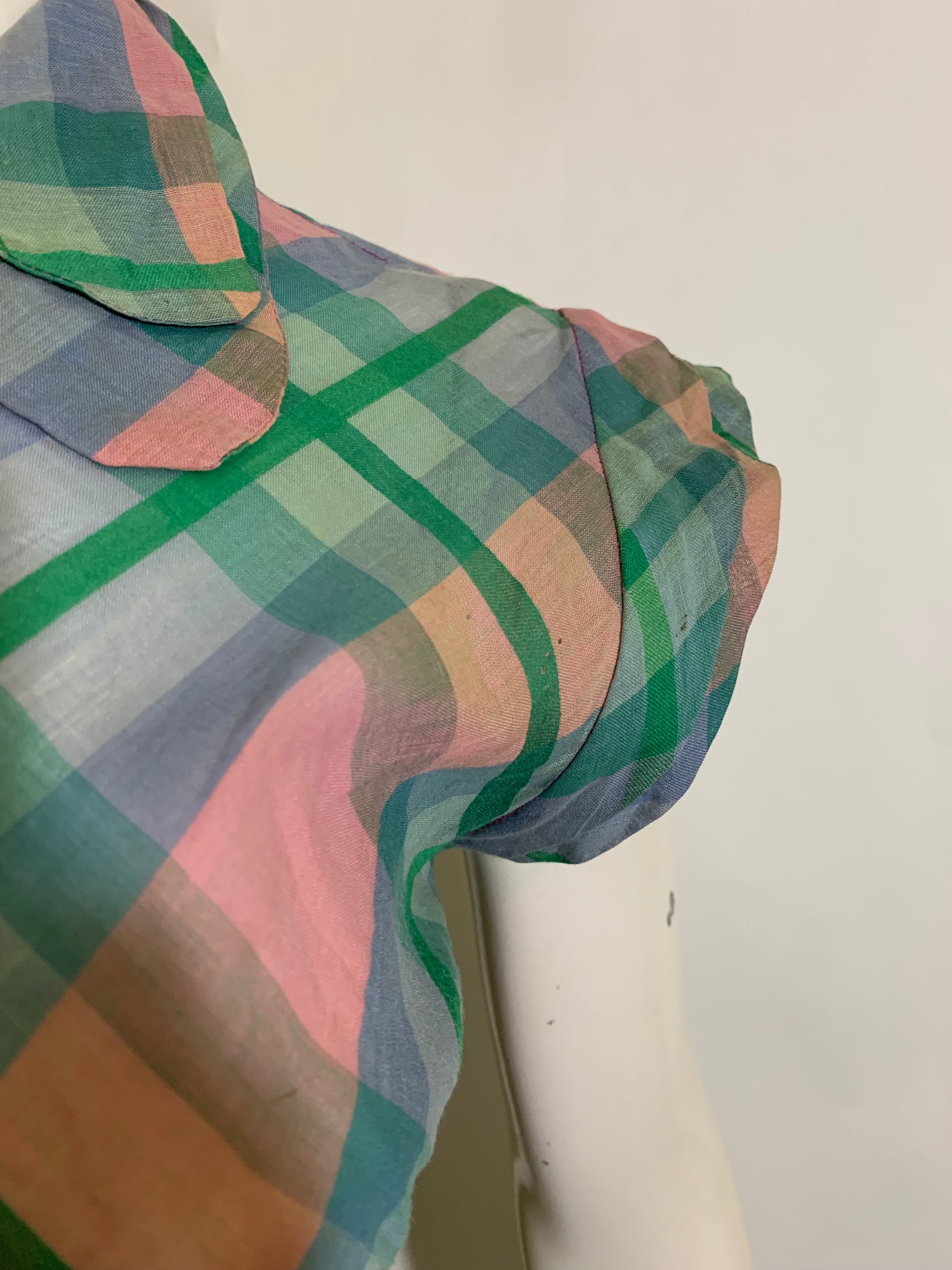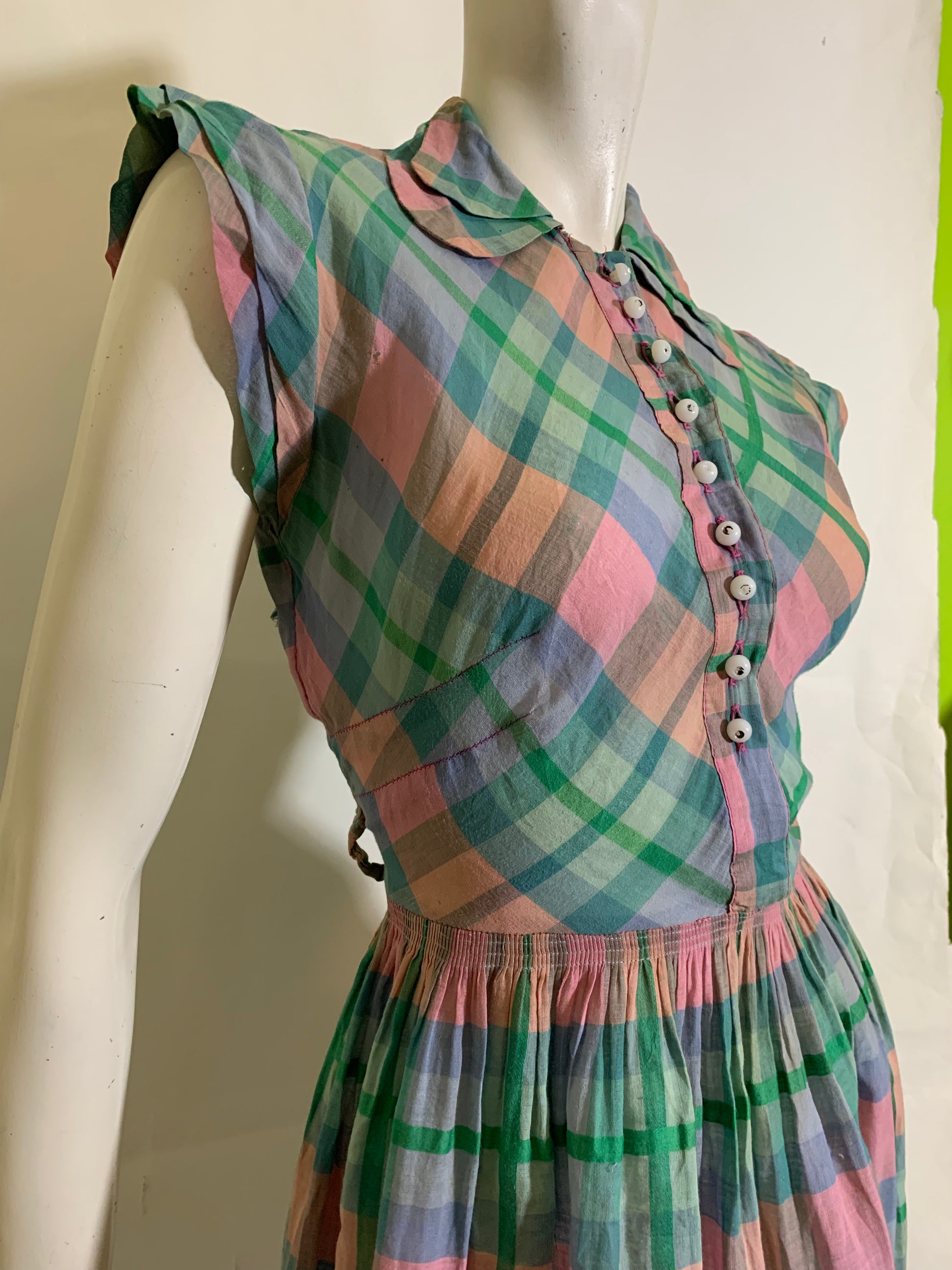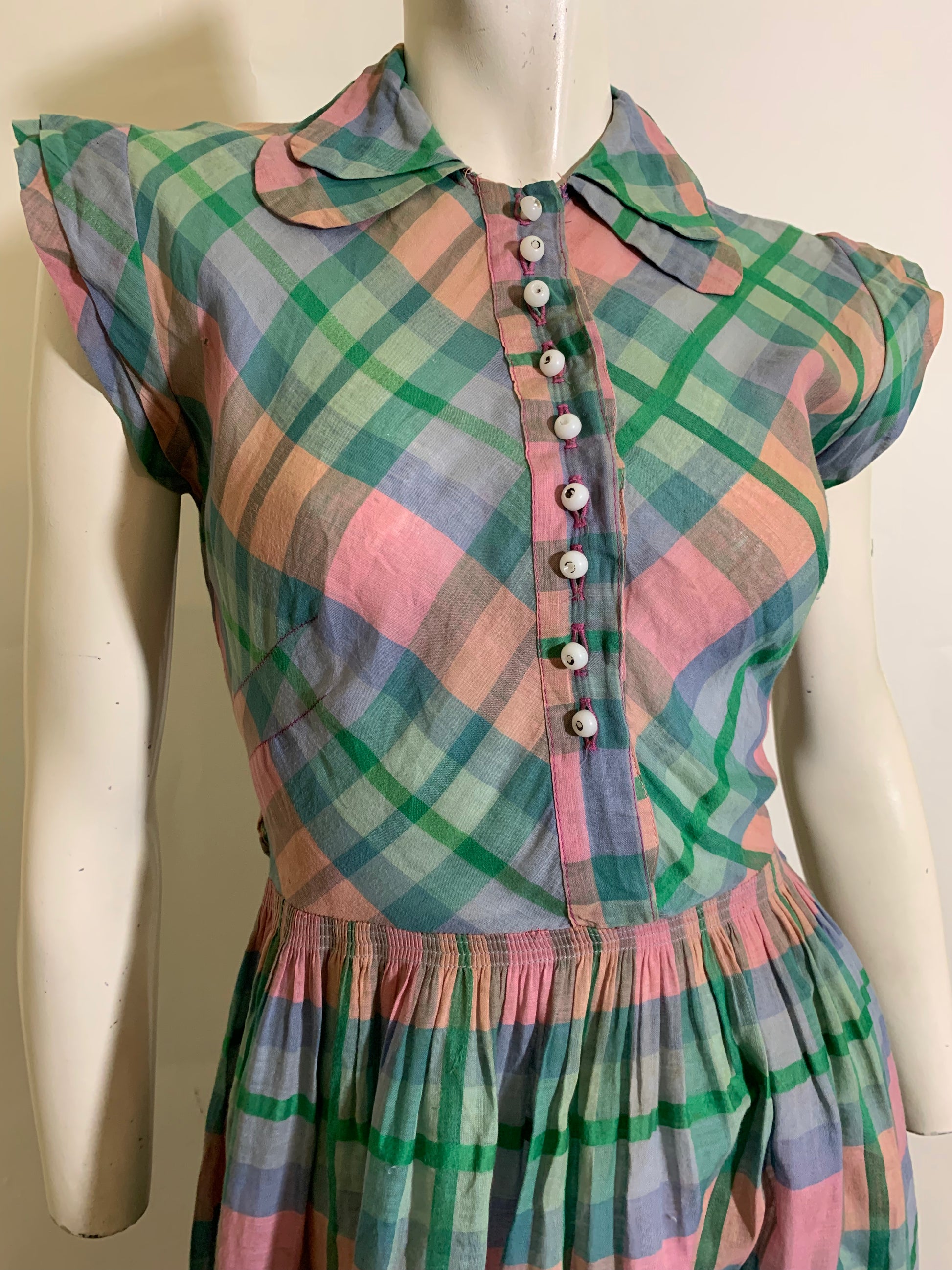 Darling Pastel Plaid Voile Cotton Day Dress circa 1940s