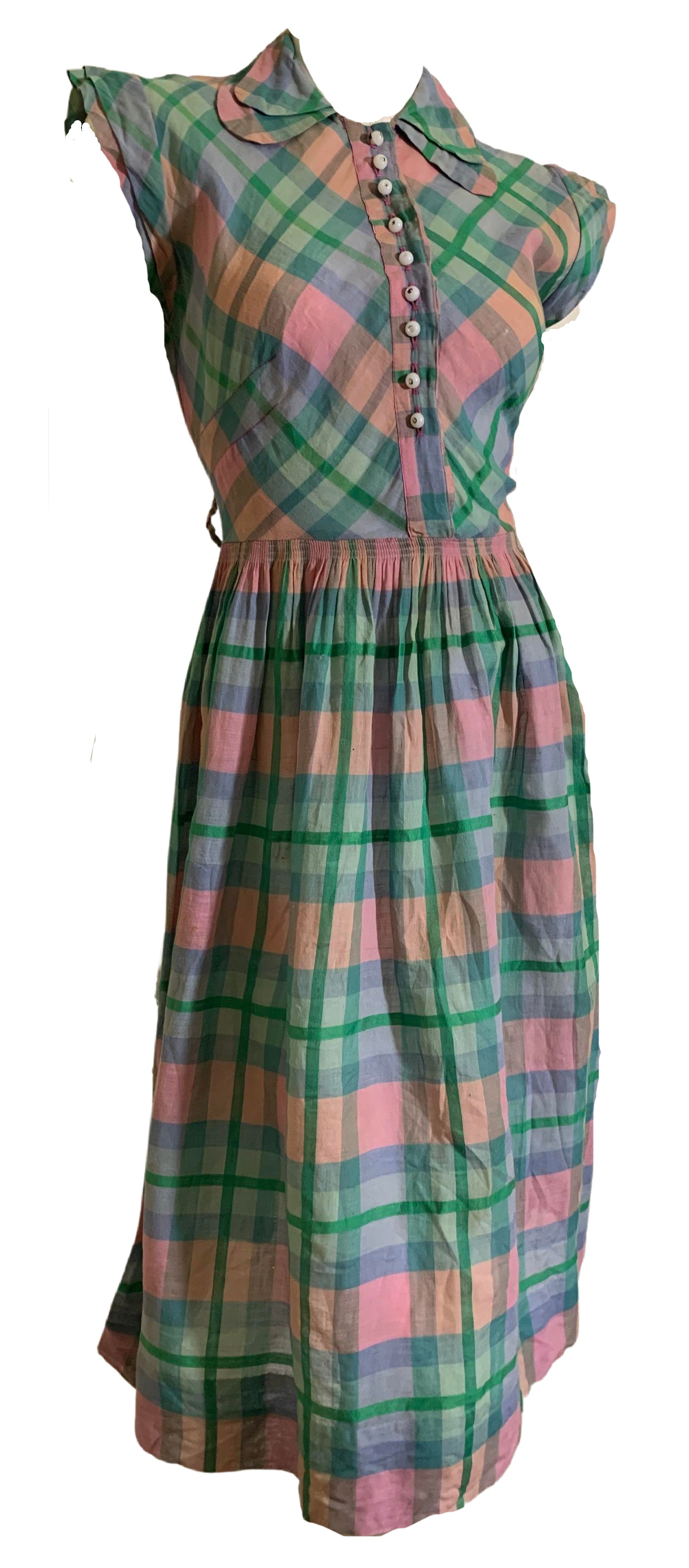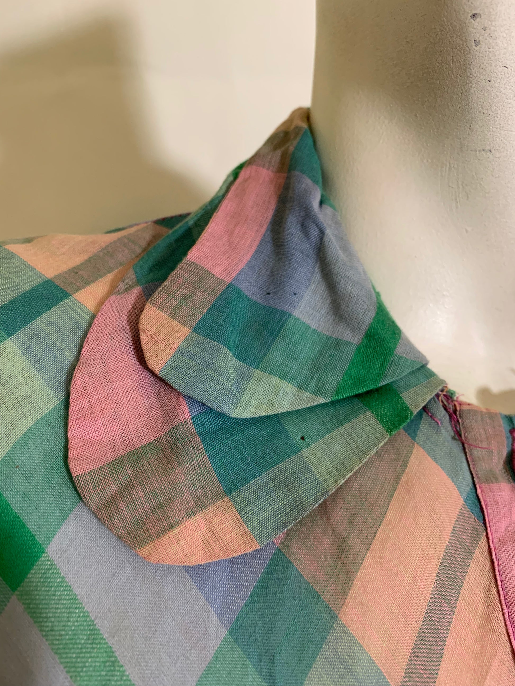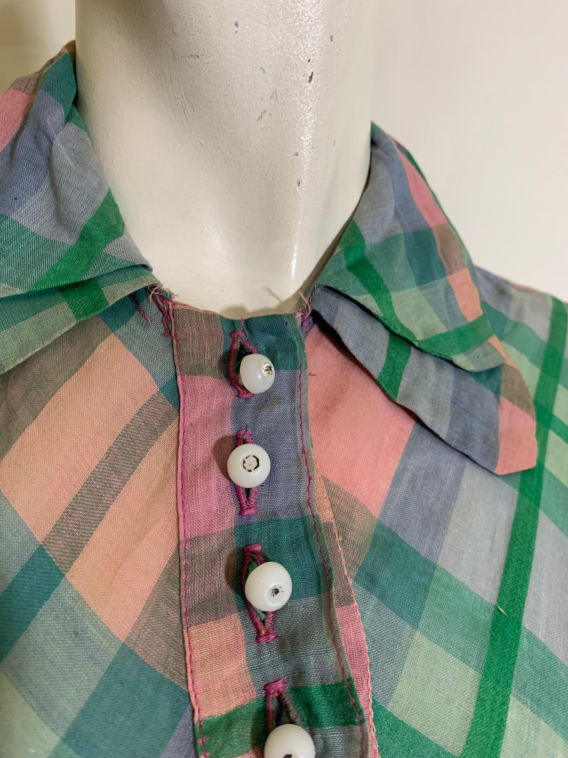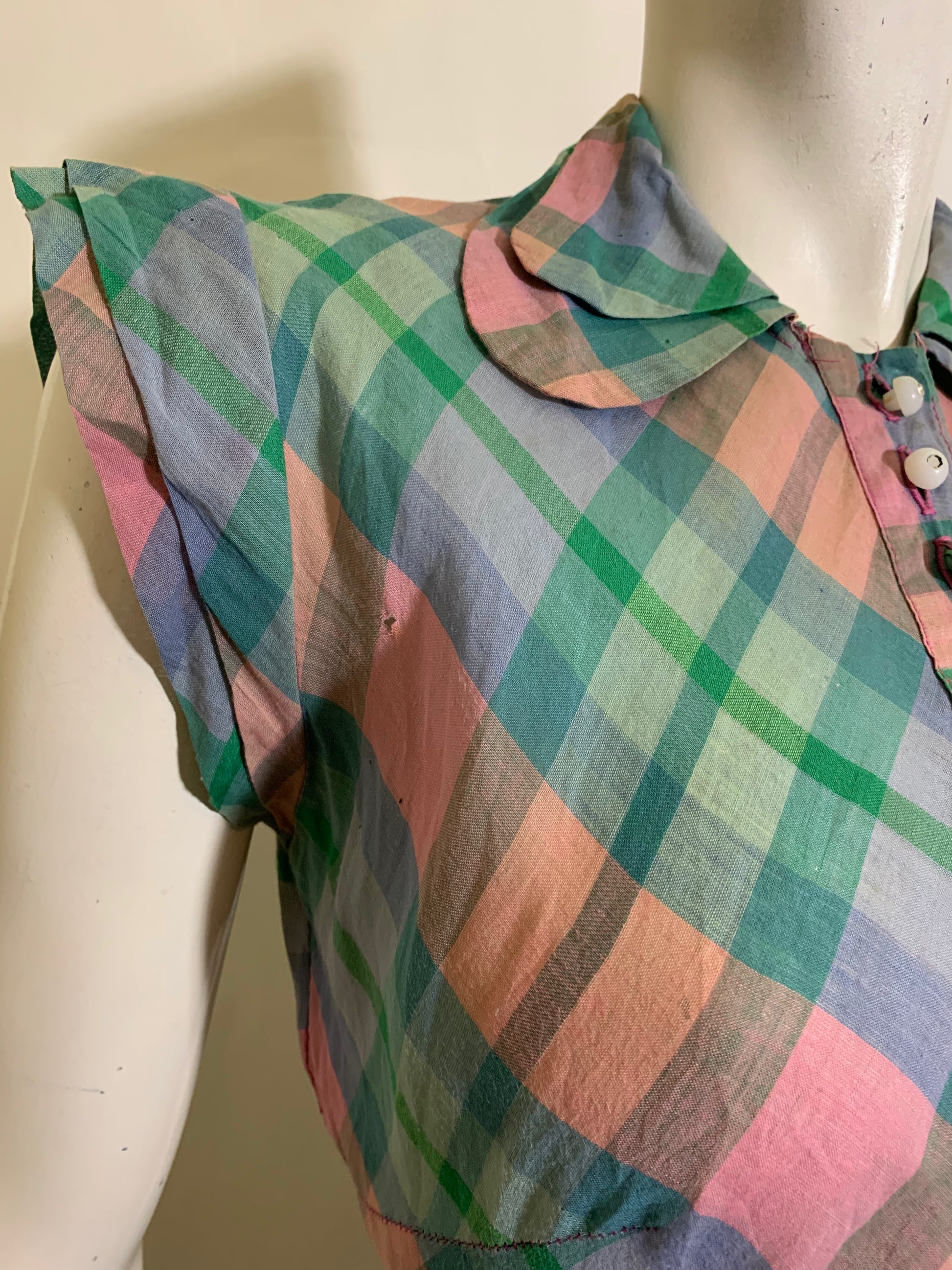 Darling Pastel Plaid Voile Cotton Day Dress circa 1940s