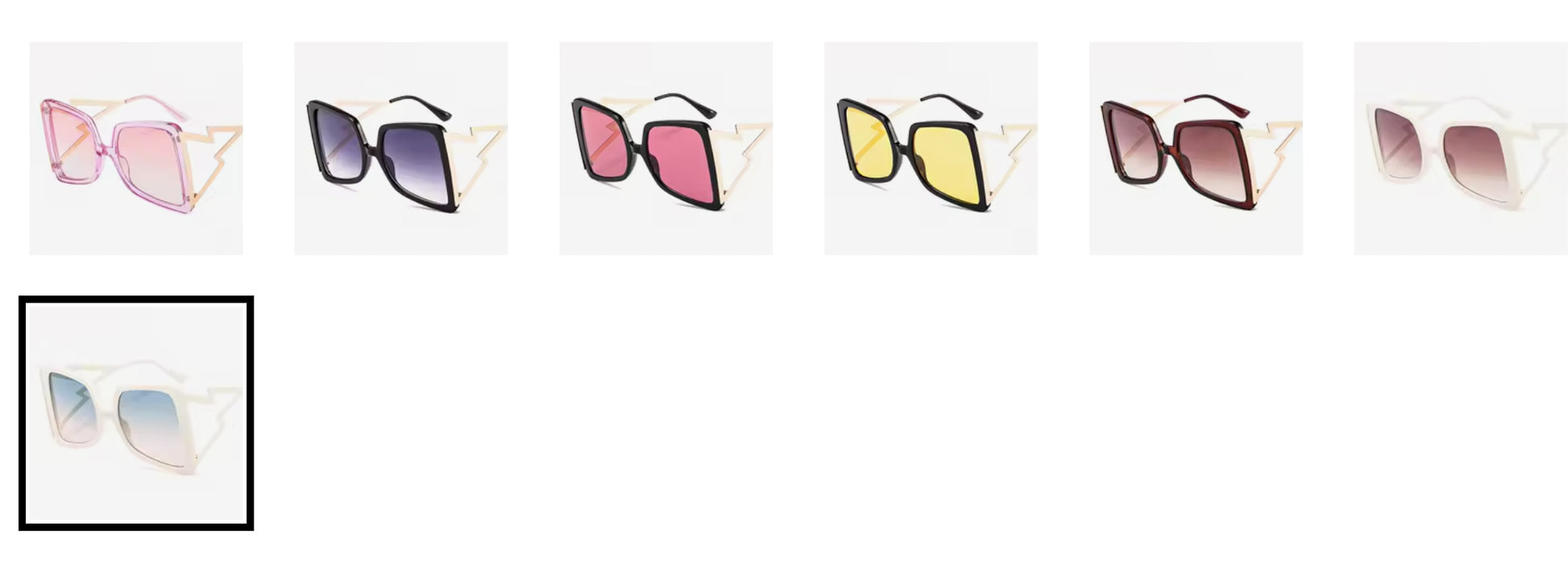 Bowie-worthy lightning bolt arm oversized sunglasses. 7 colors. Modern, 2-3 week deliver.