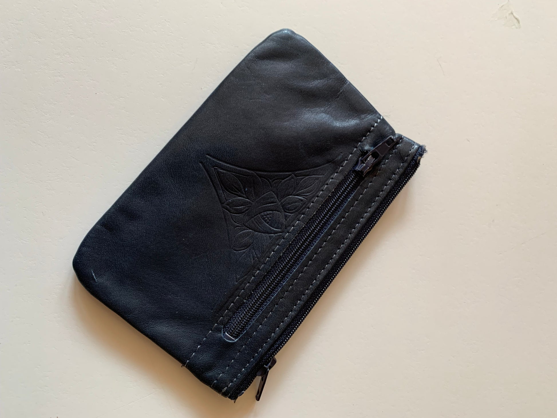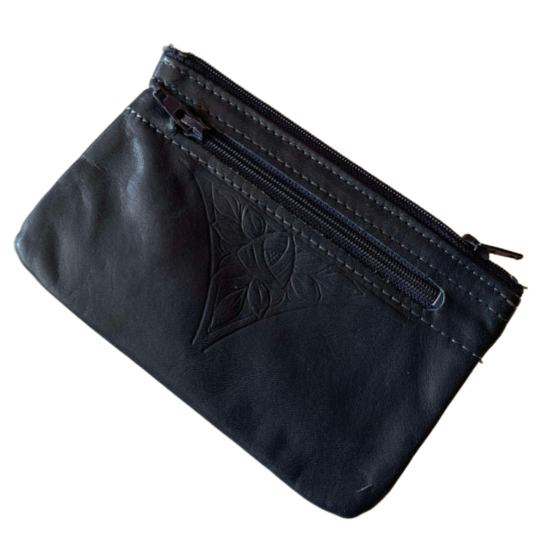 Deep Grey Blue Embossed Leather Coin Purse circa 1980s