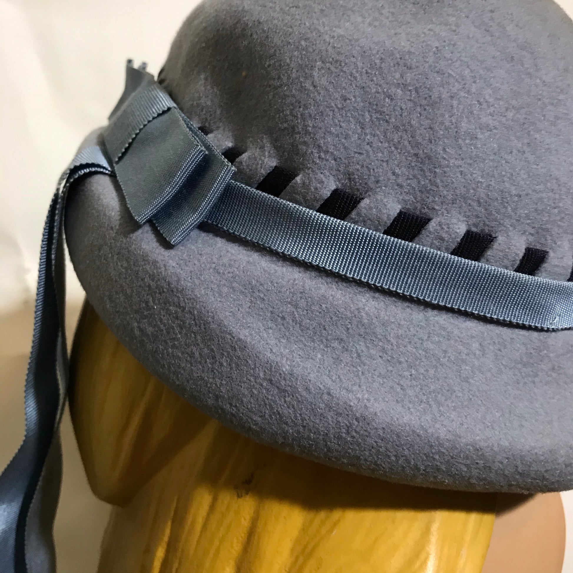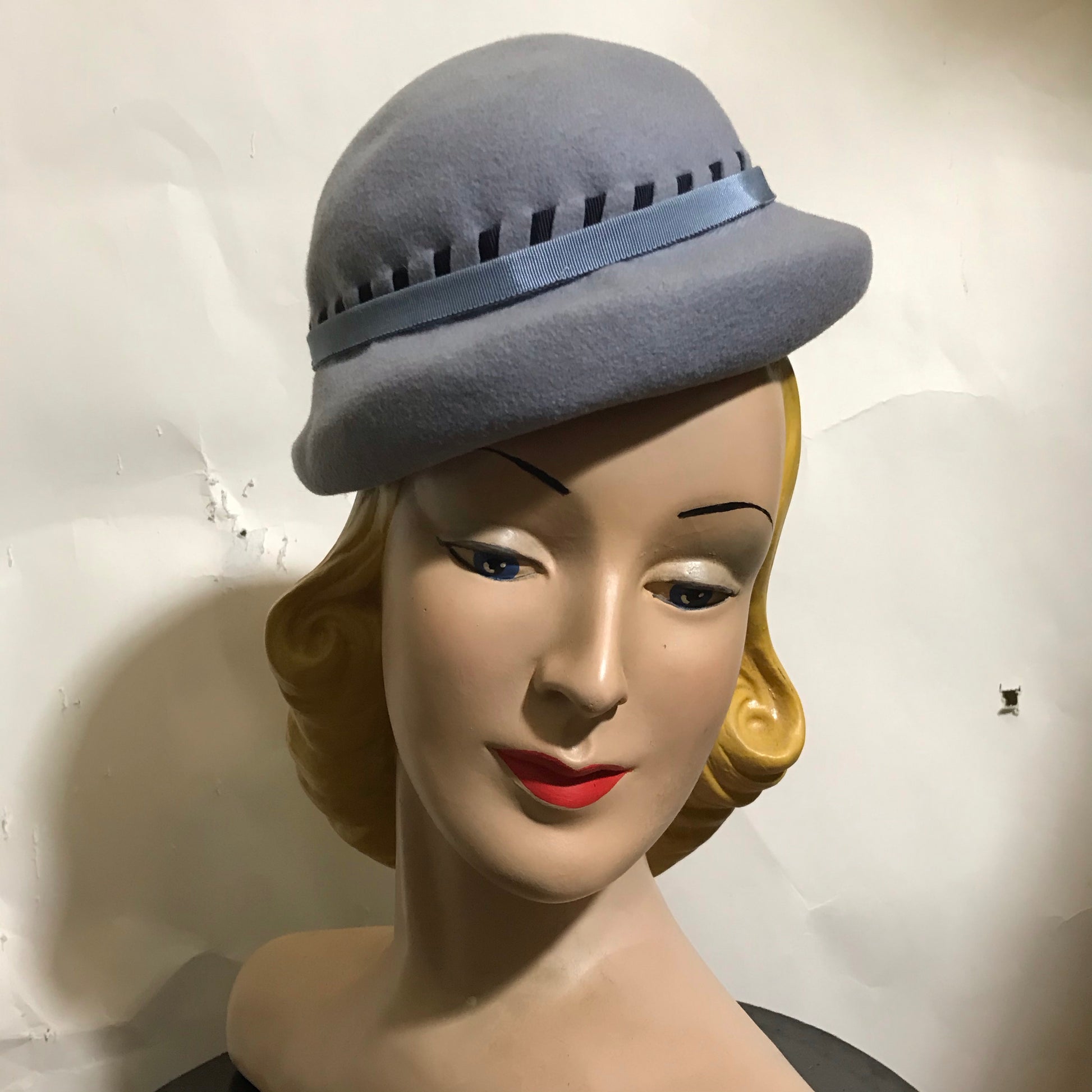 Delft Blue Rounded Crown Tilt Hat w/ Ribbon Trim circa 1940s