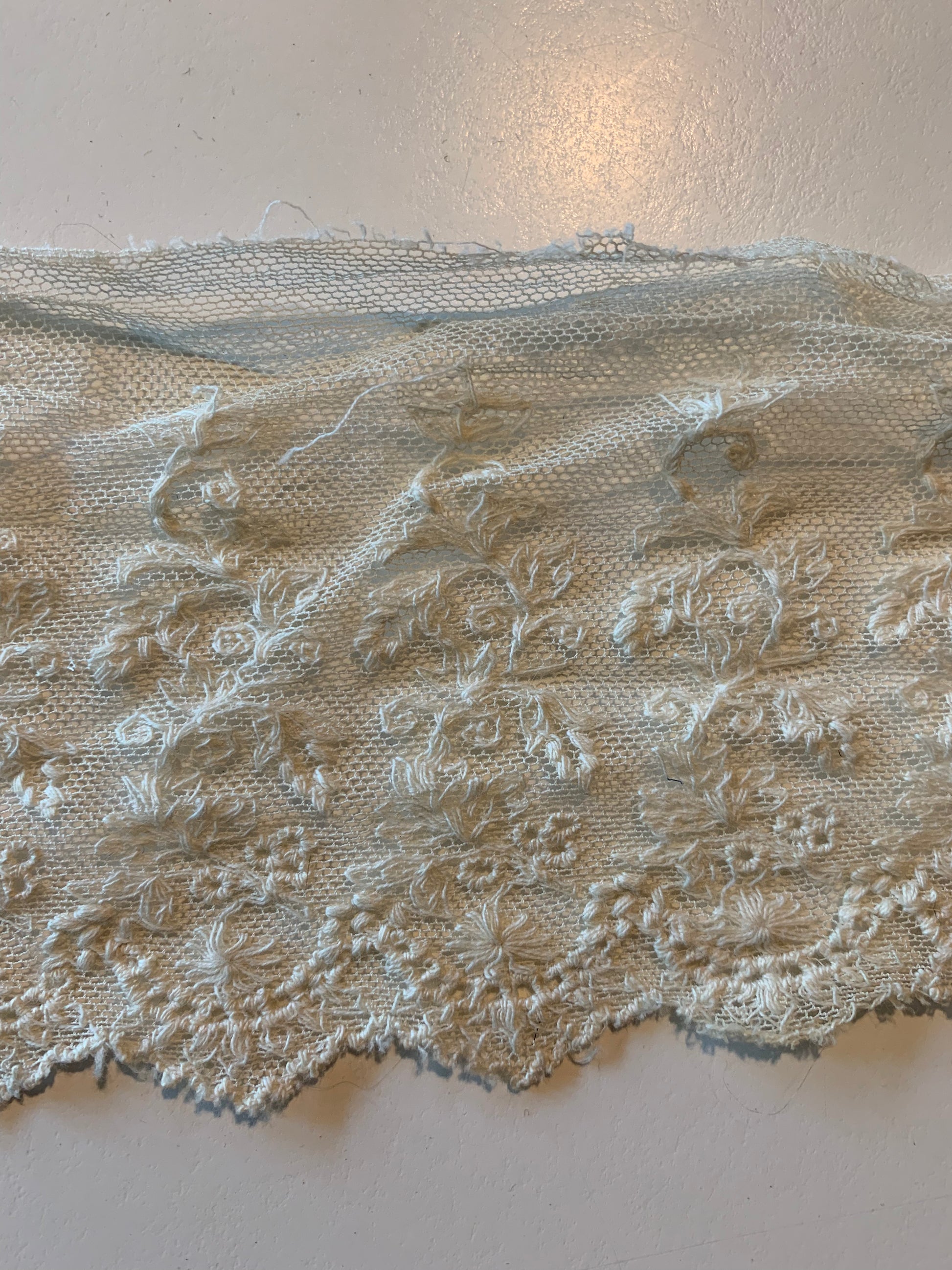 Embroidered Mesh Lace Ribbon Trim circa 1900
