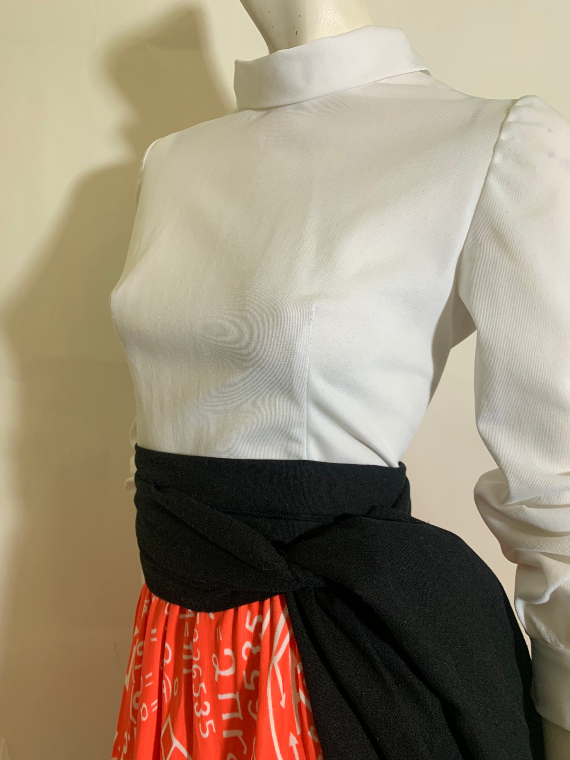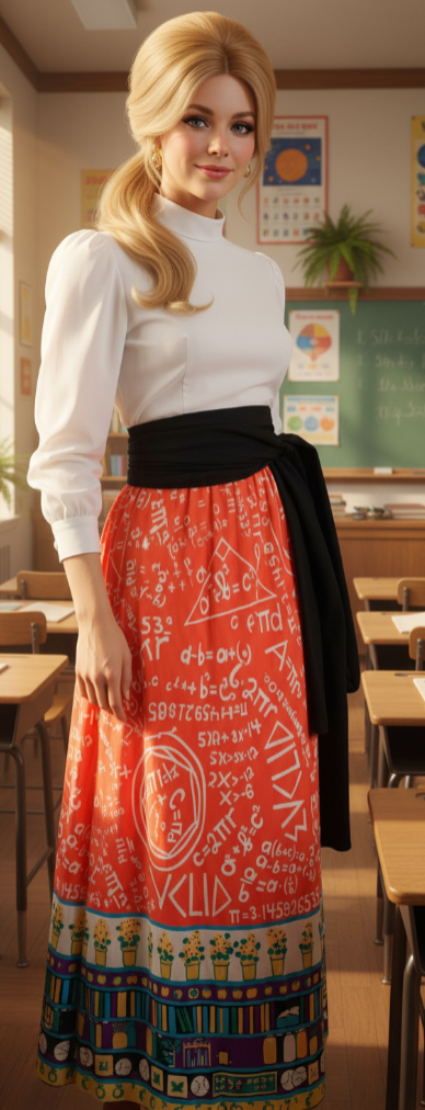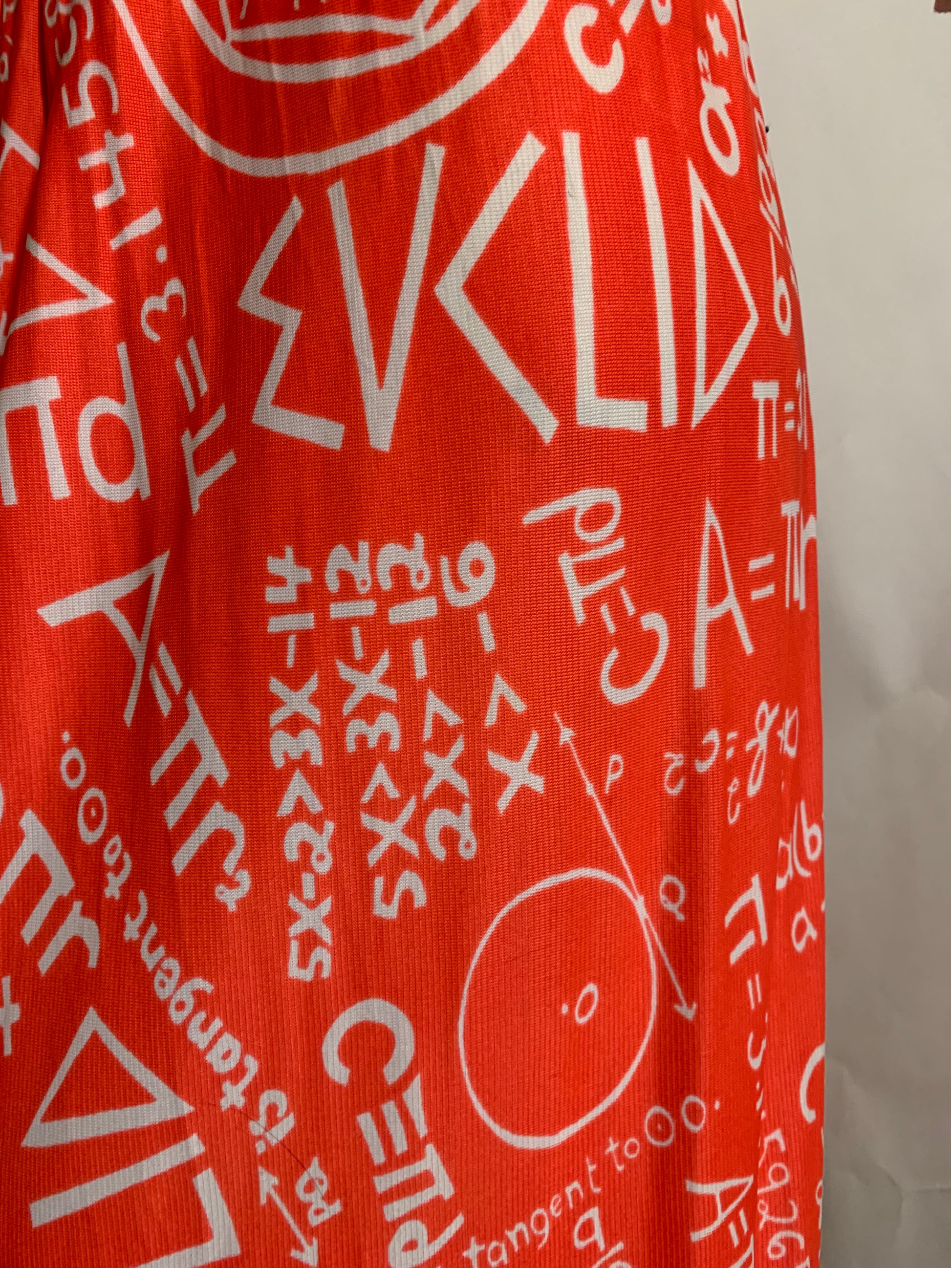 The SKIRT though! Red jersey nylon Euclidean Geometry print with a "teacher" theme border print. I've never seen anything like it! I'm showing it with a black cotton super long sash I got from Amazon- but it is not included. It definitely needs a waist accent.Â