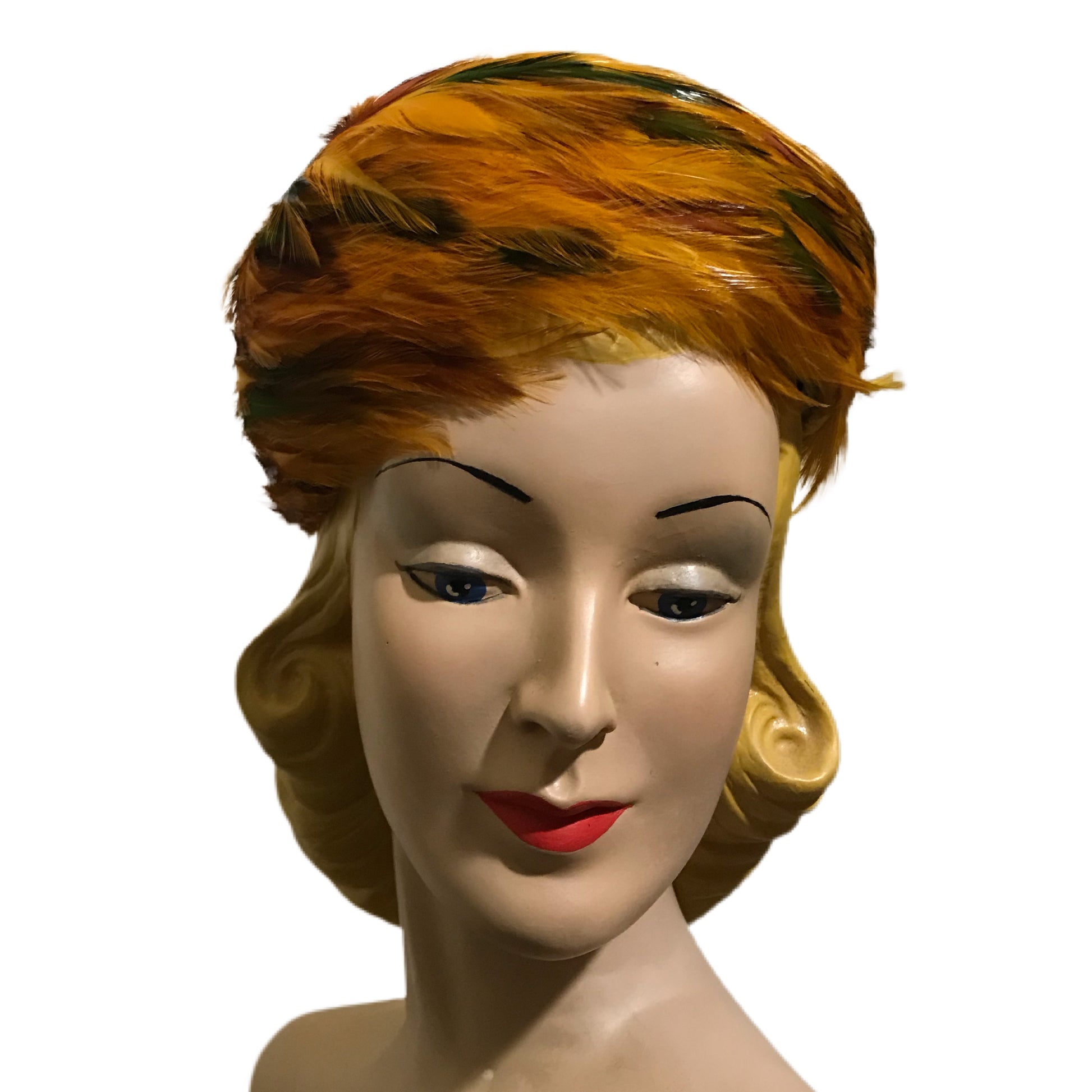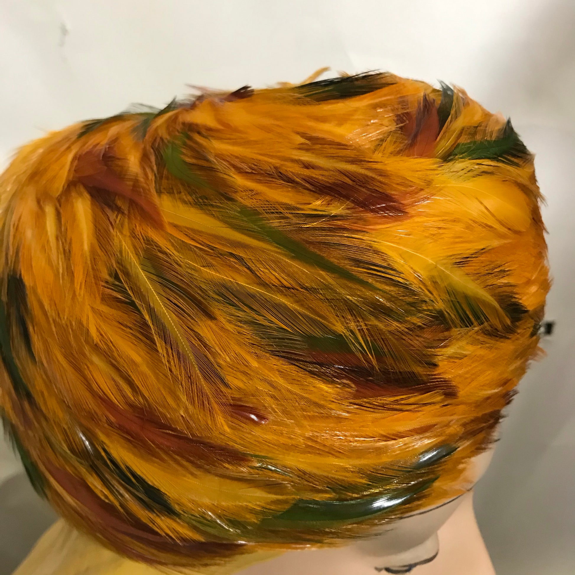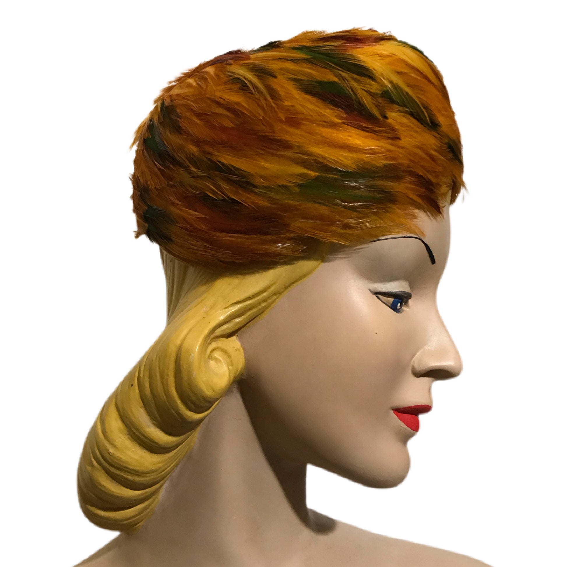 Fiery Orange and Yellow Feathered Hat circa 1960s