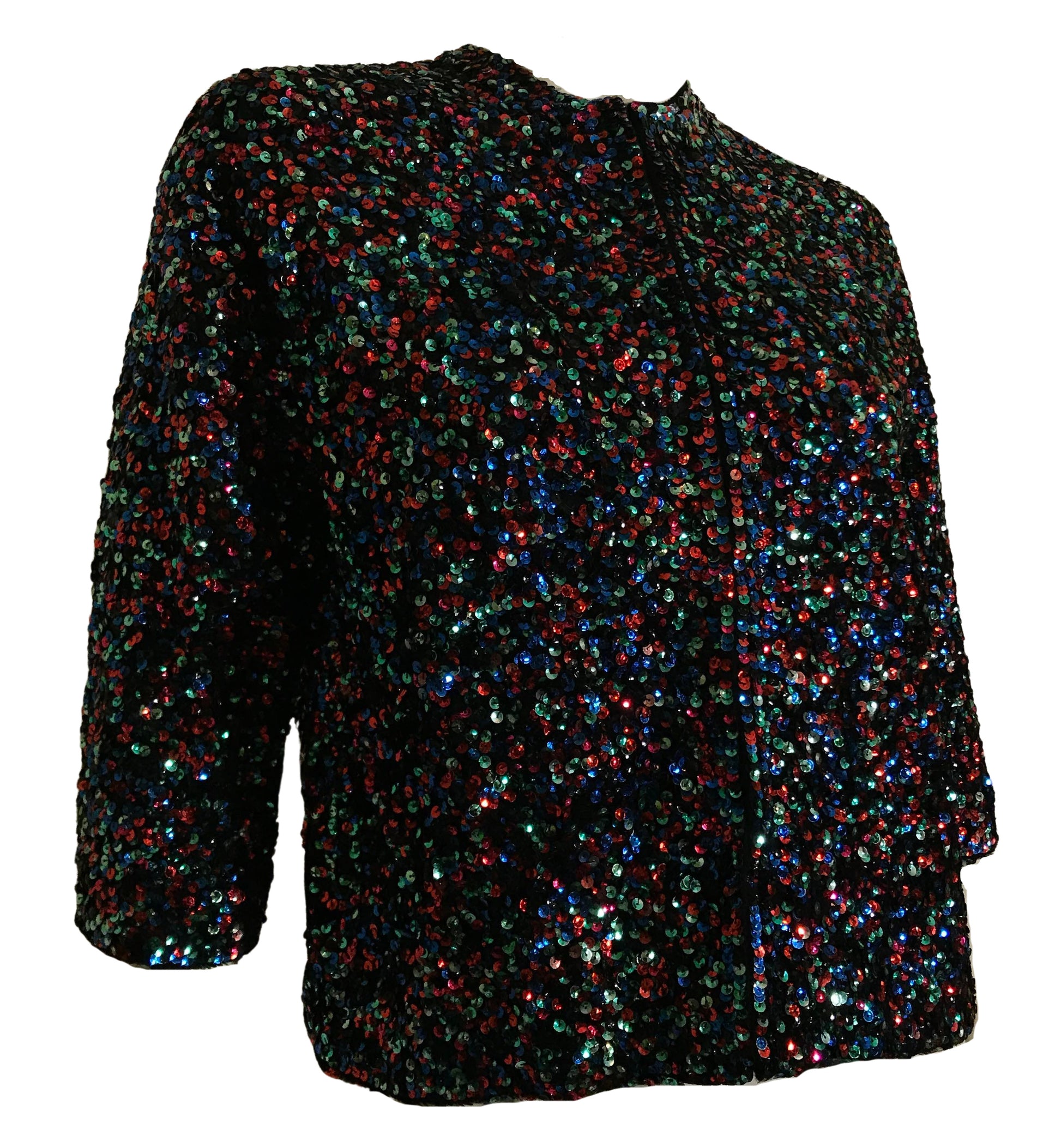 Fireworks! Glittering Red, Blue and Green Sequined Black Sweater circa 1960s