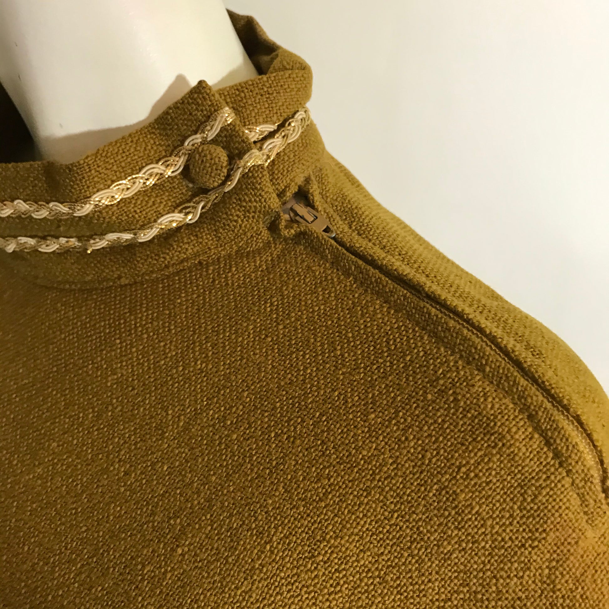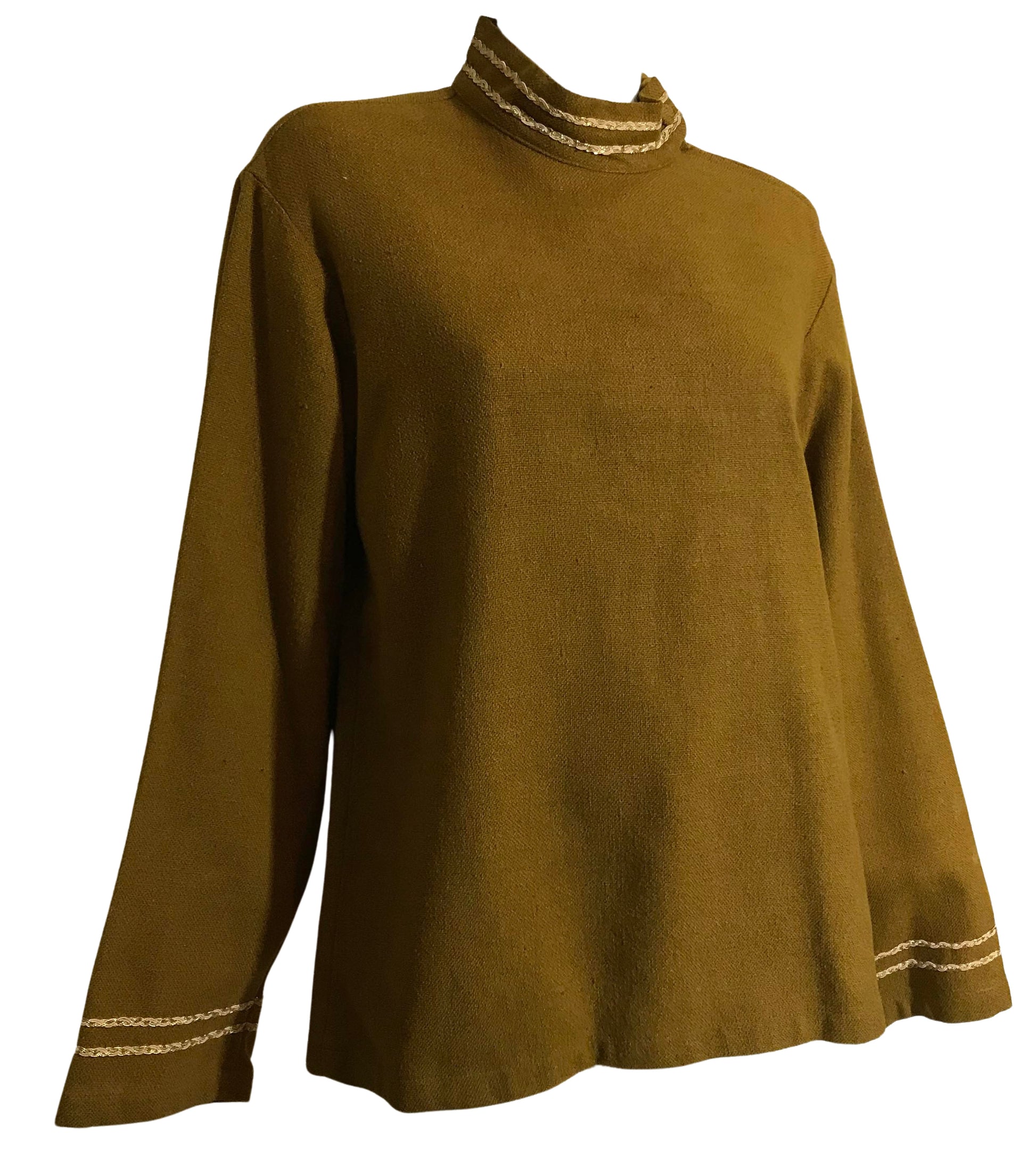 Hippie Chic Cinnamon Hopsack Tunic Metallic Gold Trim Zip Shoulder circa 1970s