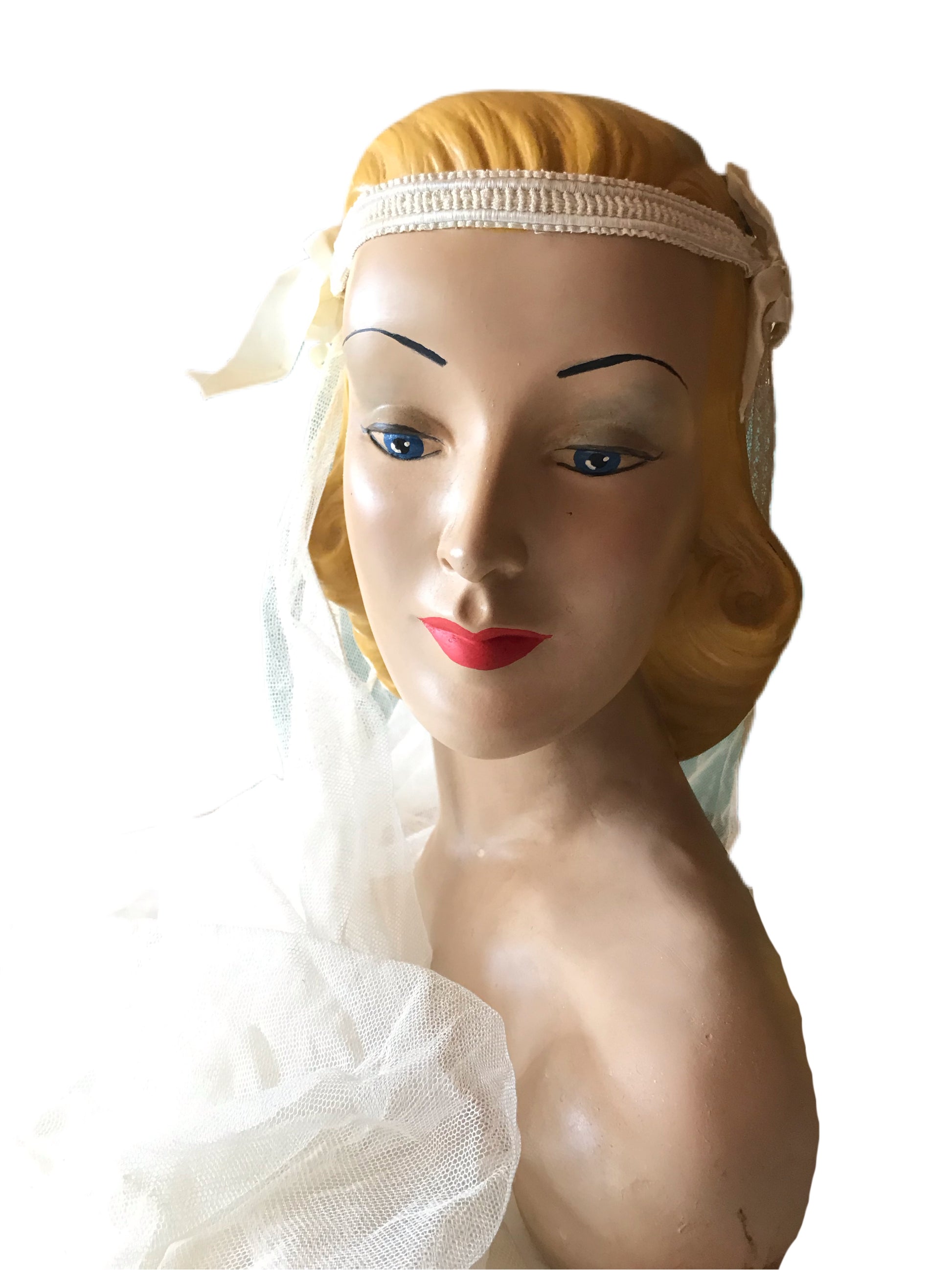 Ivory Lace and Mesh Headband Style Wedding Veil circa 1920s