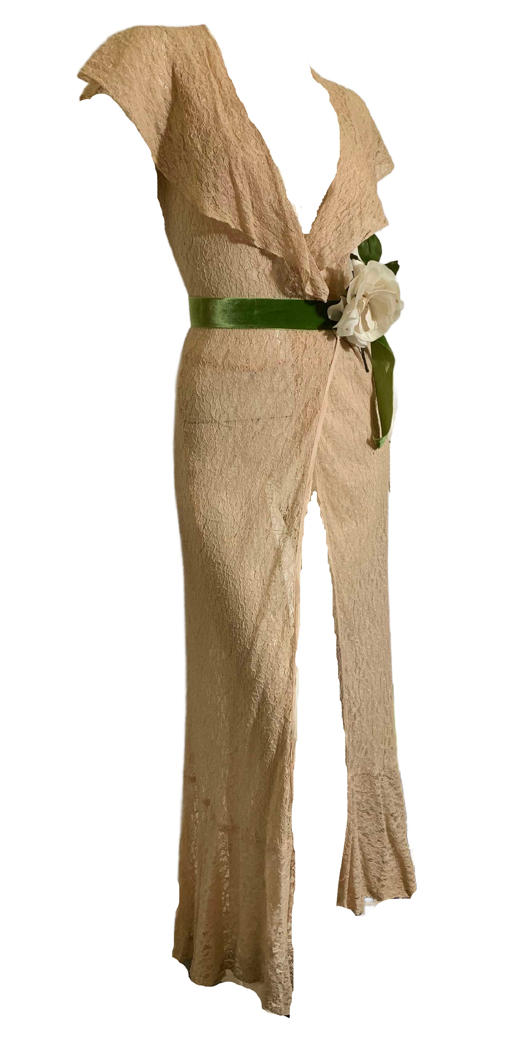 Ivory Lace Caped Collar Peignoir Robe with Sash circa 1930s