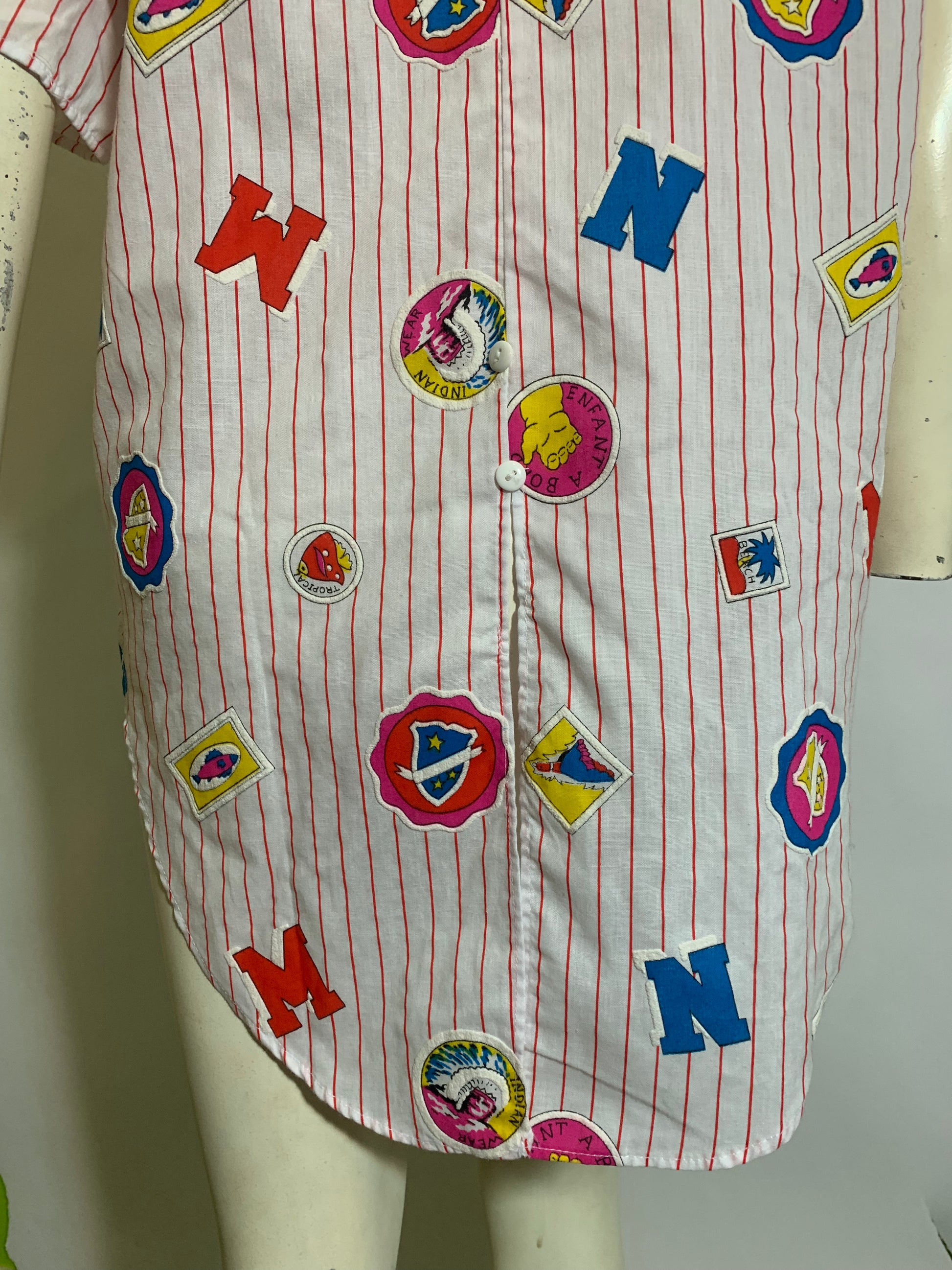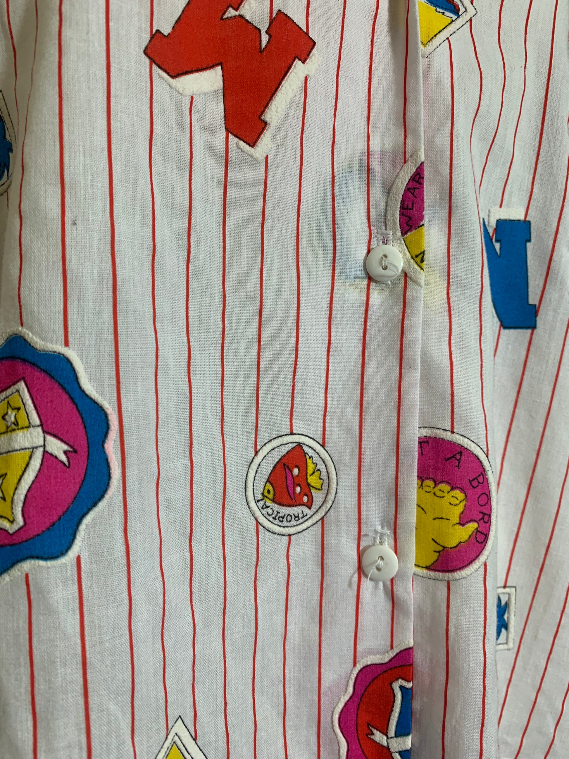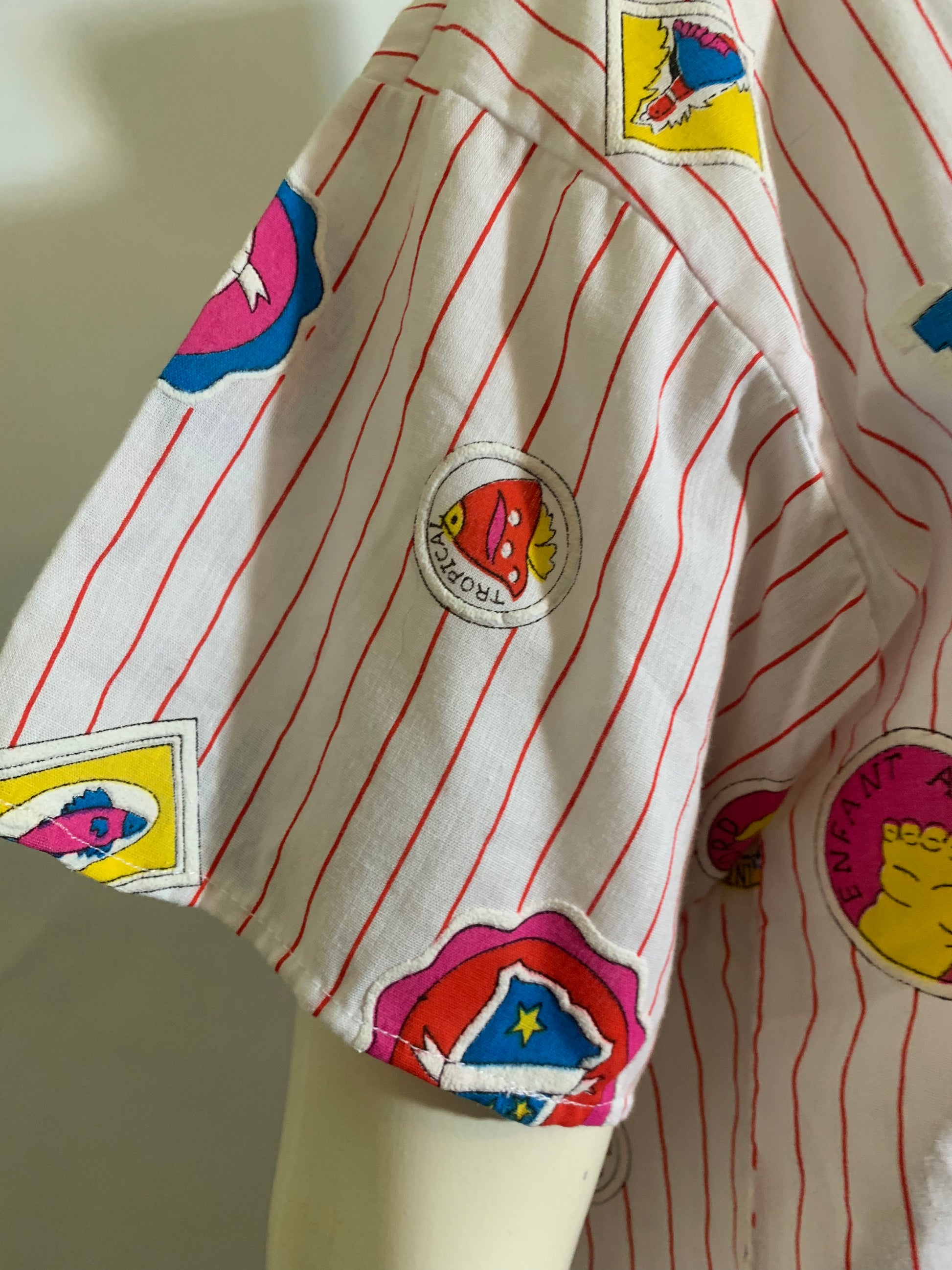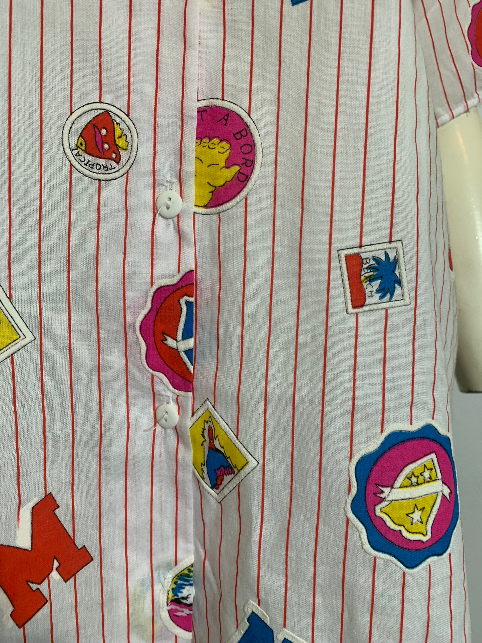 Kitschy Patch Print Striped Cotton Blouse circa 1980s