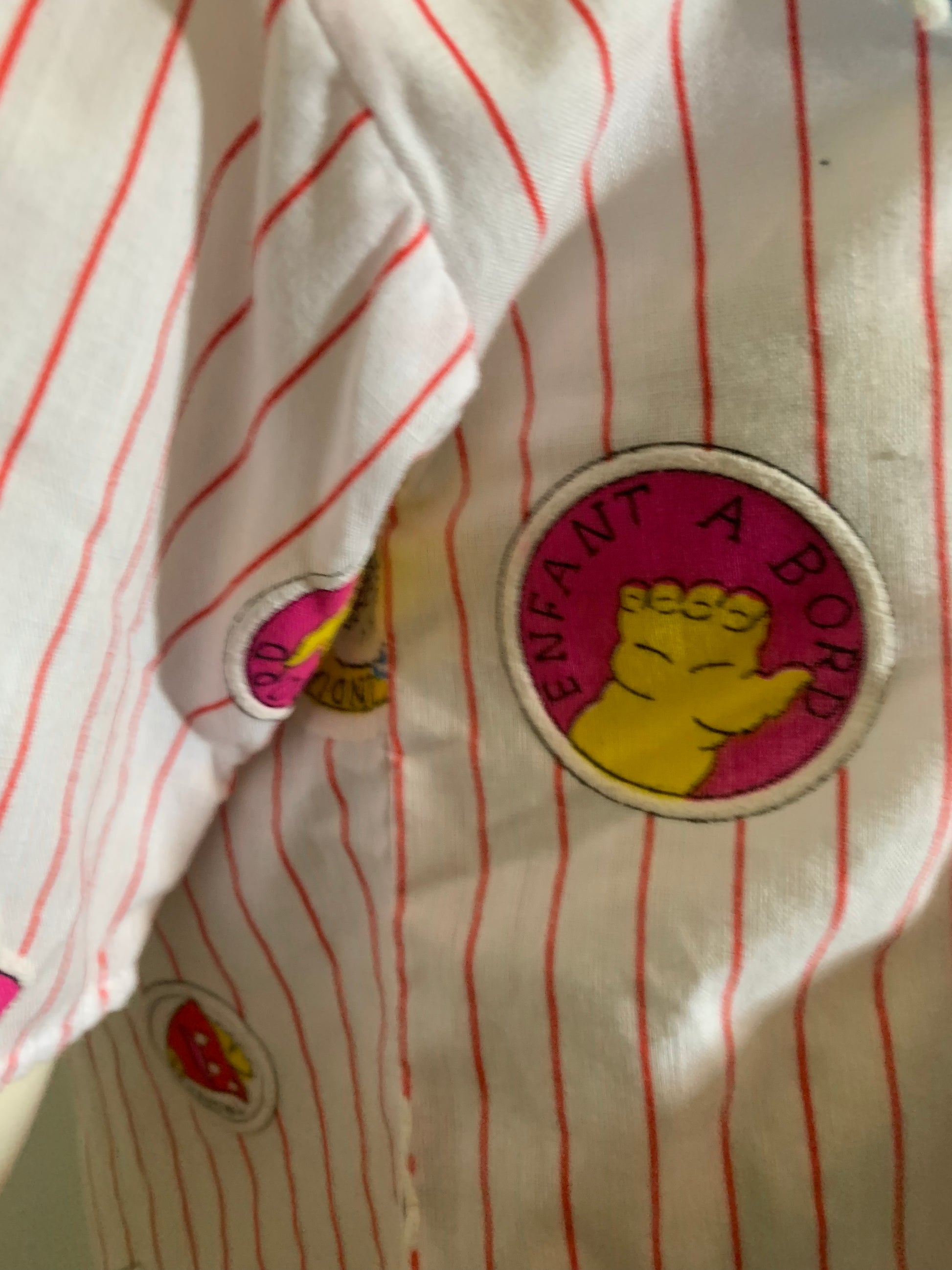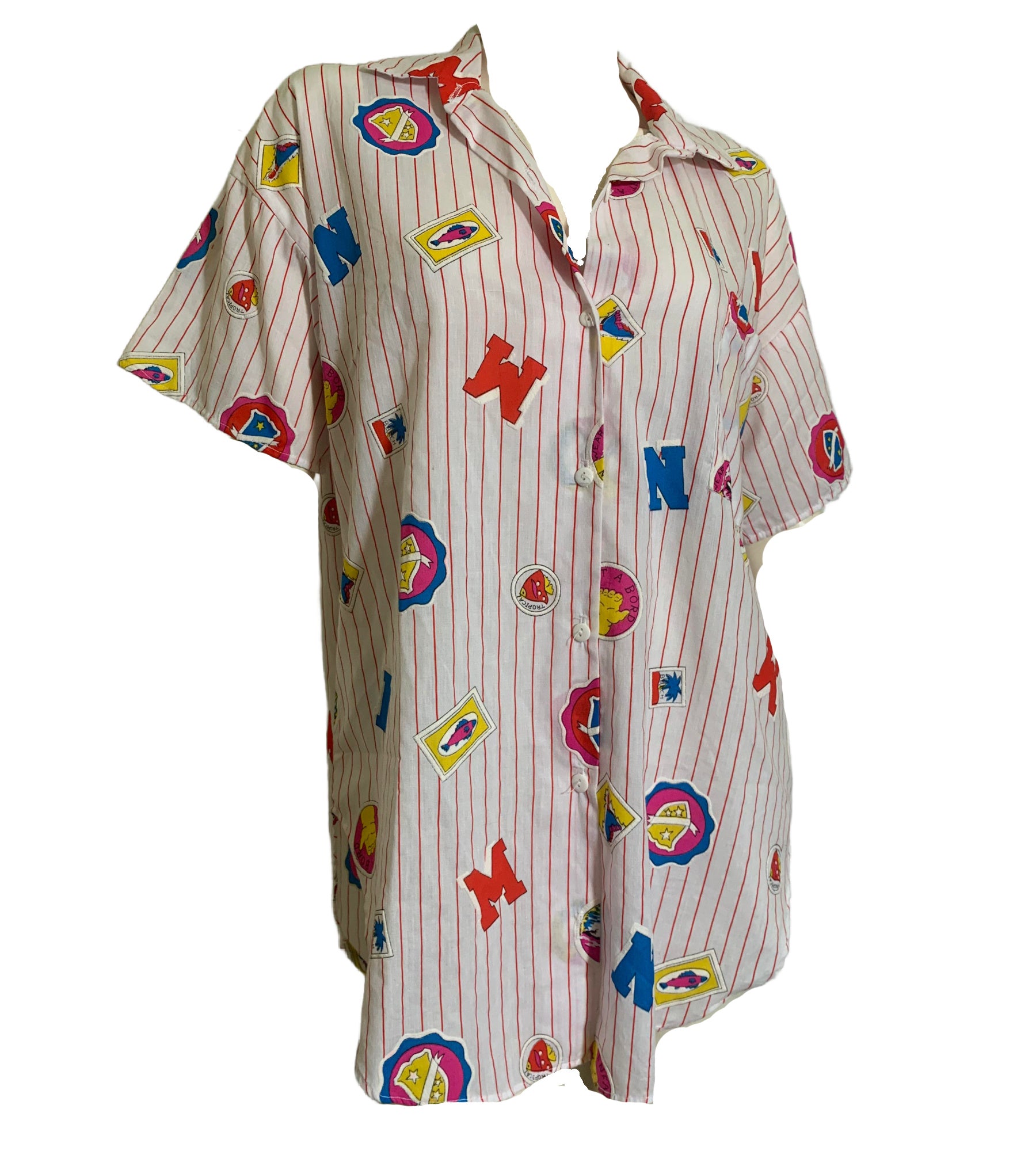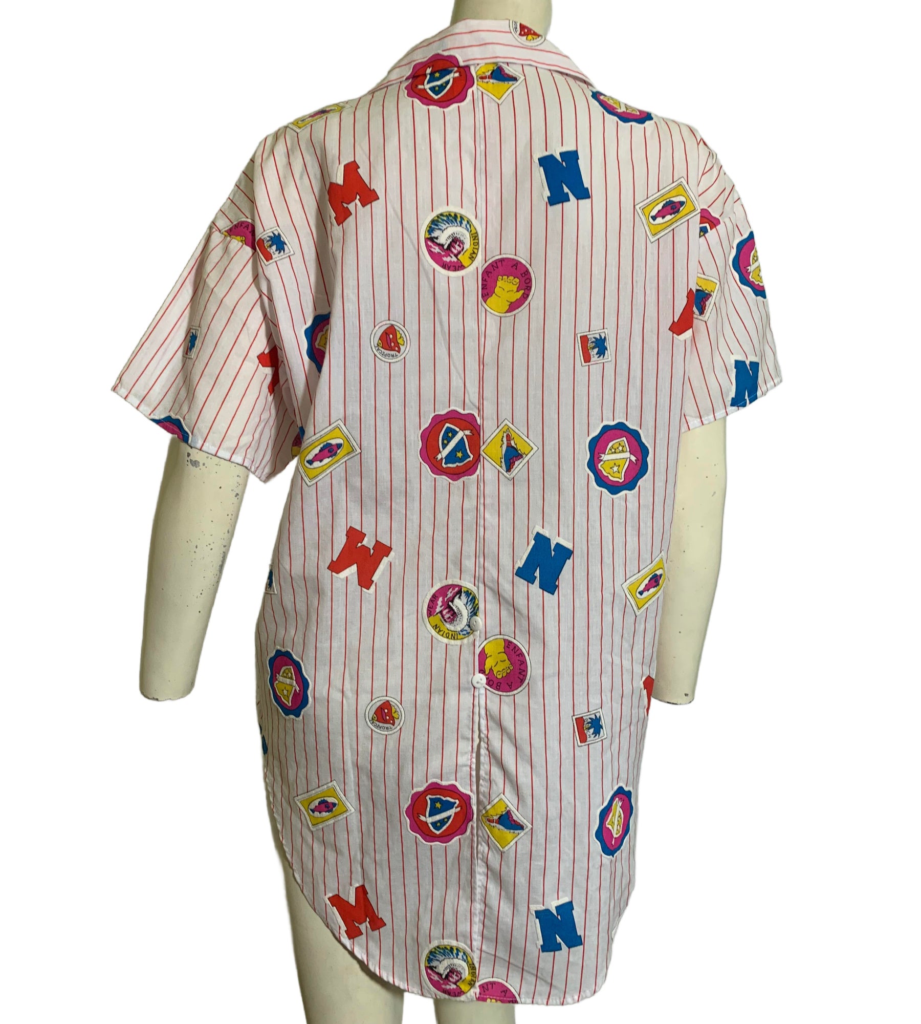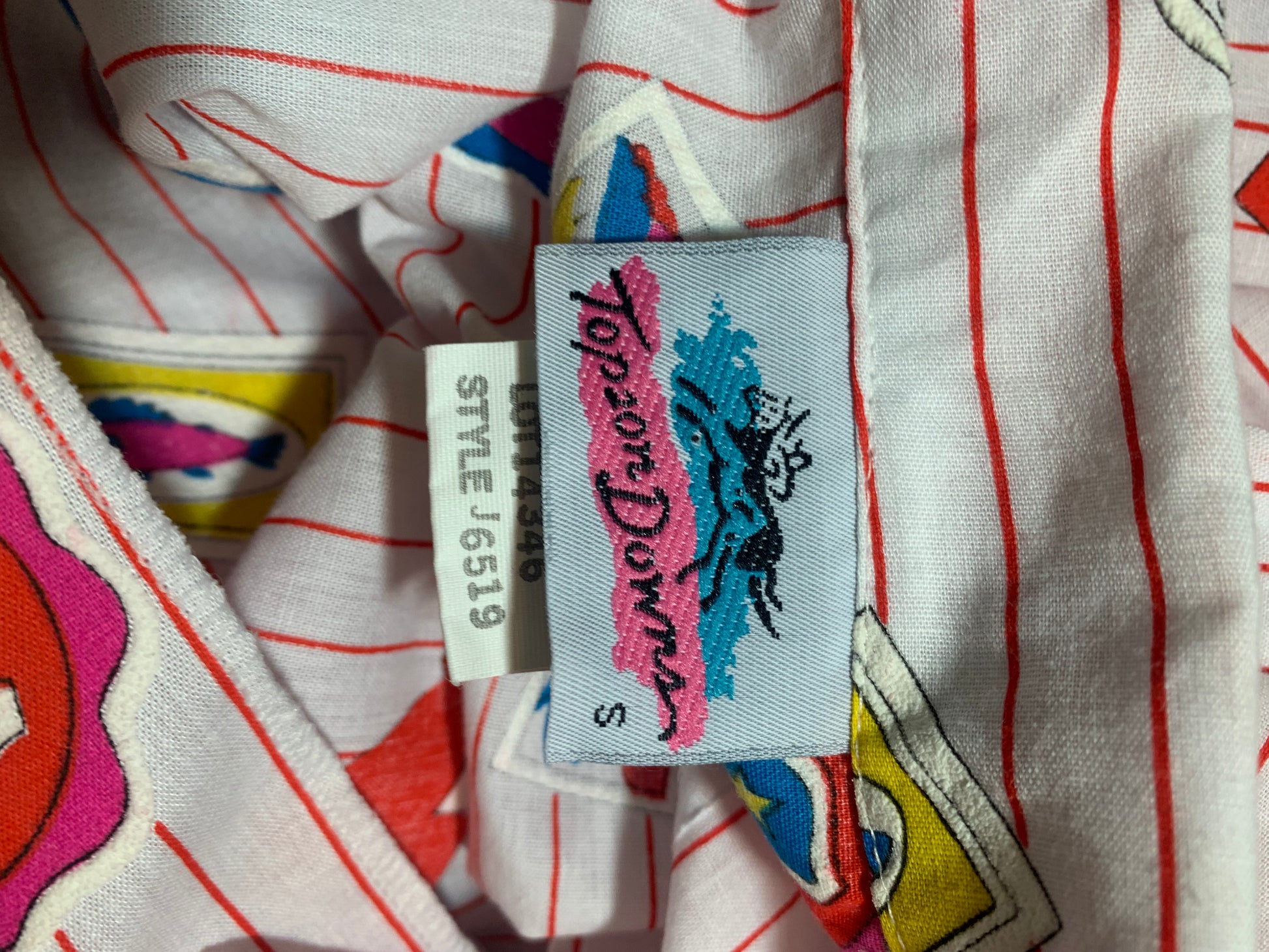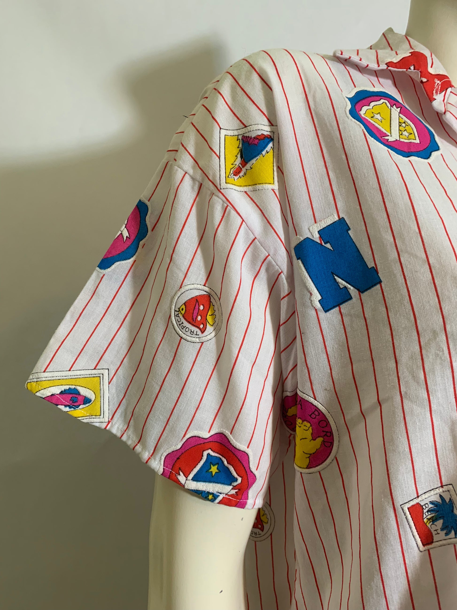Kitschy Patch Print Striped Cotton Blouse circa 1980s