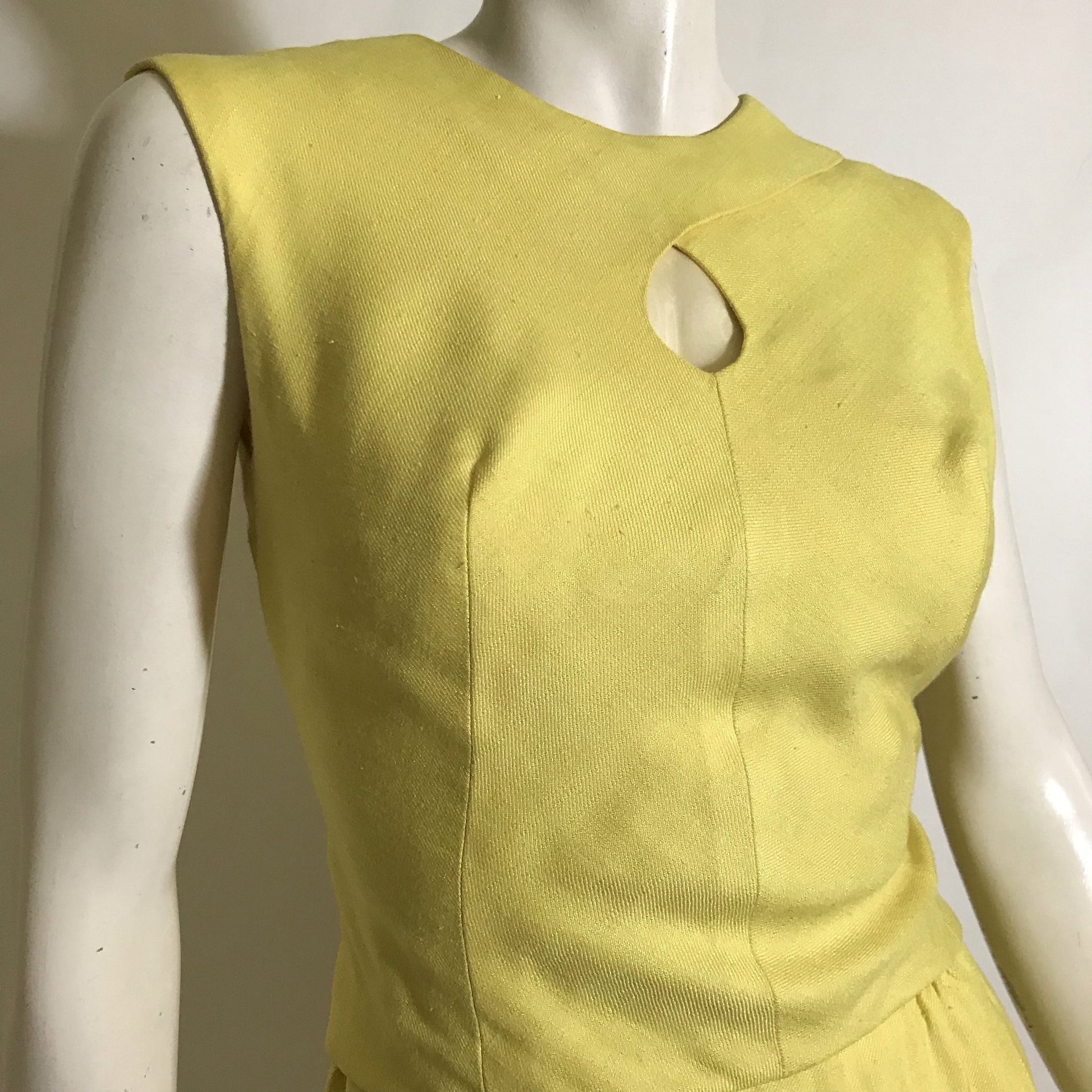 Lemony Yellow Sleeveless Dress with Keyhole Neckline and Scarf circa 1960s