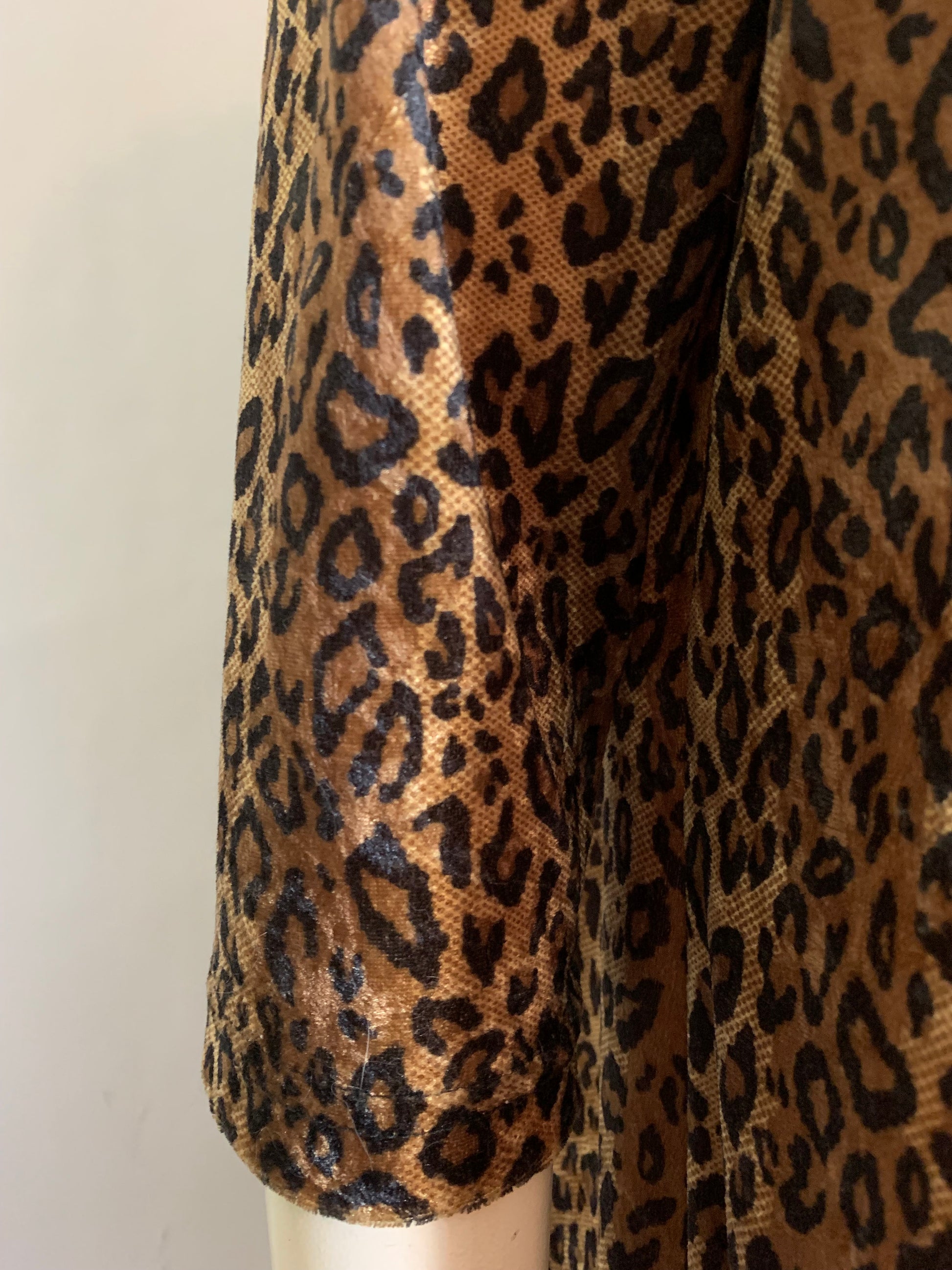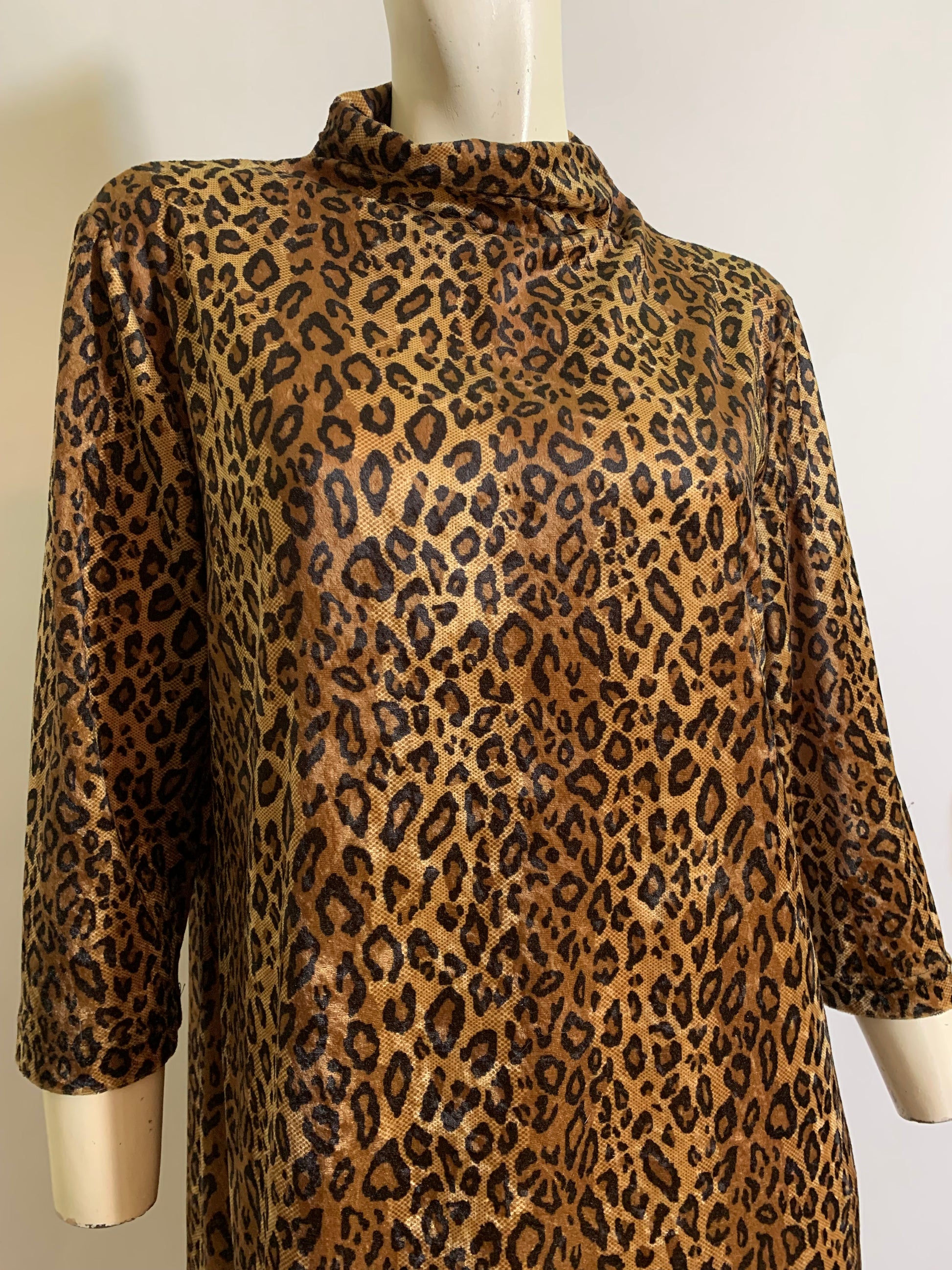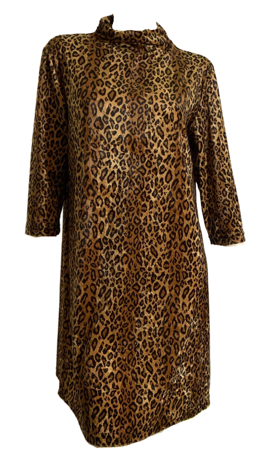 Chic little shift dress of poly velvet in a classic leopard print by Oraré. No flaws.
