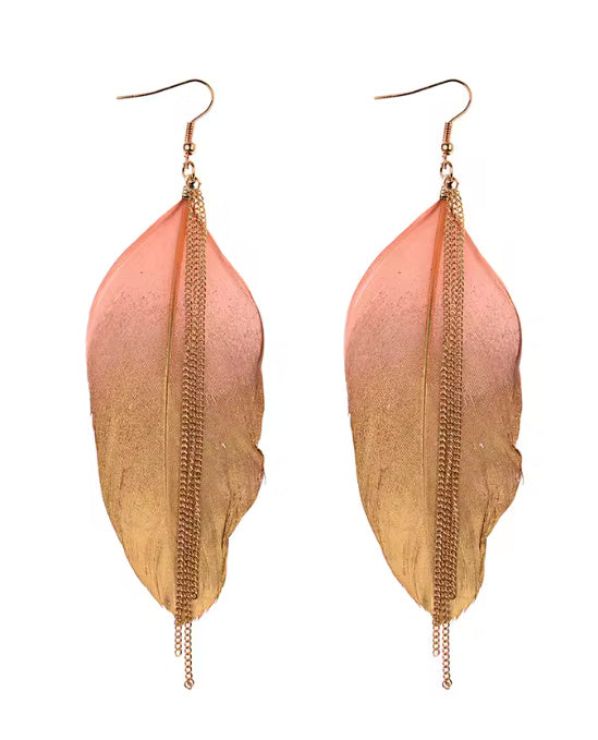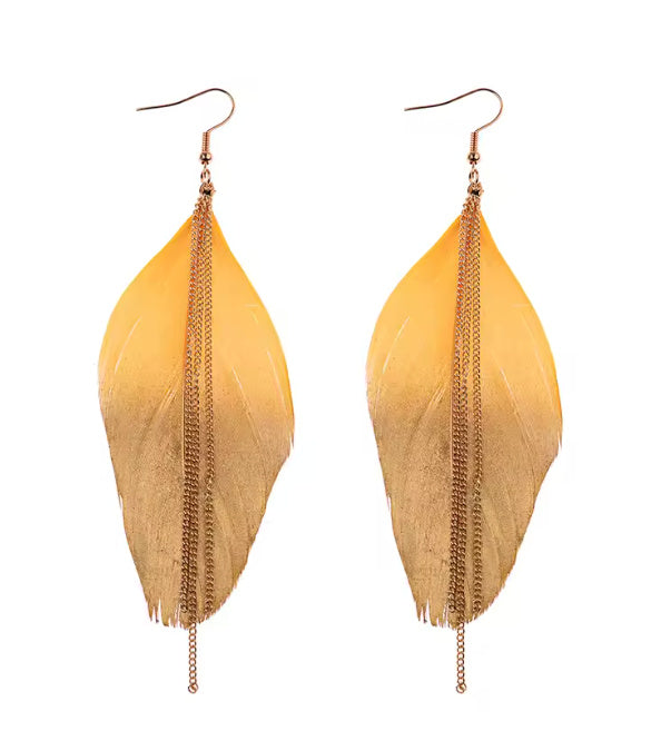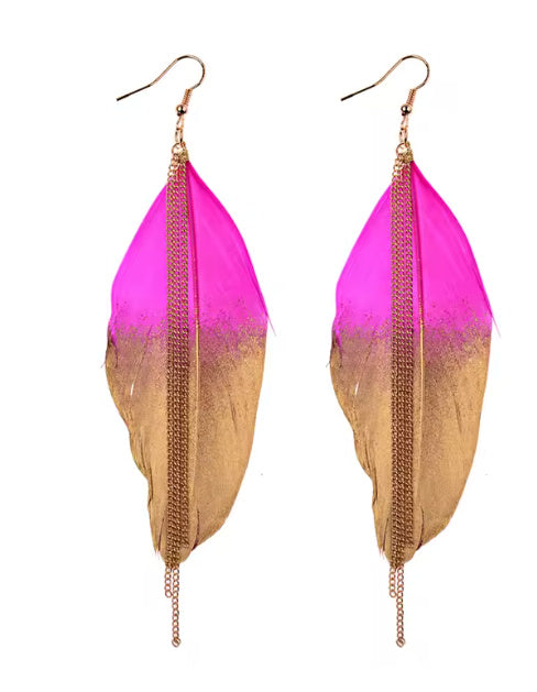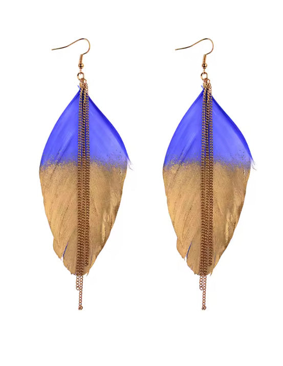 Maryjane- the Two Tone Feather and Chain Earrings 5 Color Ways