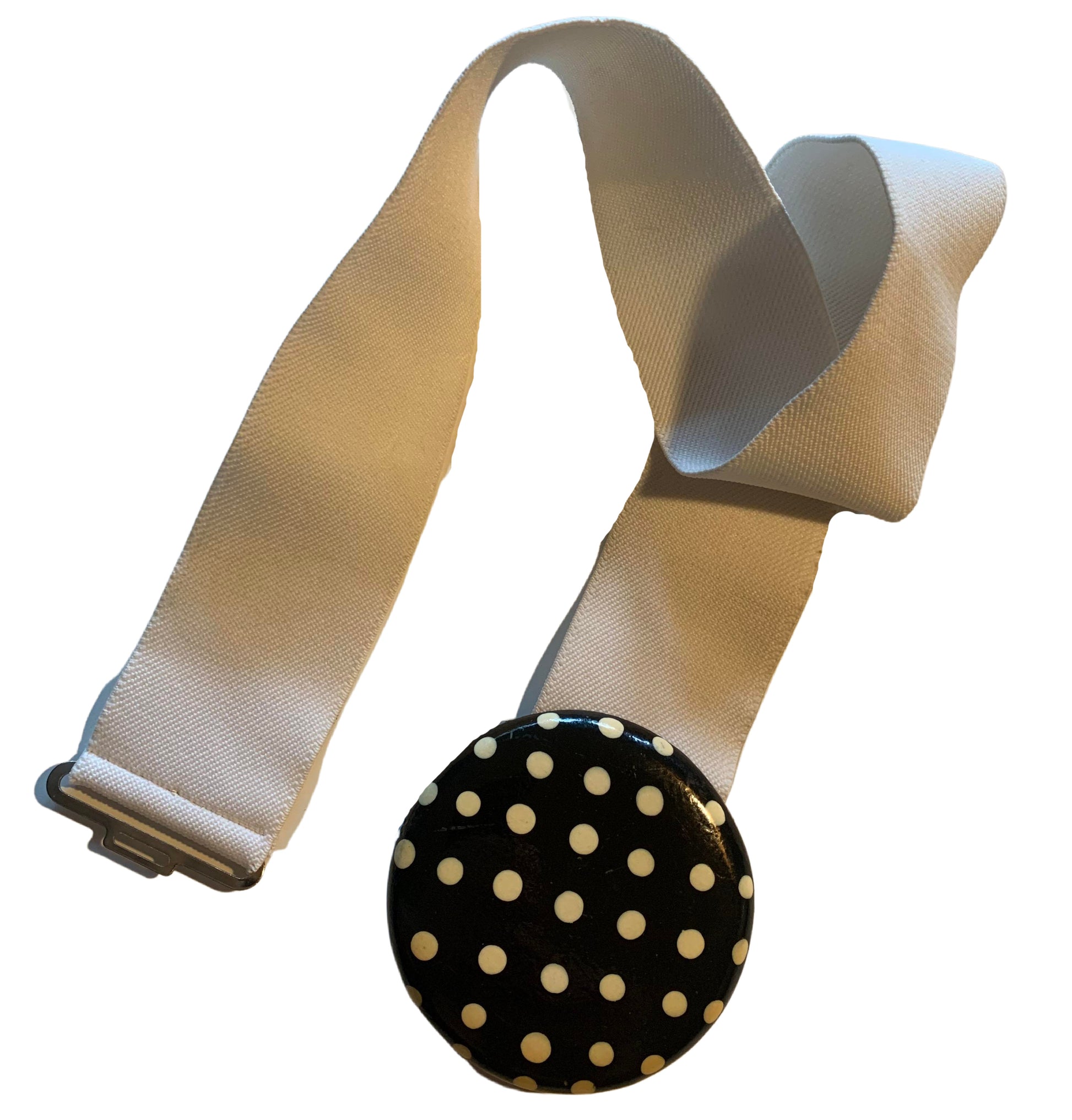 New Wave White Elastic Belt with Polka Dot Clasp circa 1980s