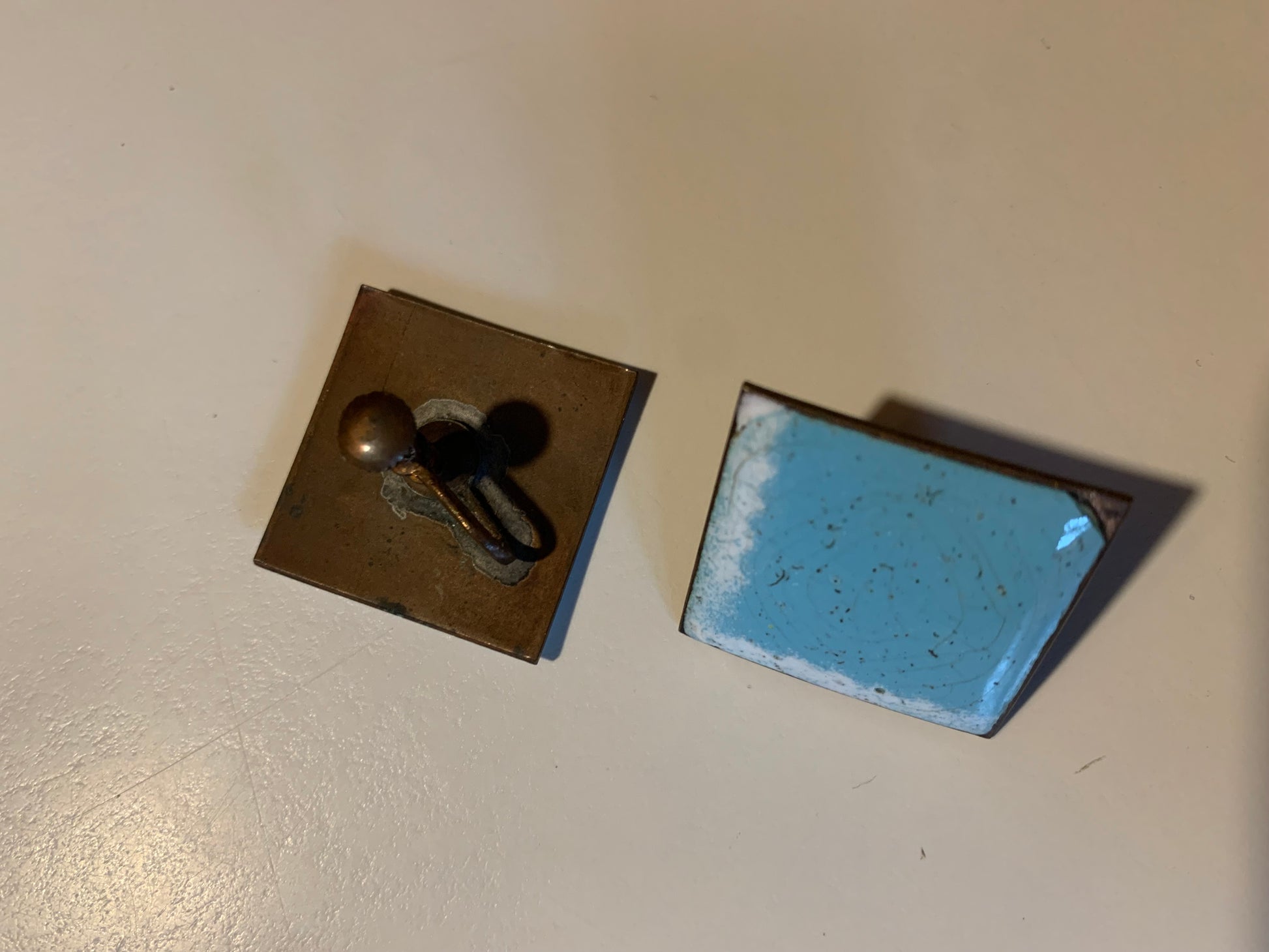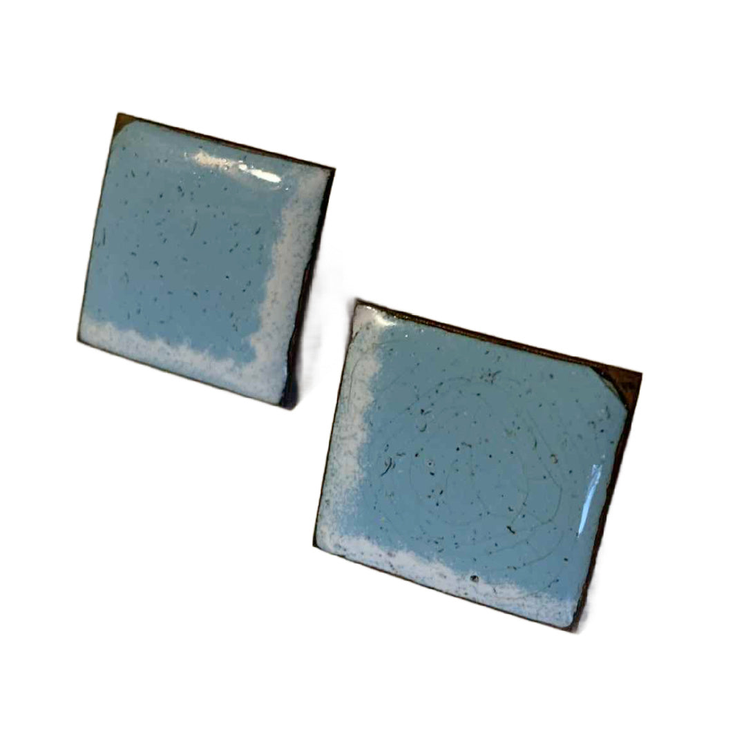 Pretty ombré sky blue square enameled copper screw back clip earrings from the 1940s. 1", no markings, no flaws.