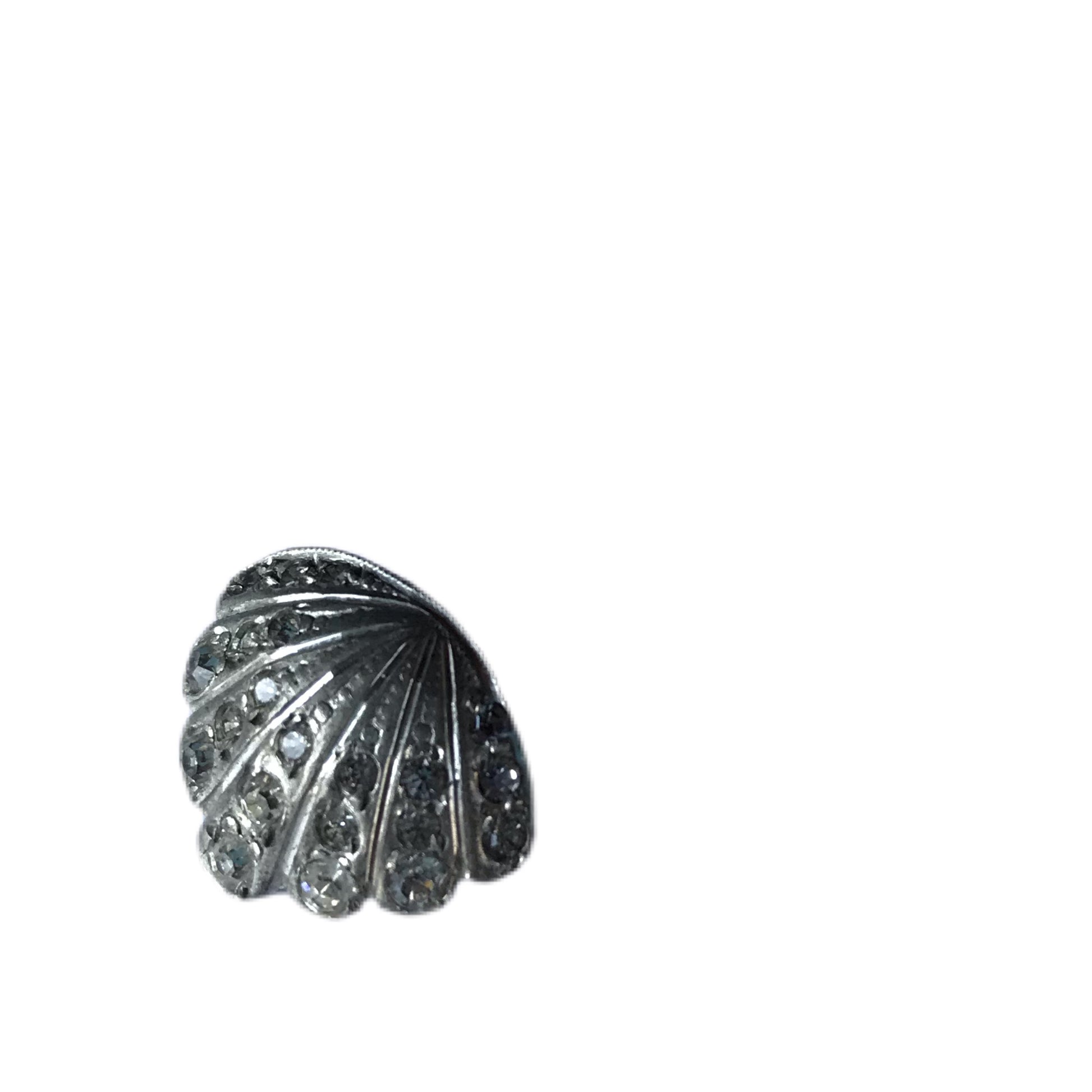 1930s clamshell shaped rhinestone silver tone metal clasp buckle.- just one piece. 1" by 3/4".