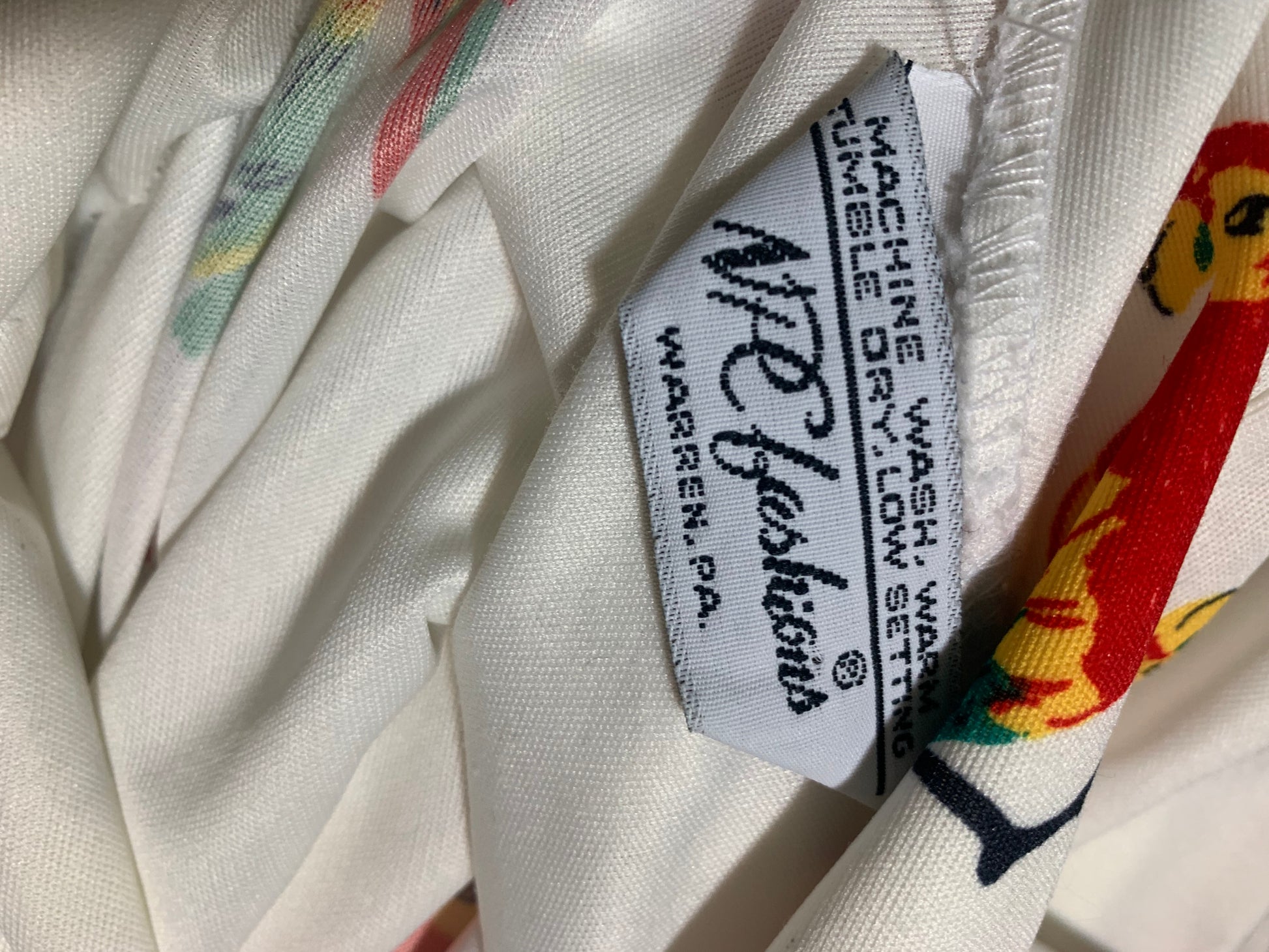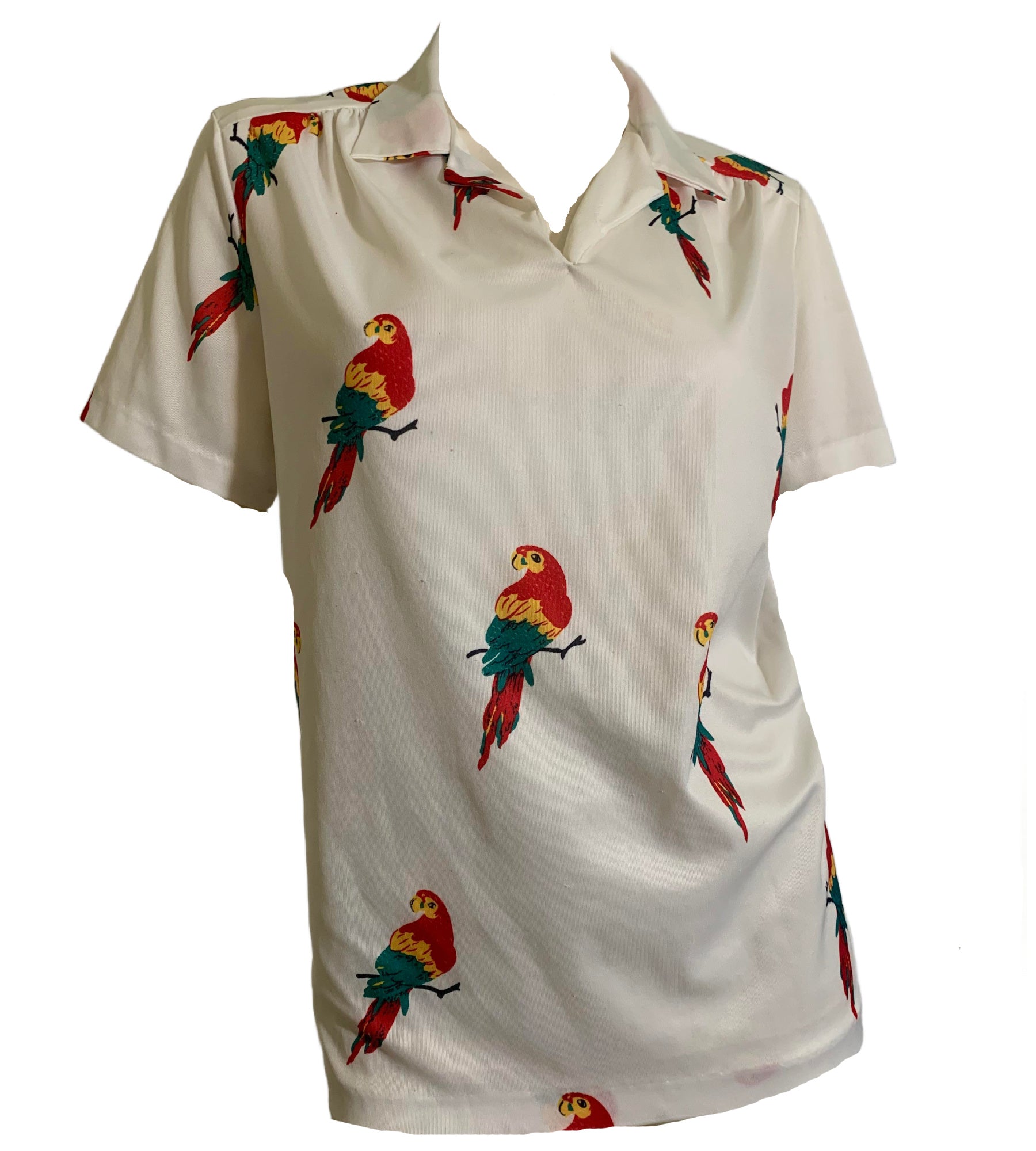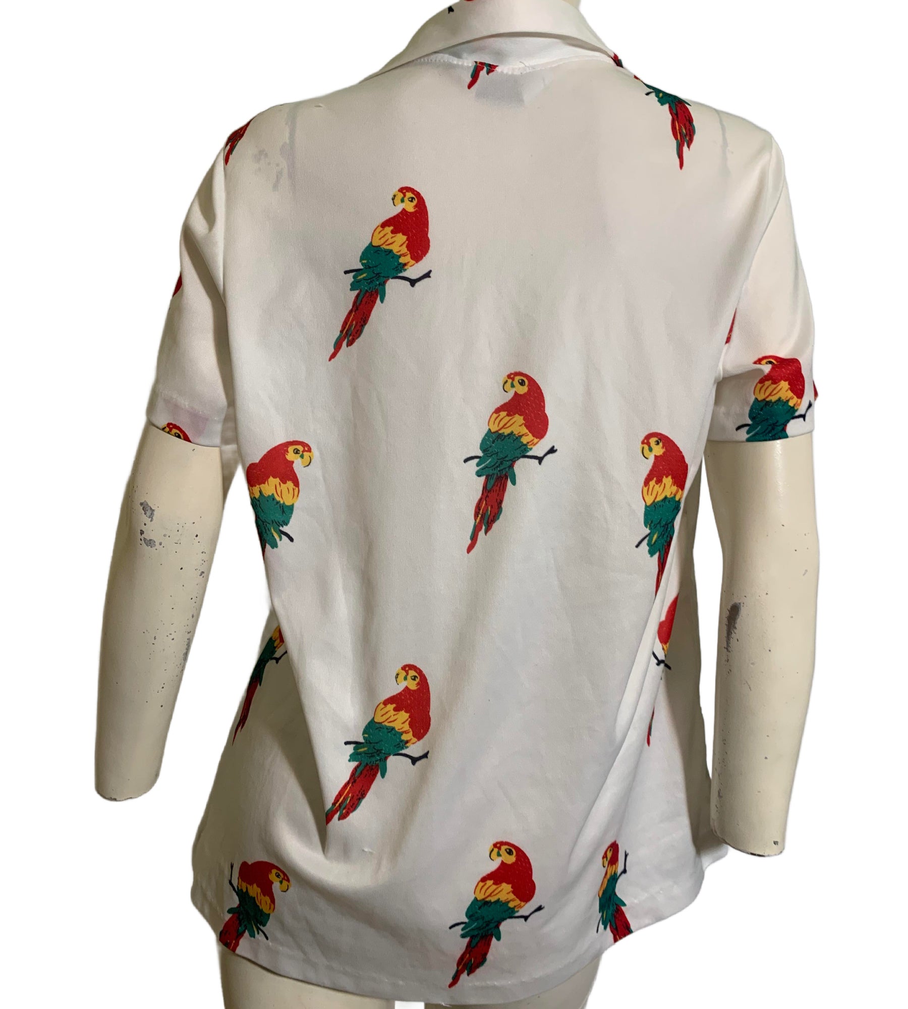 Parrot Print White Jersey Knit Pull Over Blouse circa 1980s